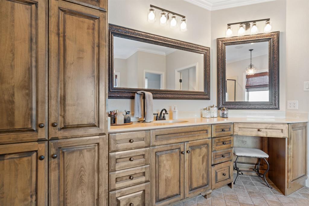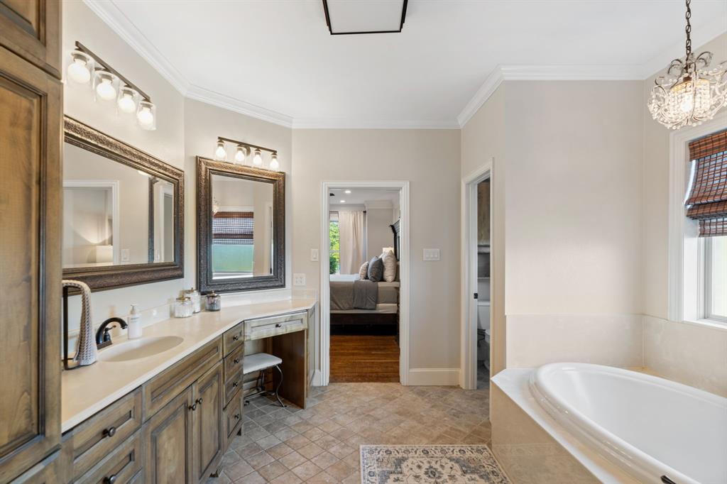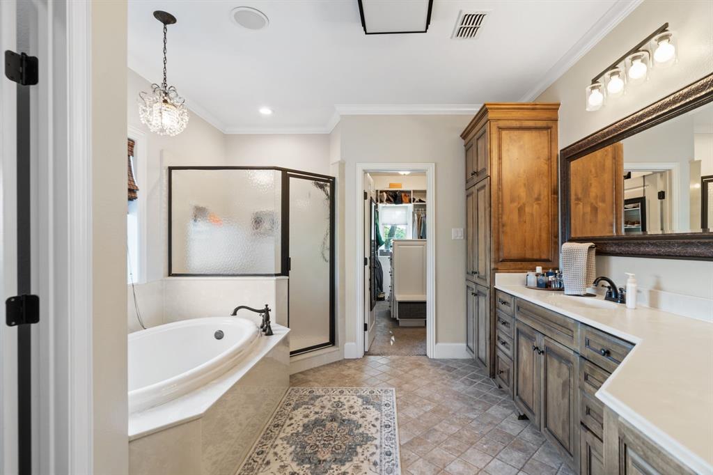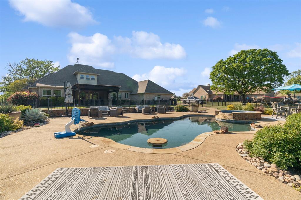 Enjoy the backyard oasis with a pool, hot tub, pergola, fire pit, and full-perimeter invisible fencing. Additional features include a 22-zone sprinkler system, Ring doorbell, security cameras, and a secured third garage bay ideal for storage or a workshop.