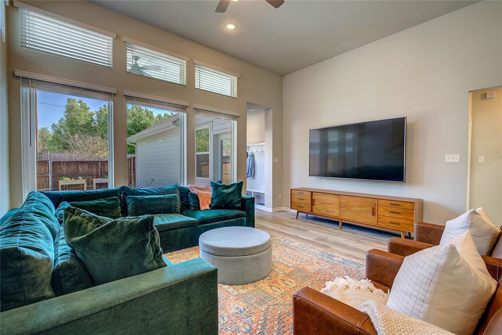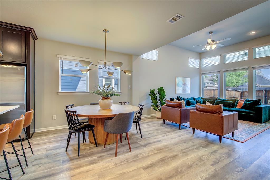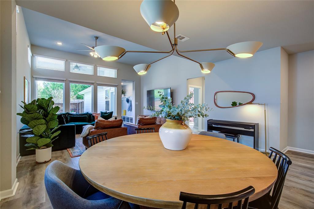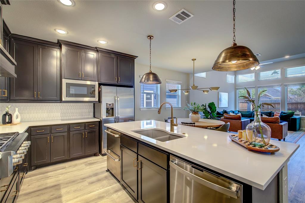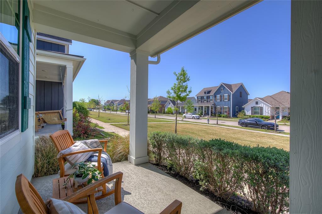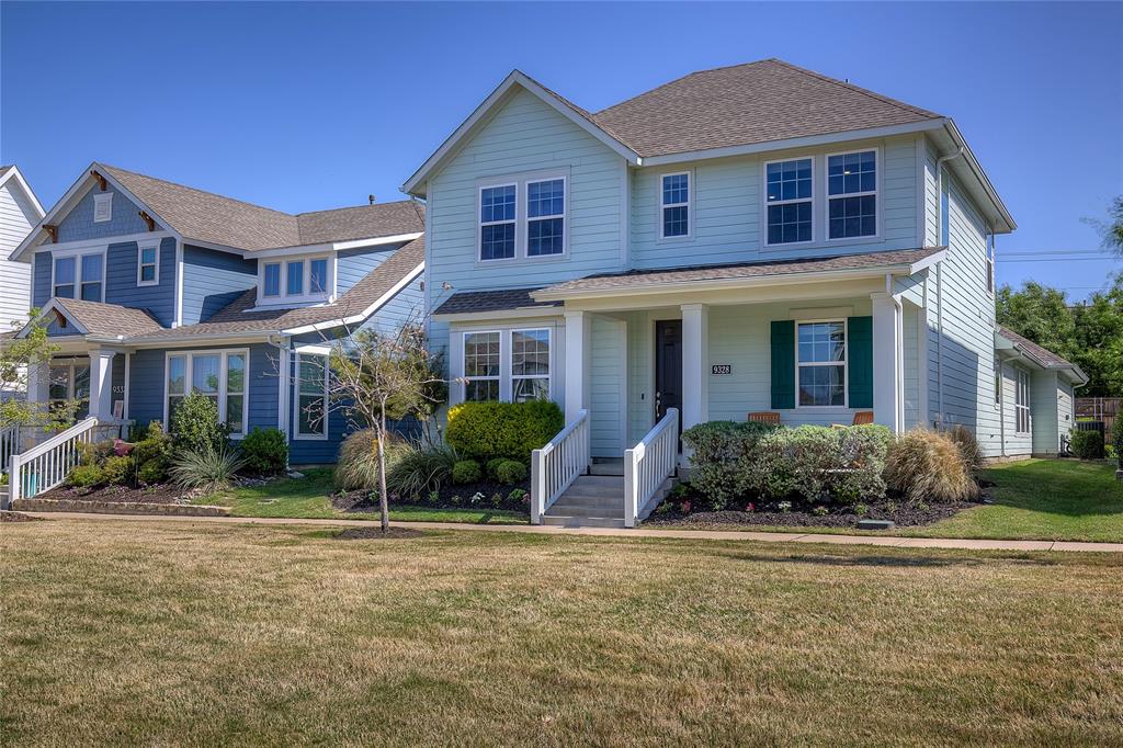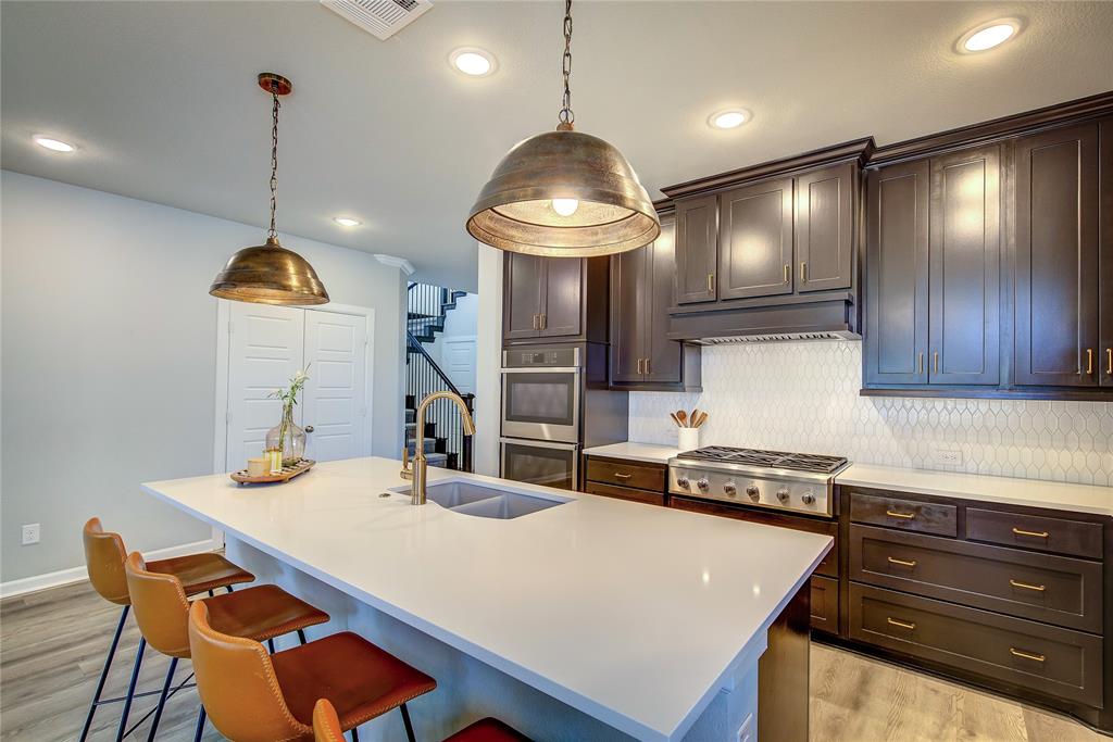 The kitchen is the heart of the home, featuring a large center island, double ovens, a gas cooktop, and an eat-in dining area. A unique feature you’ll love are the two refrigerated drawers conveniently located next to the sink, ideal for beverages, fresh produce, or snacks. The open-concept design flows seamlessly into the spacious living and dining areas, all enhanced with luxury vinyl plank flooring, and decorative lighting. The private primary suite is located on the first floor and boasts a spa-inspired garden tub, dual sinks, a separate shower, and a generous walk-in closet. Upstairs, you’ll find three additional bedrooms each with walk-in closets plus a full bath. Enjoy outdoor living year-round with both front and rear covered porches overlooking a landscaped yard with a sprinkler system. The rear-entry garage provides alley access and enhances front curb appeal. Homestead at Liberty Grove offers wonderful community amenities including a pool, jogging and bike paths, and a fishing pond. Located within Garland ISD with choice of schools. This home truly combines modern comfort with timeless style and is ready for you to move in and make it your own!