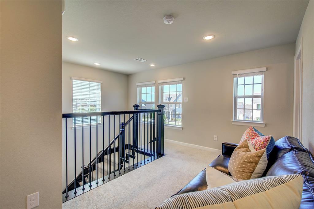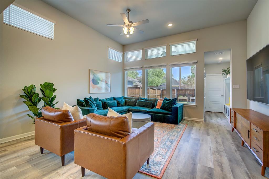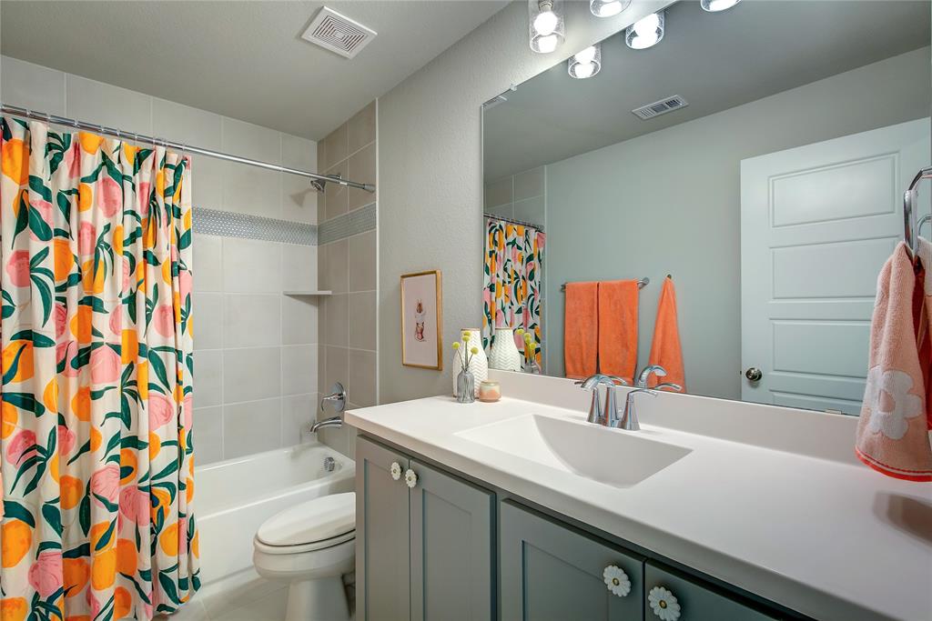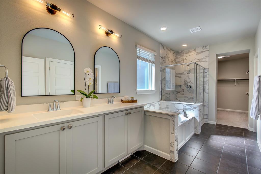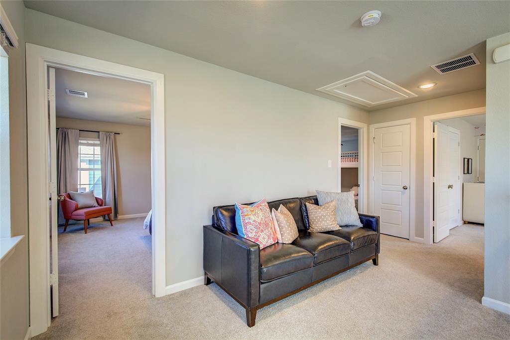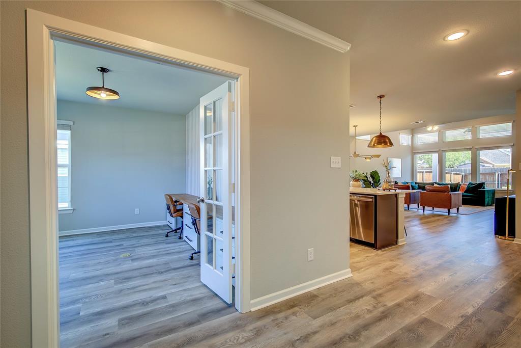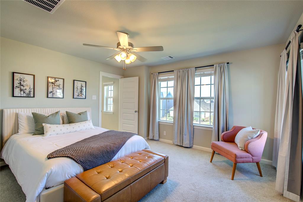 The kitchen is the heart of the home, featuring a large center island, double ovens, a gas cooktop, and an eat-in dining area. A unique feature you’ll love are the two refrigerated drawers conveniently located next to the sink, ideal for beverages, fresh produce, or snacks. The open-concept design flows seamlessly into the spacious living and dining areas, all enhanced with luxury vinyl plank flooring, and decorative lighting. The private primary suite is located on the first floor and boasts a spa-inspired garden tub, dual sinks, a separate shower, and a generous walk-in closet. Upstairs, you’ll find three additional bedrooms each with walk-in closets plus a full bath. Enjoy outdoor living year-round with both front and rear covered porches overlooking a landscaped yard with a sprinkler system. The rear-entry garage provides alley access and enhances front curb appeal. Homestead at Liberty Grove offers wonderful community amenities including a pool, jogging and bike paths, and a fishing pond. Located within Garland ISD with choice of schools. This home truly combines modern comfort with timeless style and is ready for you to move in and make it your own!
