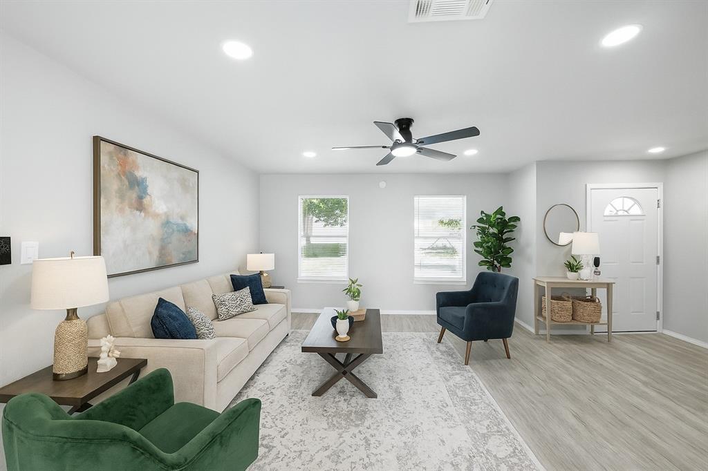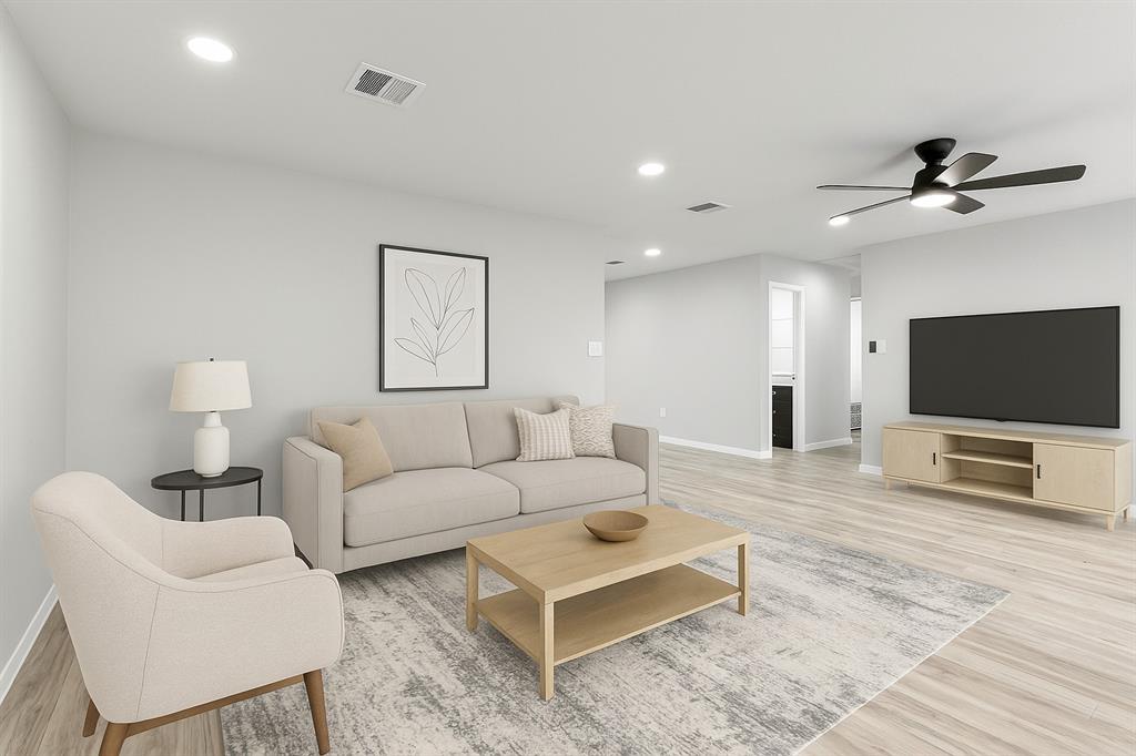 -Seamless new flooring, fresh interior and exterior paint, and modern recessed lighting throughout
