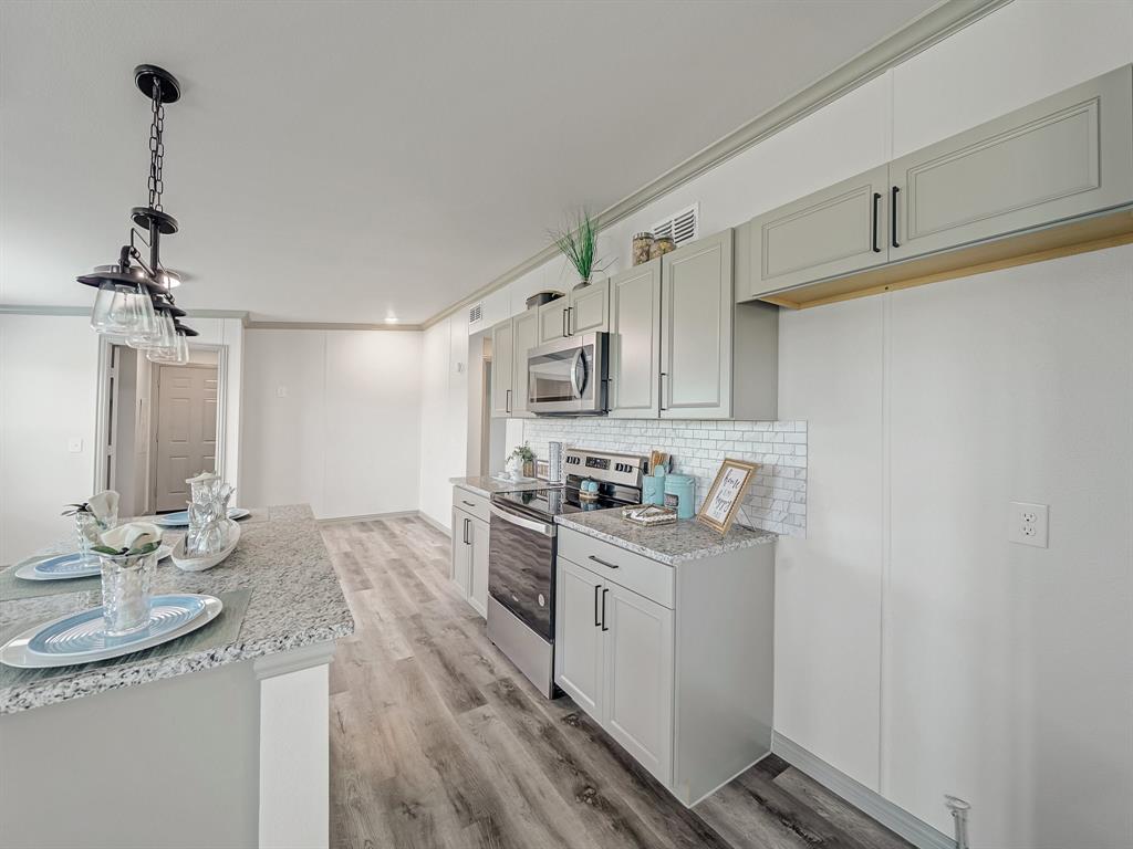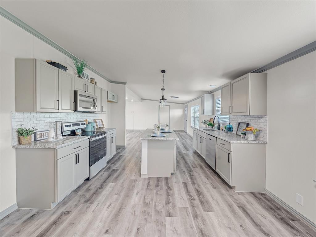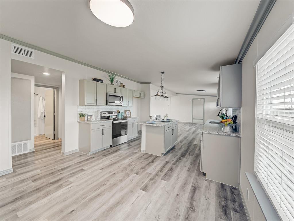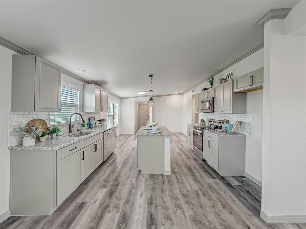 AMAZING HOME! REMODELED BETTER THAN NEW! Exceeding the charm of a new double-wide manufactured home, this stunner boasts 1.66 acres of picturesque landscape with a tranquil creek for your enjoyment. This 1568 sq ft home has been upgraded with quartz countertops in both the kitchen and baths, as well as all new beautiful cabinets, appliances. The home offers a seamless blend of elegance and functionality, with both an open concept and the privacy of a split floor plan