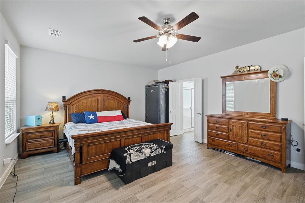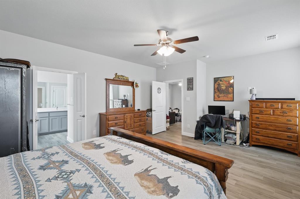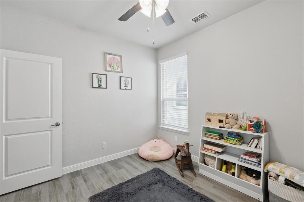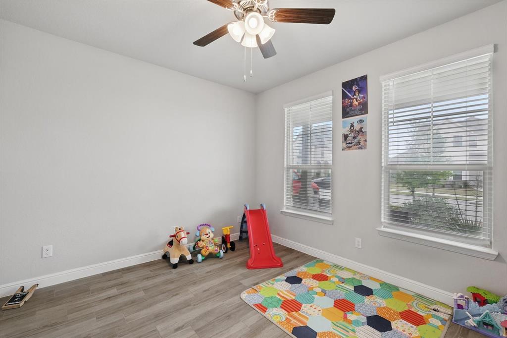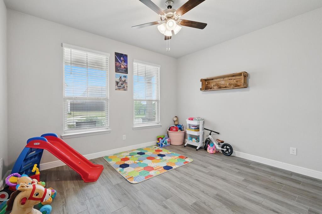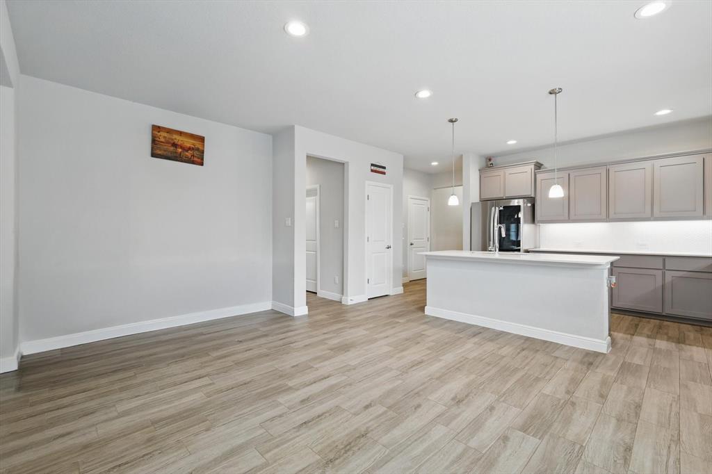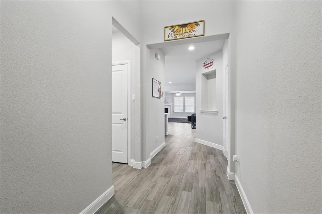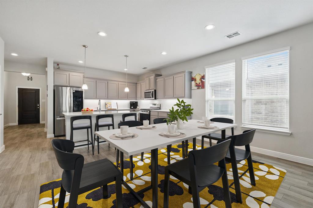 New roof installed in May 2025! 4 bedrooms and 3 full baths adorned with quartz countertops. Across the street from a darling pocket park with swings, a pavilion and green space for play in the highly regarded Community of the Year, Pecan Square! Relax on your charming South facing front porch. This airy and bright open concept floor plan is free from carpet with gorgeous wood-look tile throughout the entire home. Tankless hot water, gas log fireplace, front and back covered porches, ample closet and cabinet space, walk-in pantry and gas cooktop with exterior ventilation. Extended primary suite, huge walk-in closet and dual sinks, separate shower and tub in en-suite. The HOA dues include high-speed internet, and access to all of the resort-style amenities; 3 pools, dog parks, playgrounds, walking trails, pickleball courts, pizza oven, fire-pit, game-room, gym, and on-site elementary school, with a middle school on the way off of Mulkey! There are plenty of neighbor-run niche groups to help get you plugged in and settled if that is your vibe! Tom Thumb coming Spring of 2026, and nearby shops, restaurants and food trucks will have you feeling right at home. Catch the sunset from Elm Tower or Horizon Ln. You will LOVE living here!!