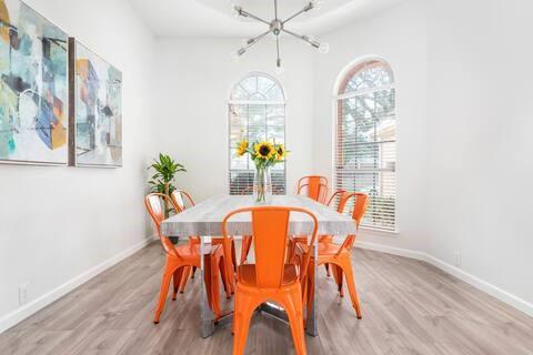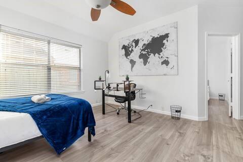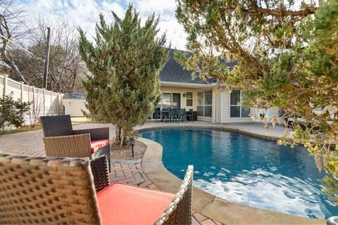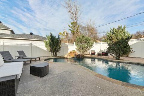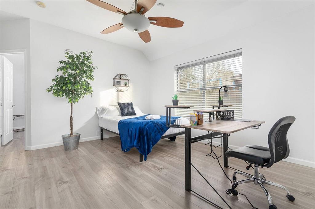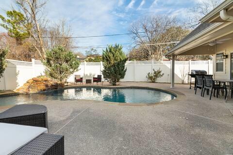 Outside, a sparkling pool anchors a private backyard oasis, framed by an elegant wrought iron fence and a quaint shed for storage or hobbies, offering cozy nooks for quiet chats or lively Texas barbecues. The serene primary suite boasts a spa-inspired bath, while two bedrooms share a versatile den, ideal for guests or a home office. The light-filled fourth bedroom, with ample windows, a closet, and sliding doors to the poolside patio, serves as a media room or guest retreat. Set on a spacious 0.22-acre lot with a 2-car garage, near top-rated Arlington ISD schools and major highways, this gem sparkles—tour today to seize your dream home!