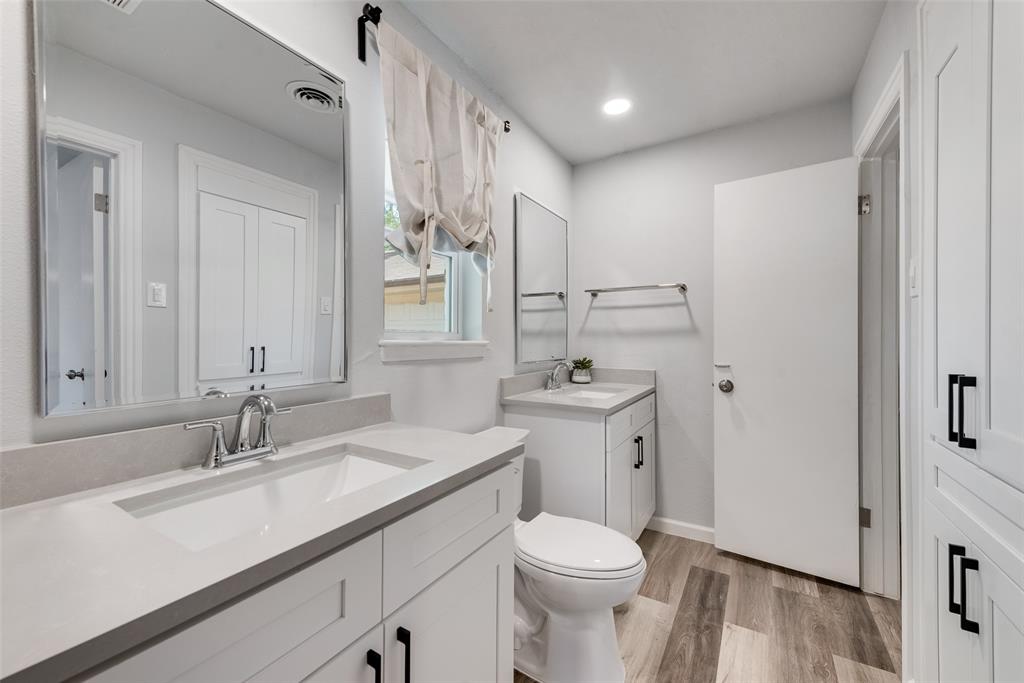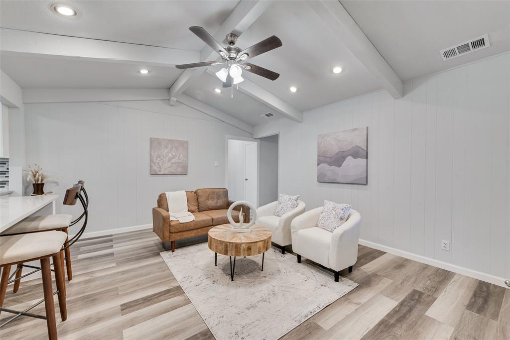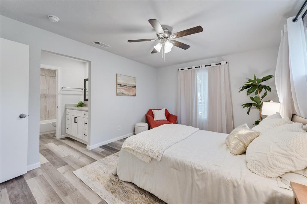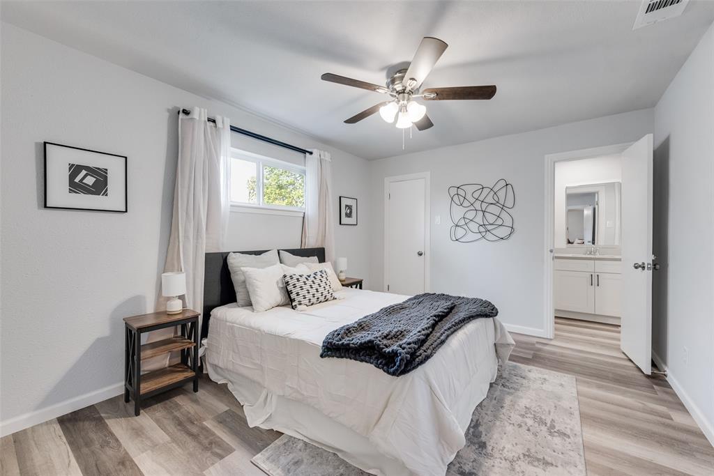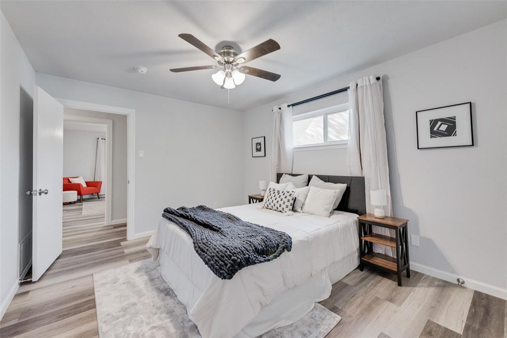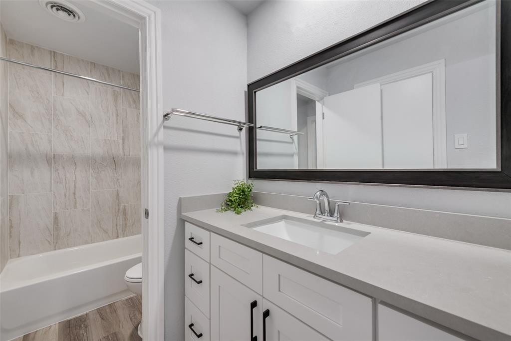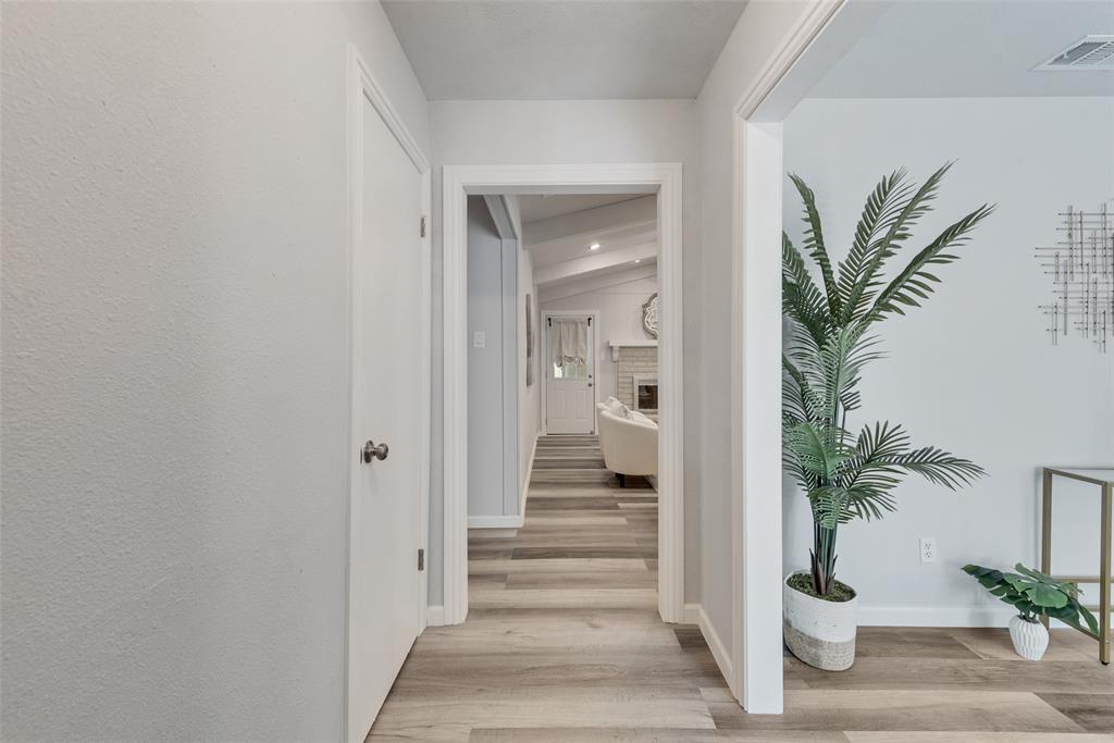 Charming and beautiful one-story home nestled in a quiet neighborhood. Features an open floor plan with stunning, lush vinyl plank wood flooring throughout all living areas, bedrooms, and the hallway, all windows and doors have been replaced. Spacious open kitchen featuring bright Quartz stone countertops and a backsplash that highlights a beautiful contrast. Includes stainless steel appliances and a large island with a cooktop and vent, seamlessly opening to the living room. Spacious living and dining area featuring a cozy brick fireplace, ceiling fans seamlessly opening to a covered, screened patio—perfect for evening relaxation. Spacious and private backyard with additional parking for an RV or boat. Unique opportunity to own one of the big lot homes at center of Irving, close to DFW airport, major highways and markets. Don’t miss out on this immaculate house!