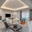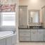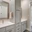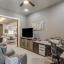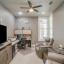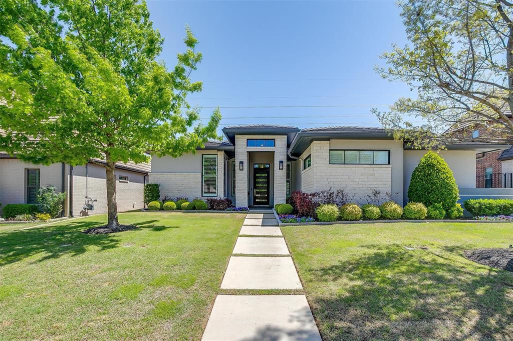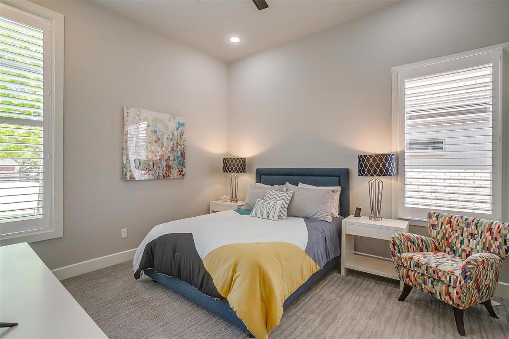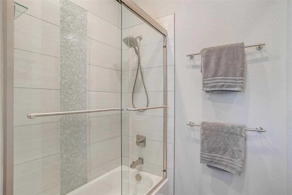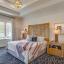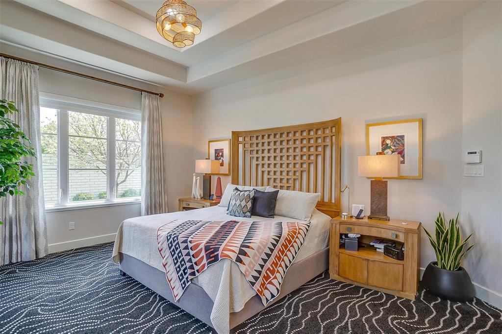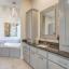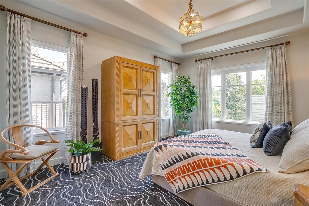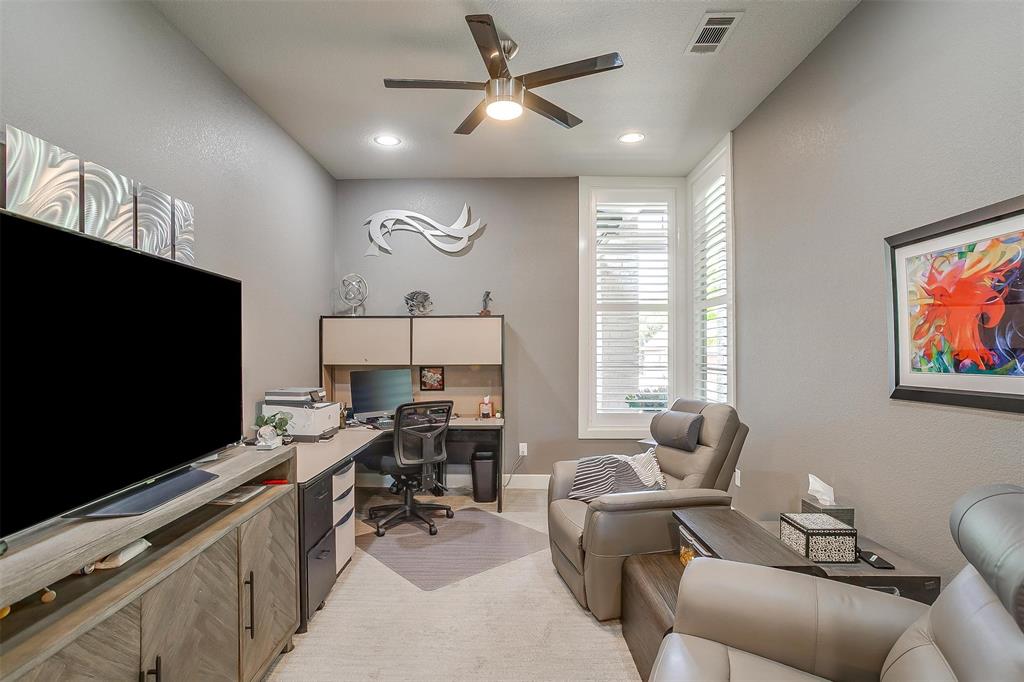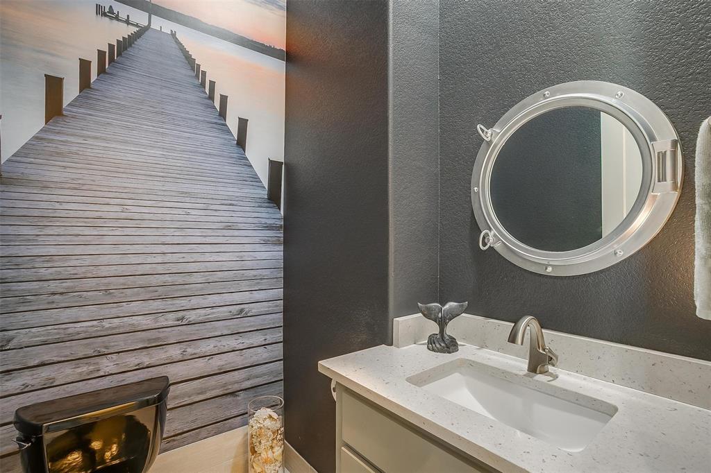 Nearby, a well-appointed study is the perfect place to handle remote work or settle in with a great book. The primary suite is beautifully appointed with a dramatic tray ceiling and a custom closet with built-in cabinetry that is smartly set up to organize a dream wardrobe. The spa bath includes double vanities, toilet closet, garden tub and a glass shower featuring double showerheads. The stunning design continues throughout two additional bedrooms with large closets and a third bedroom that can serve as a game room with extra storage, thanks to a walk-in closet. Two full bathrooms, one of which can be reimagined as a patio-pool bath, plus a convenient half-bath are crafted with the same high-end cabinetry and designer fixtures.