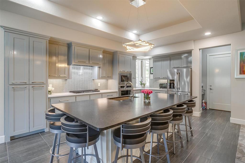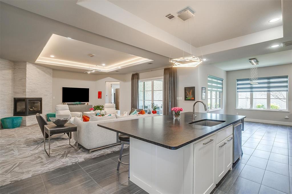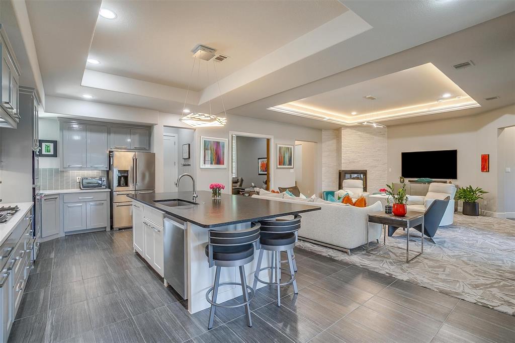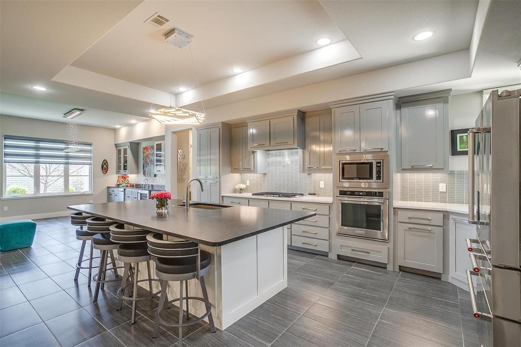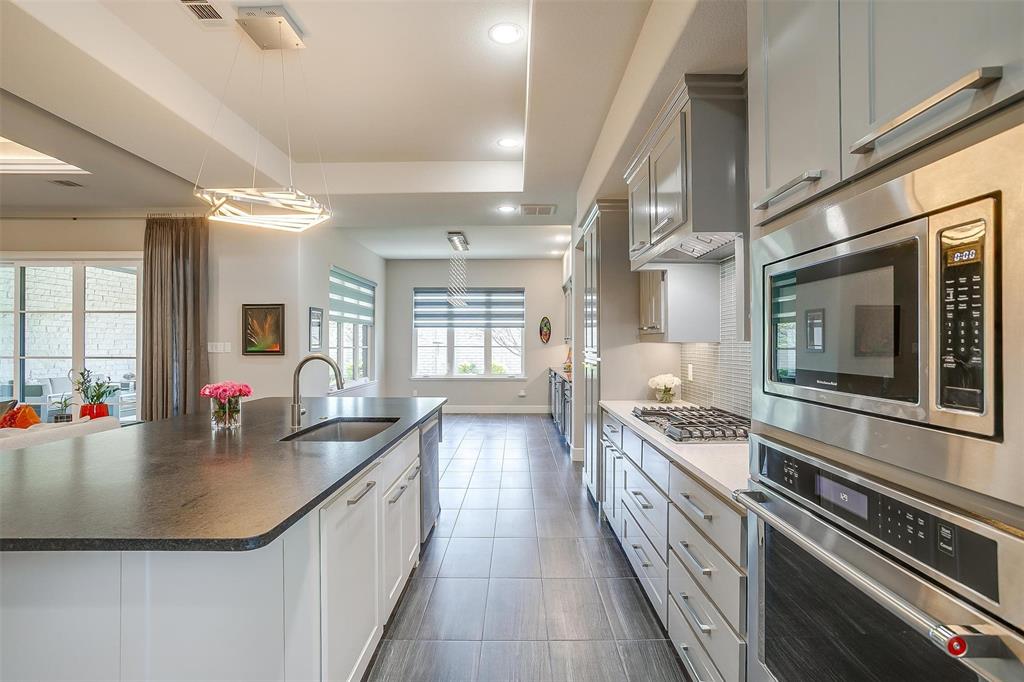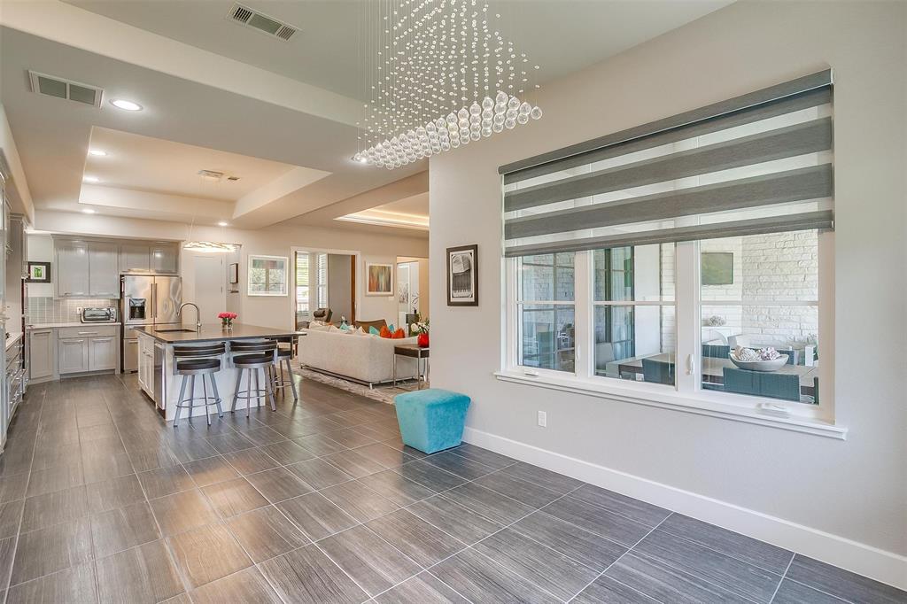 Designed and built with unparalleled craftsmanship by M the Builders in highly sought-after La Cantera at Team Ranch, this home blends luxurious and comfortable living with contemporary touches. The custom entryway opens to reveal open spaces and an enormous great room with high-end details including stacked stone, gas fireplace and a tray ceiling featuring custom lighting. Culinary enthusiasts will appreciate an open kitchen that includes a leathered granite island with seating for six. Top of the line, stainless appliances, tile backsplash and custom cabinetry make this kitchen as beautiful as it is functional. The sleek design continues into the dining room which includes a built-in buffet with a wet bar and wine fridge.