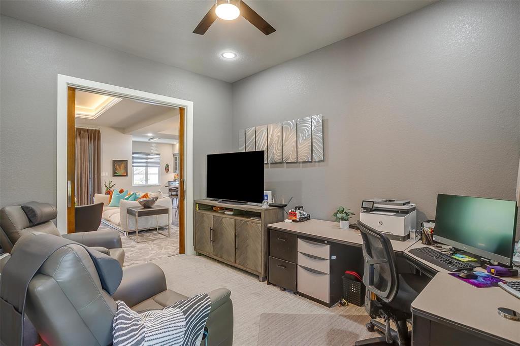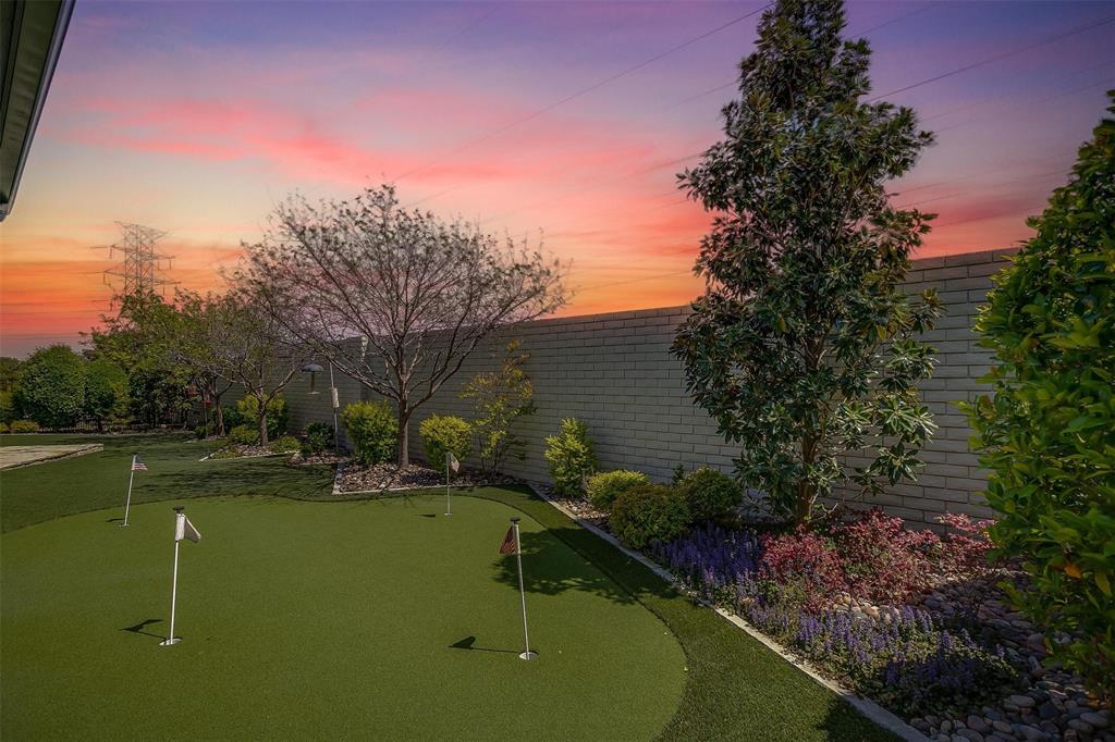Outside, owners will thrill at the oversized, covered patio that is the ideal place to host a seated dinner for eight or gather in the comfortable seating area to watch the game or cheer on friends as they try their luck on the putting green. Additional amenities and updates include a stacked stone and stucco façade, laundry-mud room with built-ins, cement tile roof, two-car garage with epoxy floor, backup generator, attic heat detectors and whole house water softener and filtration system.