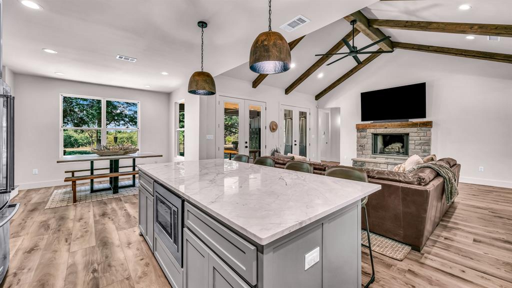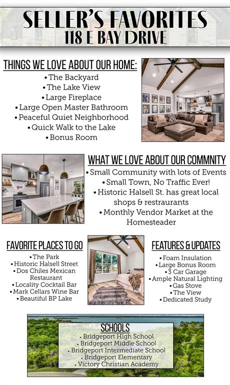 Outside, enjoy the serene and tranquil ambiance that lakeside living provides, all while being conveniently located less than 10 minutes from Historic Bridgeport Main Street and less than an hour from Alliance Town Center, Southlake, DFW Airport, and Downtown Fort Worth.