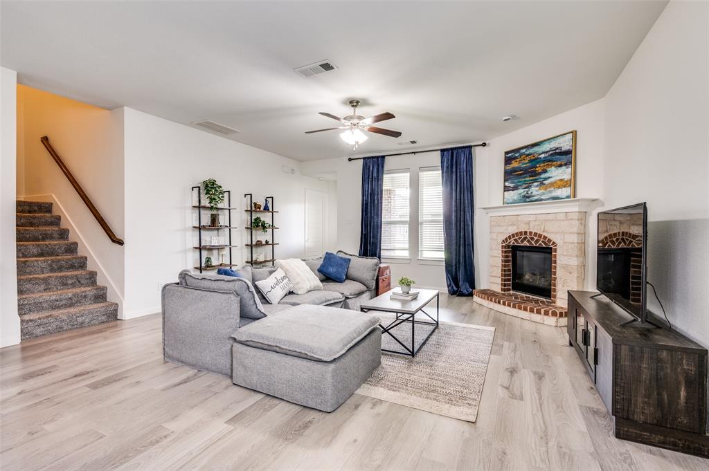 Cozy up in the living room with the fireplace for chilly nights, or entertain downstairs with the spacious kitchen and a half bath. The back patio features a built-in gas line for a gas grill and a cable TV outlet for outdoor entertaining. Enjoy the summer nights in the large backyard basking on the patio.