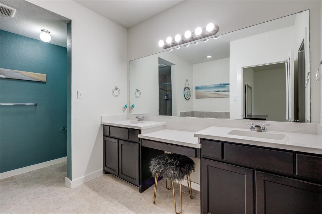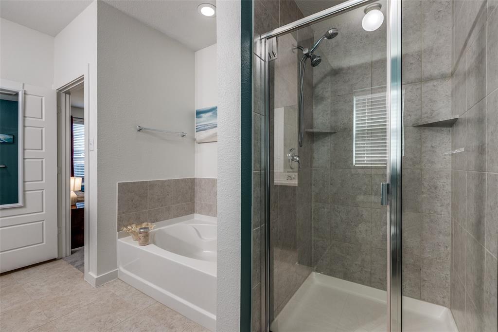 The primary bedroom suite is tucked downstairs for maximum privacy, and yes, it is spacious. The primary bedroom's bathroom features a separate shower and tub where each space has enough separation to move around. Enjoy dual vanities with a knee space and the bonus of them all, a spacious closet located in the bathroom.
