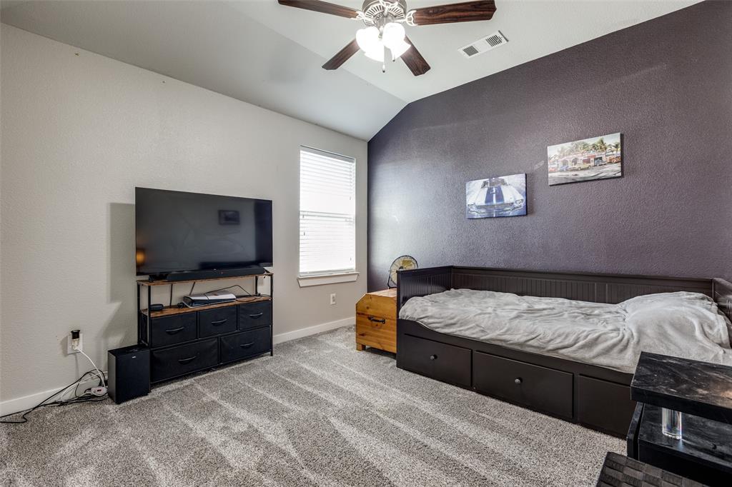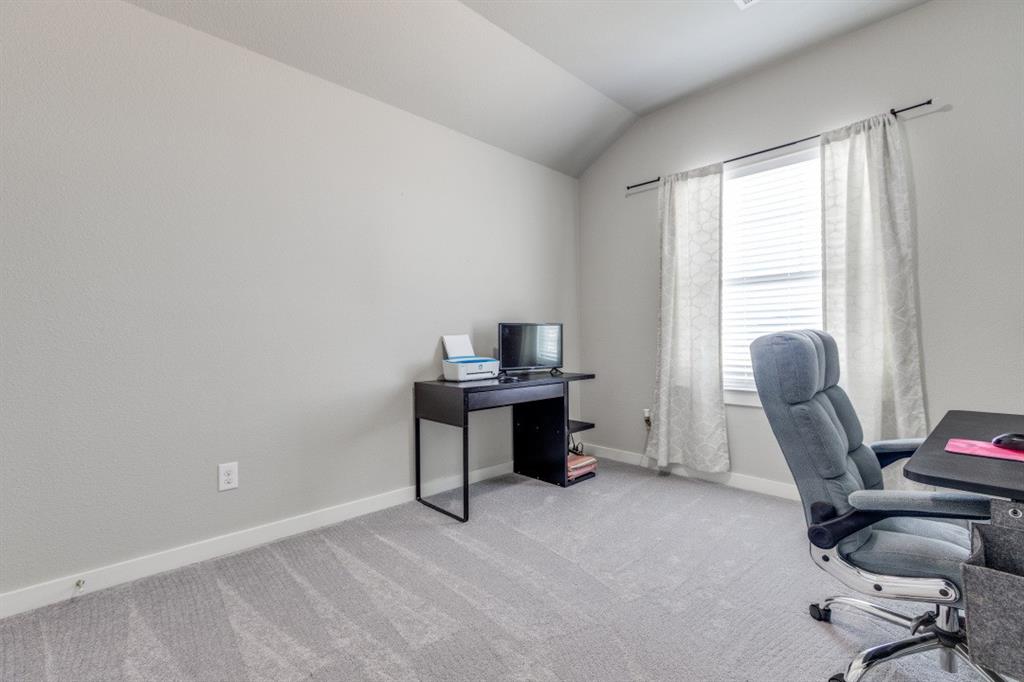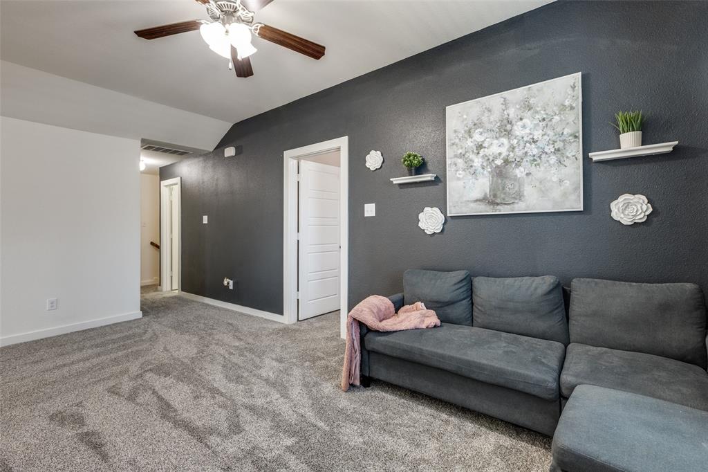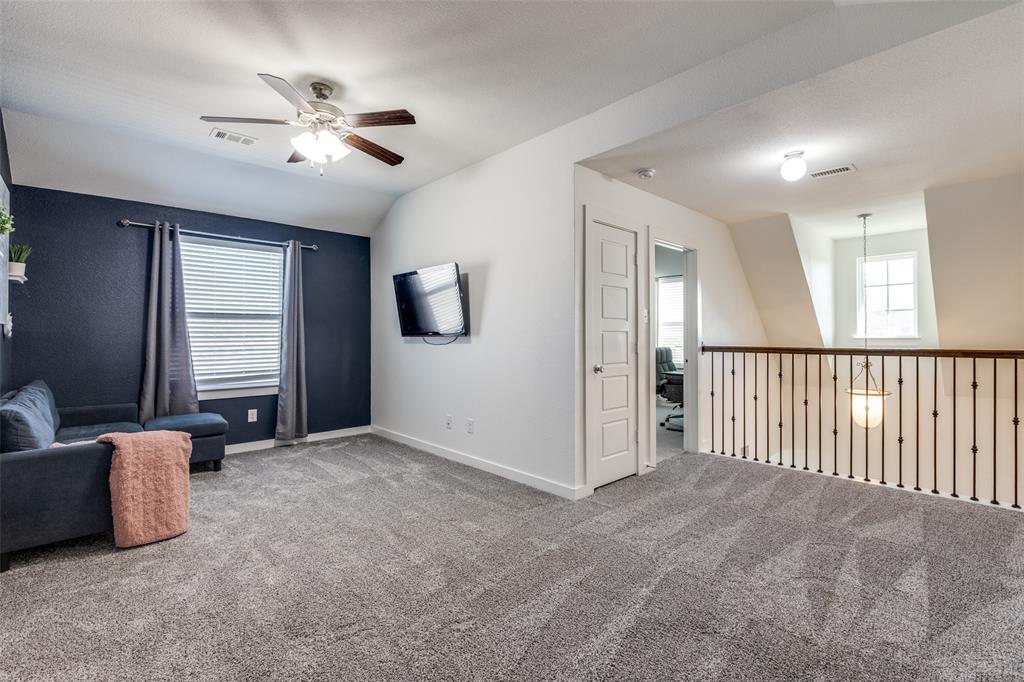 Venture to the home's second level, to a flex space that can be a game room, cozy movie spot (as shown), or homework space. Each bedroom on the second floor feels like it has its own private space, which aids in privacy among the rooms on the second floor. Fridge, washer, and dryer included in the sale of the home.
