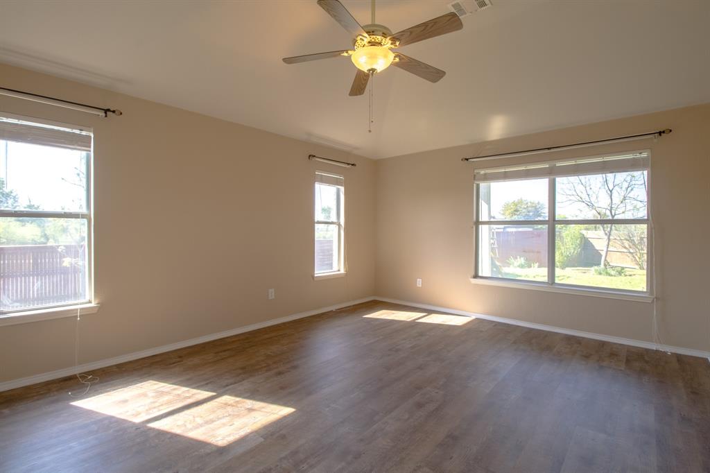 HUGE PRICE DROP AGAIN!! Seller put the property at his absolute lowest, acceptable price so please consider it. With the backyard spa, corner lot, energy saving solar panels (included), THIS IS NOW OFFICIALLY A DEAL. Beautiful corner lot home in the Mustang Creek subdivision has a spacious, private backyard, covered rear porch, a hot tub cabana, and a big, wooden outdoor swing set! What an awesome way to enjoy your free time throughout the year! The neighborhood park is just across the street, along with a walking path to get there! The open-style floor plan features two living areas, formal dining area, huge light and bright kitchen, with skylight, and 2nd living room with corner fireplace! The spacious primary retreat is private and features dual sinks, separate shower, garden tub, and a walk-in closet! The secondary bedrooms share the hall bath. Other notable features include a walk in pantry, solar screens, laminate flooring, sprinkler system, gas range and gas starter in fireplace. The roof is only a few months old and a set of working solar panels were installed and fully convey with sale. This wonderful home is ready for its' next chapter!