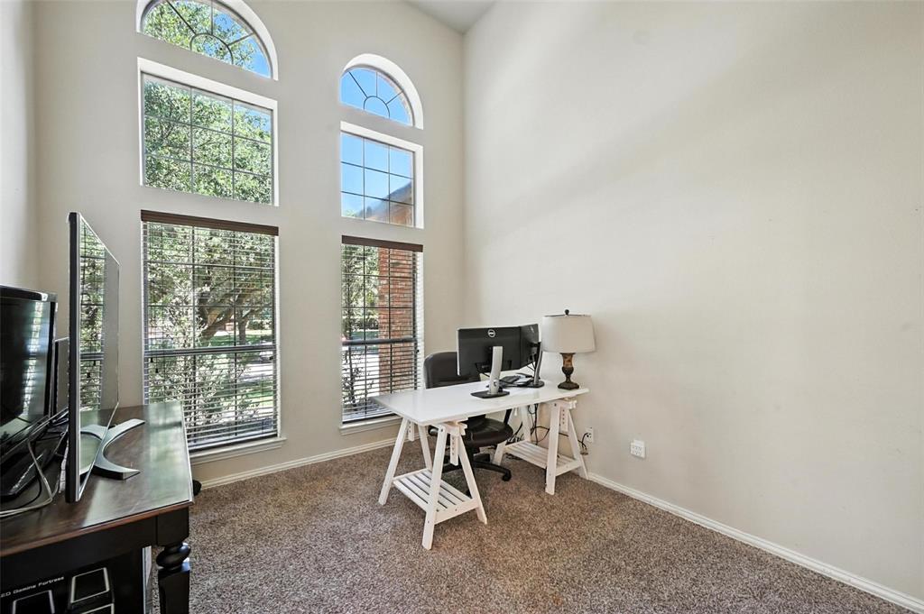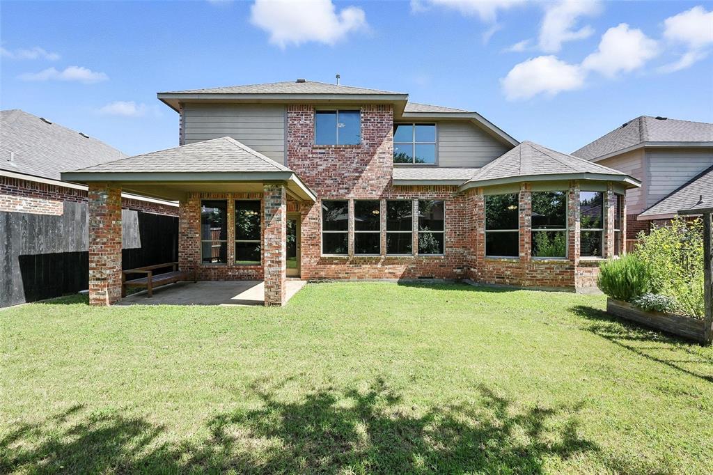 Nestled in the sought-after Liberty community, this beautifully upgraded 4-bedroom, 2.5-bath home offers a seamless blend of comfort, elegance, and smart functionality. From the moment you step inside, you’re welcomed by dramatic vaulted ceilings, rich architectural details, and natural light that pours through the walls of windows. Designed for modern living, the heart of this home is a spacious chef’s kitchen featuring granite counters, an oversized 6 foot island, gas cooktop, extensive storage, and a breakfast nook that opens directly to the family room, making entertaining effortless. The living room is warm and inviting with a gas fireplace, art niche, and expansive windows overlooking a lush, private backyard—already planted with fruit trees (fig, plum, and nectarine) and raised beds for your favorite veggies and herbs. Escape to the primary suite, tucked away on the main level, complete with a sitting area, high ceilings, spa-style bath with dual vanities, garden tub, walk-in shower with bench, and a massive walk-in closet. You’ll also love the dedicated office with French doors and tall windows for an inspiring work-from-home setup, and the elegant formal dining room with custom trim and chandelier. Upstairs, three generously sized bedrooms each feature walk-in closets and ceiling fans, along with a bright game room perfect for play, media, or second living space. Enjoy a covered back patio perfect for outdoor dining or relaxing evenings, a spacious two-car garage equipped with built-in shelving and a workbench. Enjoy access to Liberty’s incredible resort-style amenities including a community pool, splash pad, sports courts, scenic trails, playgrounds, and a catch-and-release fishing pond. Zoned for Melissa's highly rated schools including Harry McKillop Elementary located in the neighborhood.