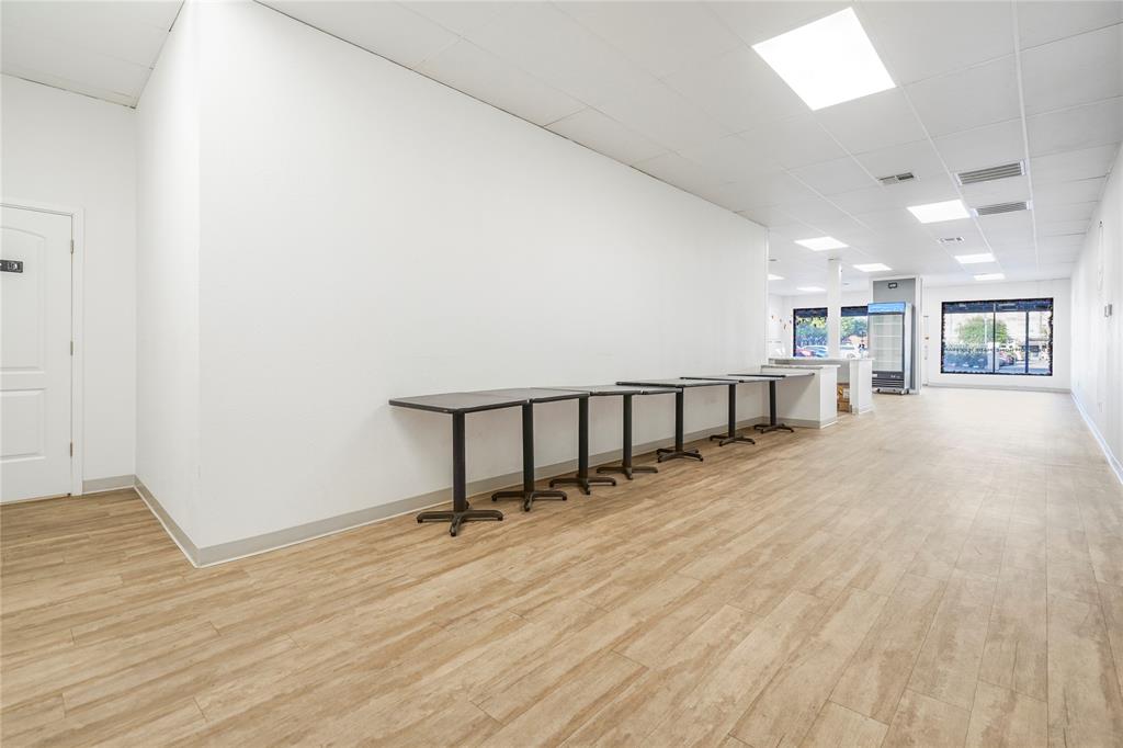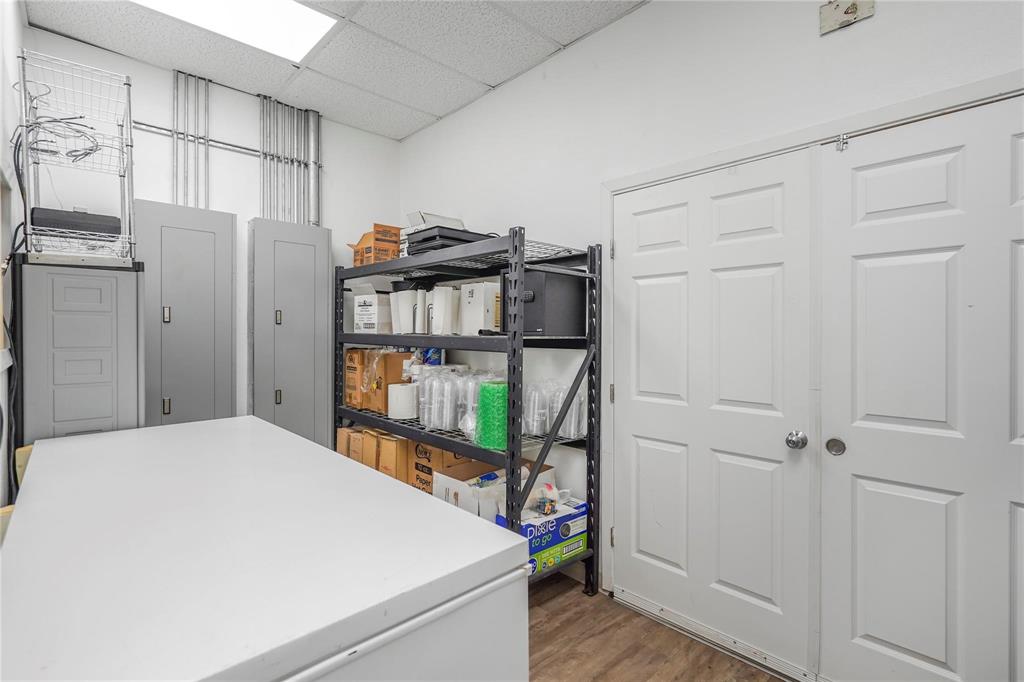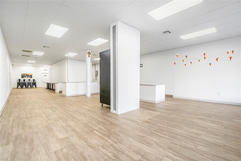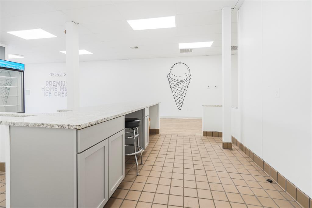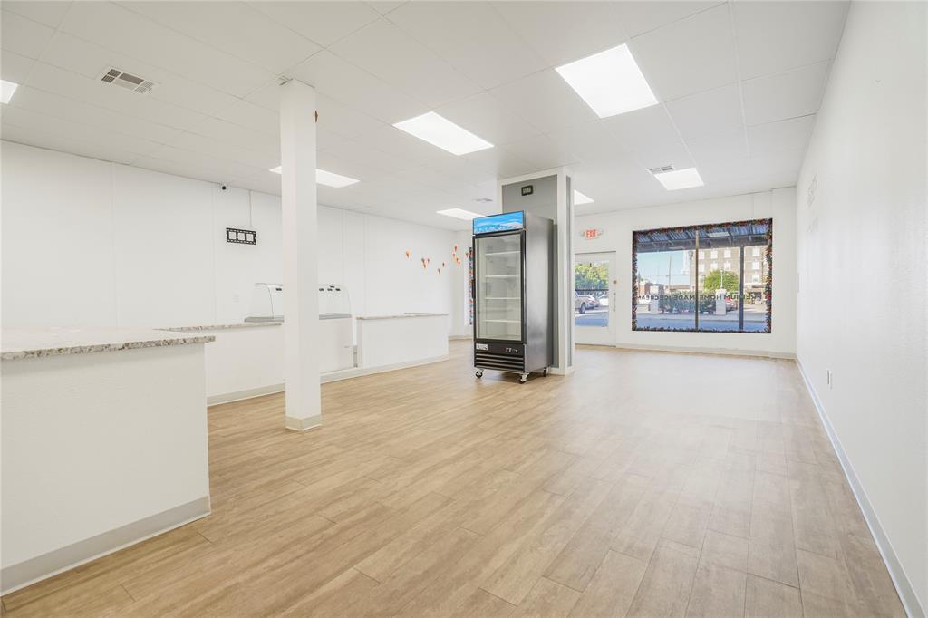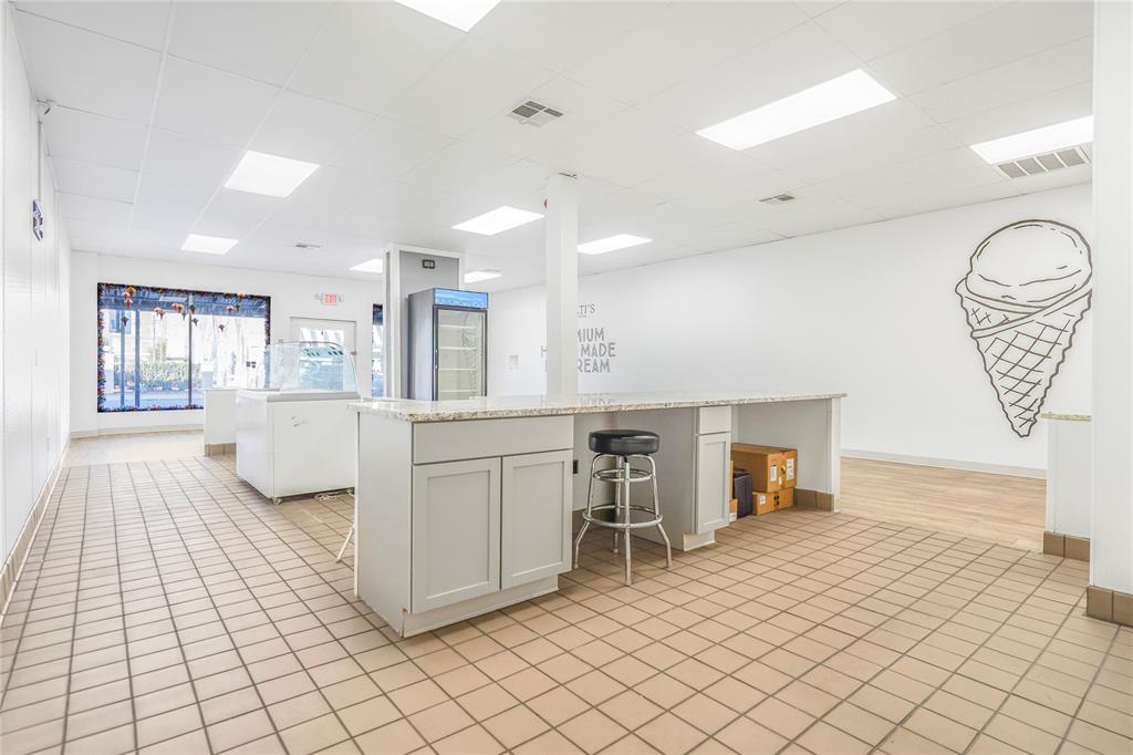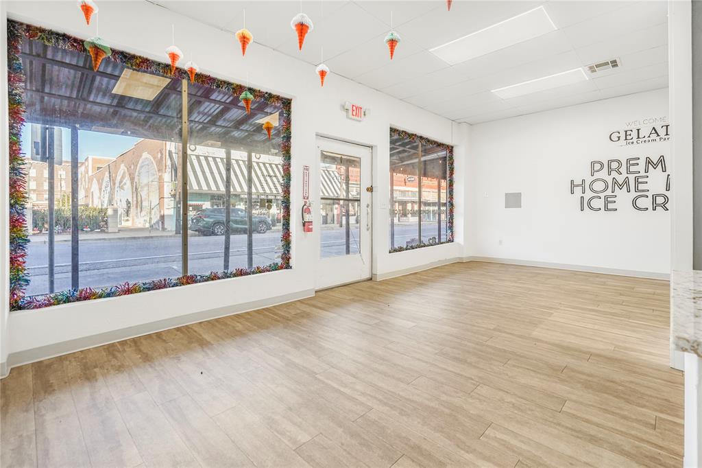 Own a piece of historic downtown Cleburne! This building was extensively renovated in 2022 for a homemade ice cream shop. The renovation includes new floors, fresh interior and exterior paint, new plumbing, new electric, new upgraded drop ceiling with all new LED lighting, and much more. Two-unit HVAC replaced in 2017 by previous owner. Complete electric overhaul includes a new dedicated transformer and two breaker boxes with plenty of room for expansion. Features include a large window storefront, metal awning over the sidewalk, 16'+ long serving line, point of sale with huge granite countertop, generously seized seating area, ADA compliant bathroom, dry storage and admin area, and multi-level enclosed exterior storage space (not counted in sq ft). Kitchen area includes plenty of outlets to support commercial-grade appliances, dedicated circulation fan, streamlined plumbing, electric tankless water heater, and ceramic tile flooring. No need to limit to a food establishment, this will also work great for retail. Building location also makes it eligible for multiple city improvement grants!