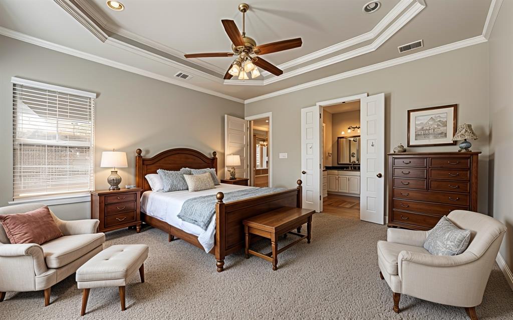 The main-level primary suite is a true retreat with a spacious walk-in closet and a luxurious 5-piece en-suite bathroom. Upstairs, you'll find two additional bedrooms and a bonus room.