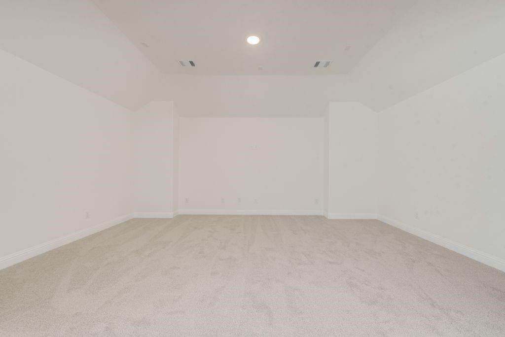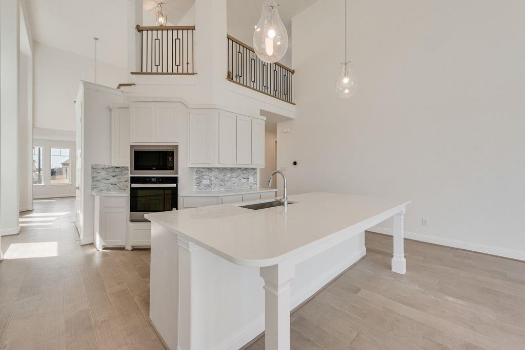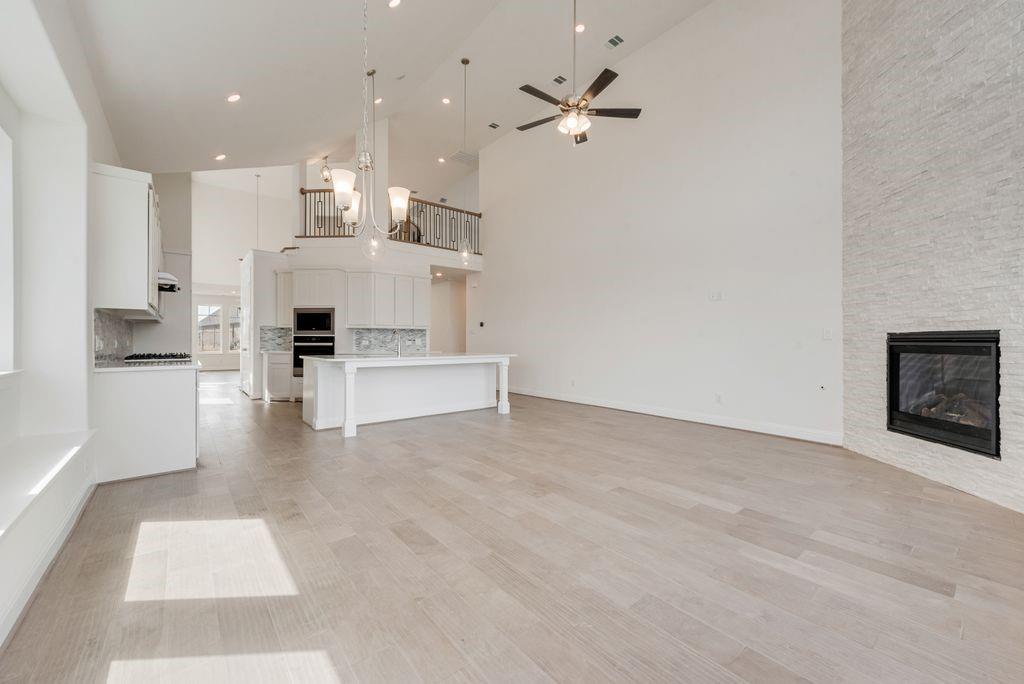 The exterior showcases classic traditional styling, while the thoughtfully designed interior is ideal for both everyday living and entertaining. The open-concept kitchen features custom Shaker cabinetry with convenient pots and pans drawers, sleek Omegastone slab countertops, stainless steel appliances, a 5-burner gas cooktop, full bowl sink, and a spacious island that brings everyone together. The family room is warm and inviting, with a dramatic two-story stone fireplace and rich wood flooring that continues throughout the main living spaces. Upstairs, enjoy a large game room and a media room wired for surround sound—perfect for movie nights or hosting the big game.