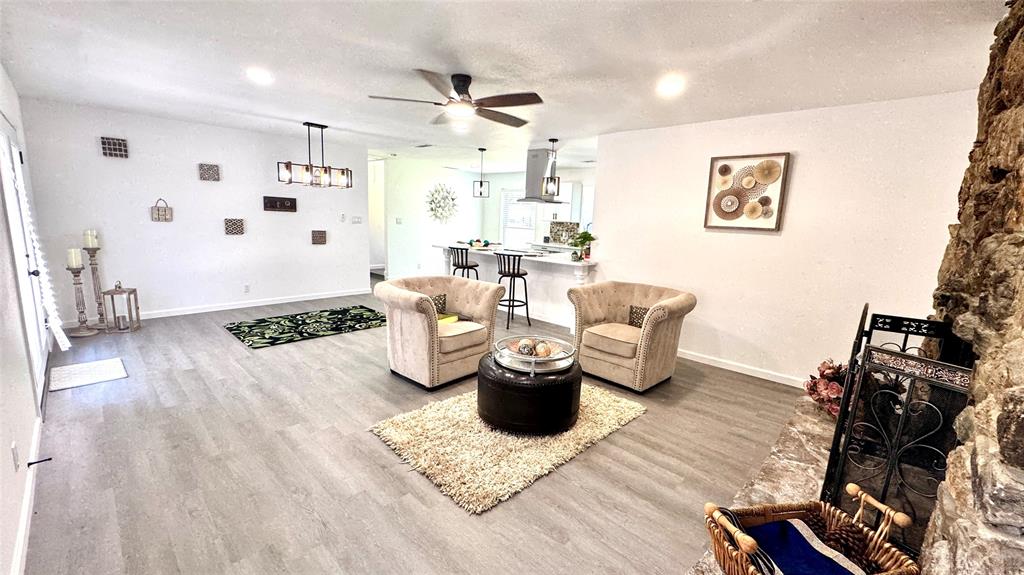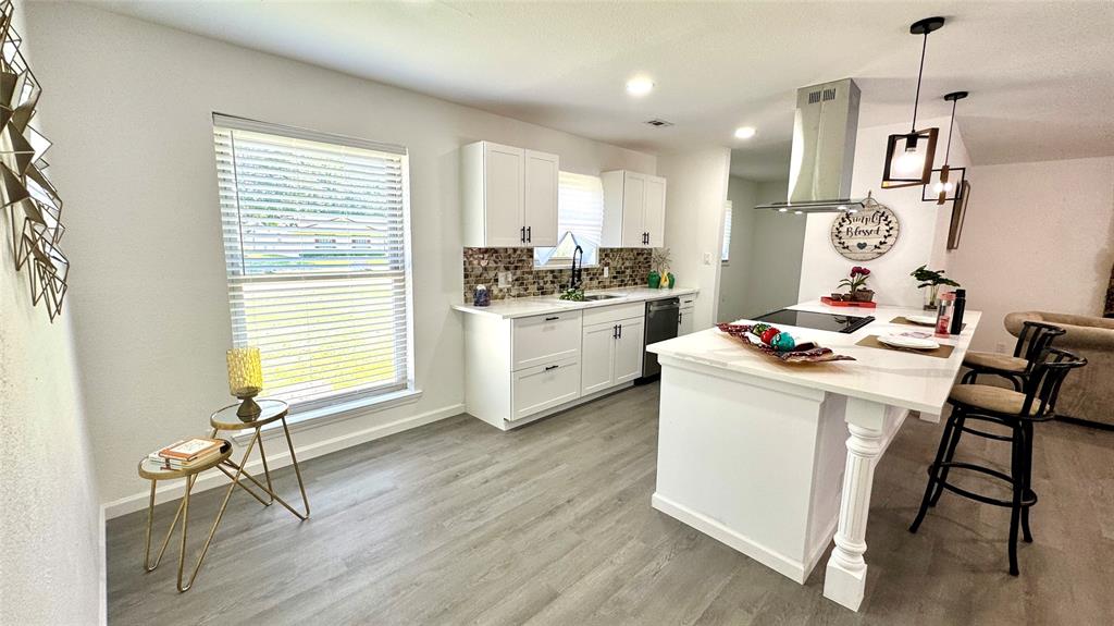 Welcome to totally remodeled and tastefully updated contemporary ranch style home.A home featuring a stunning kitchen with oversized quartz countertop, modern appliances and sleek cabinetry.It has an open and airy layout with the kitchen that flows effortlessly into adjacent living and dining. The stylish kitchen welcomes you to an oversized bar style cooking counter. A nook provides a cozy chow area. Attached is fully functional laundry with with a walking pantry and a small work space.