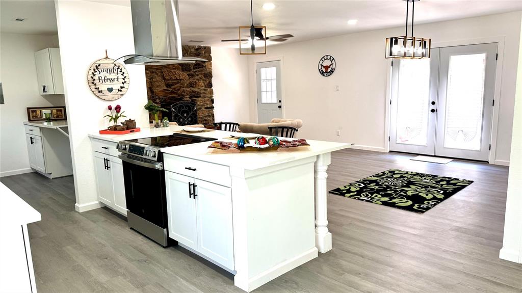 Freshly painted interior and exterior , luxurious vinyl and tile throughout the home, brand new french doors, new window covering , modern entry door and beautiful modern fixtures complete the ensemble.