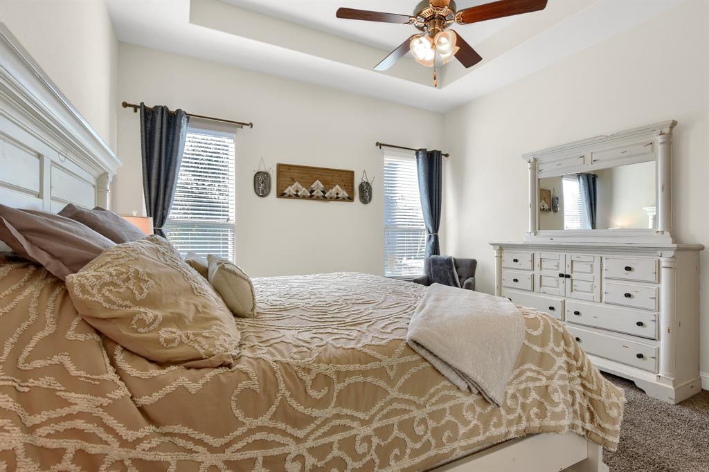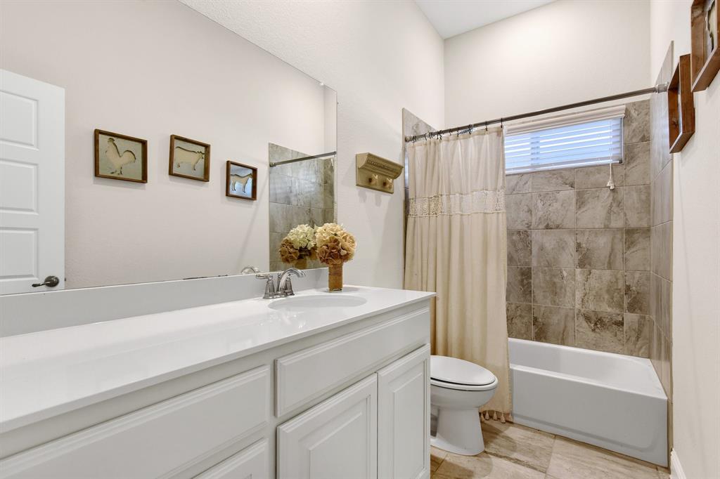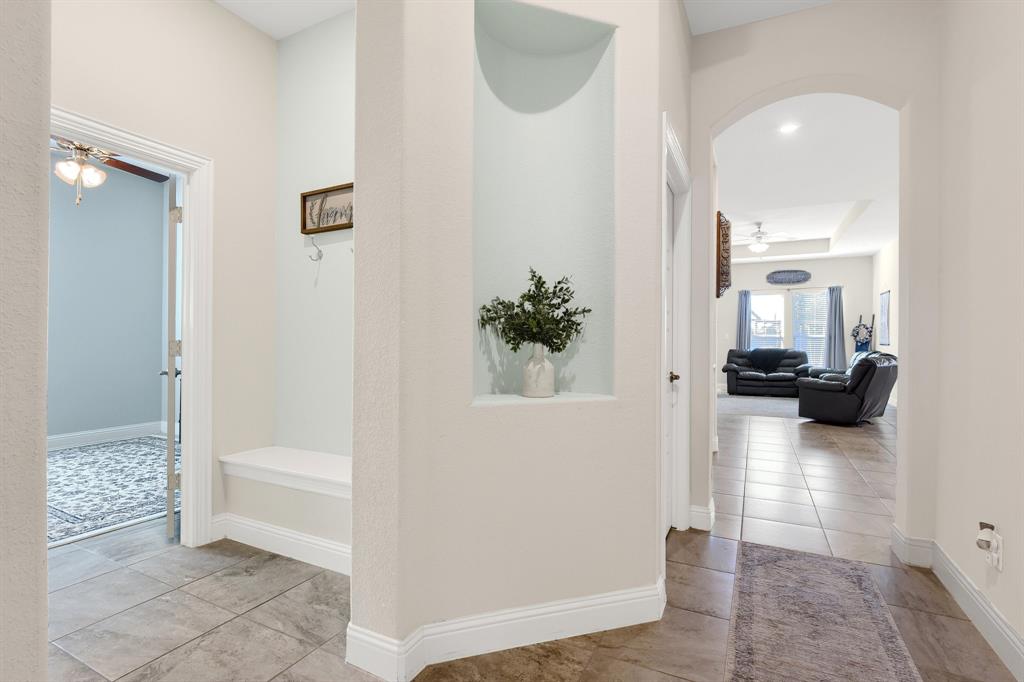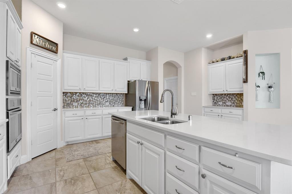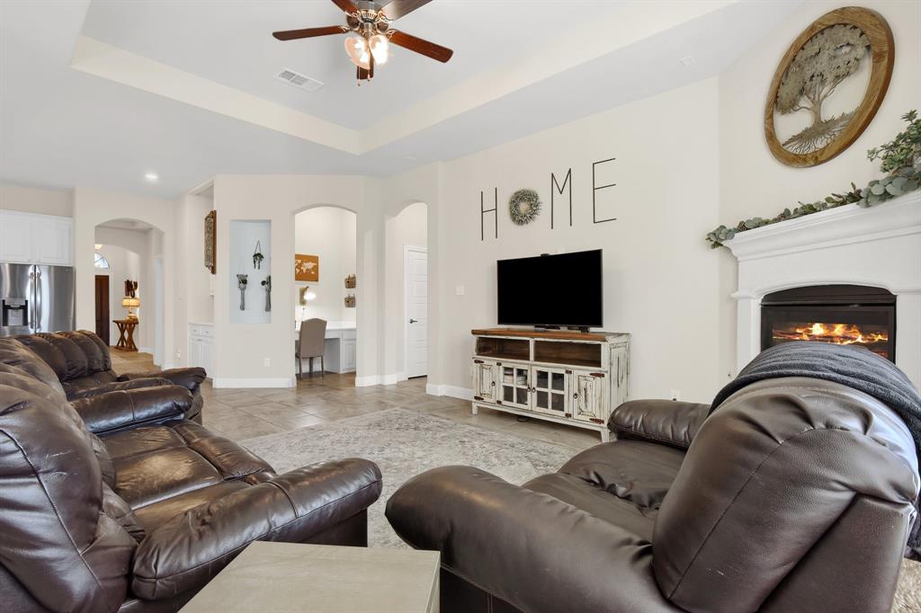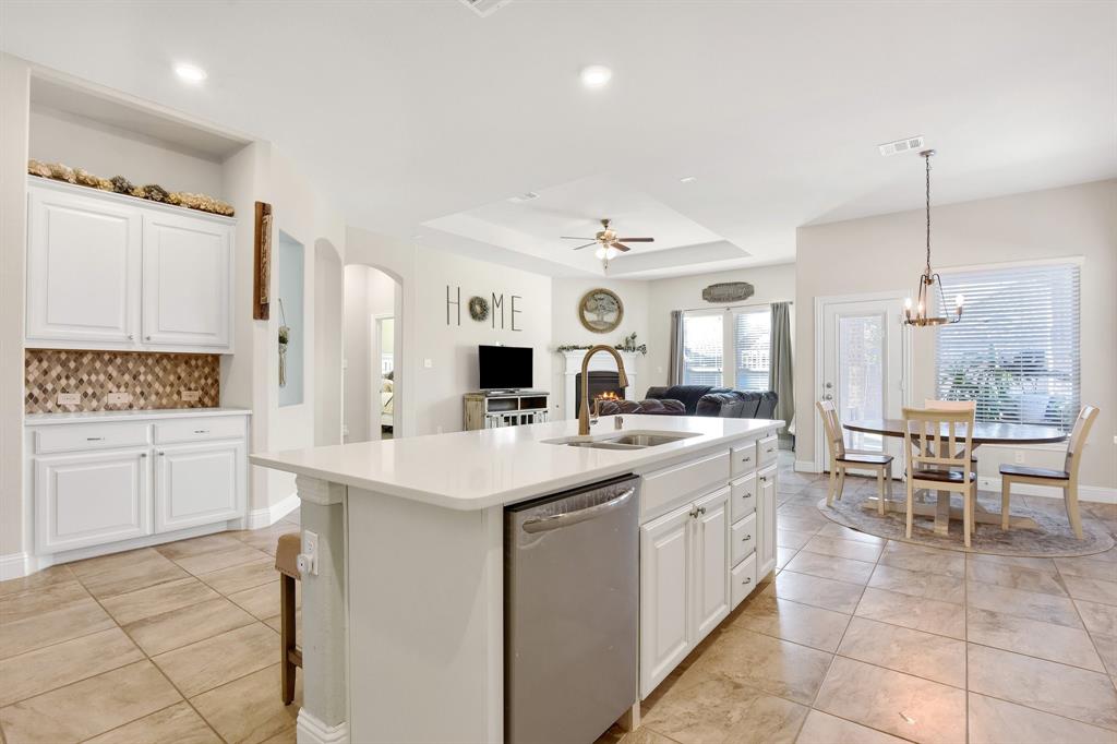 Nestled within Celina's prestigious Bluewood community, this residence presents an unmatched lifestyle amid a treasure trove of community luxuries. From the lauded Celina ISD to an array of amenities such as trails, an inviting amenity center, shimmering pool, serene fishing ponds, parks, and playful playgrounds, every day here promises an adventure. Boasting a den and a dedicated home office nook, it's tailored for modern living. The living room features a cozy gas fireplace for relaxation while the kitchen dazzles with sleek white shaker style cabinets, quartz countertops, and an impressive gas stove top with a wood hood. Architectural elegance shines throughout with tray ceilings and inviting open living and dining space leading to an extended patio, perfect for entertainment and leisure. Outdoors, enjoy the stunning large wood plank stamped patio, creating a peaceful retreat for gatherings and relaxation. Don't miss this opportunity to create lifelong memories in comfort and style.
