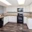 Pretty kitchen with neutral colors, granite counters, stone backsplash, breakfast bar, and built ins.