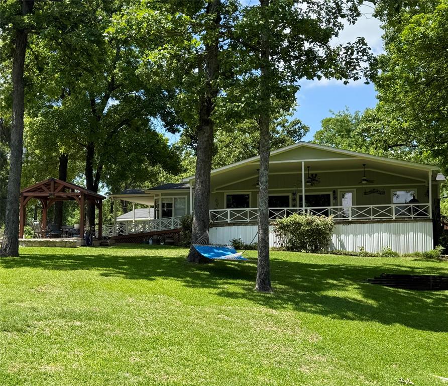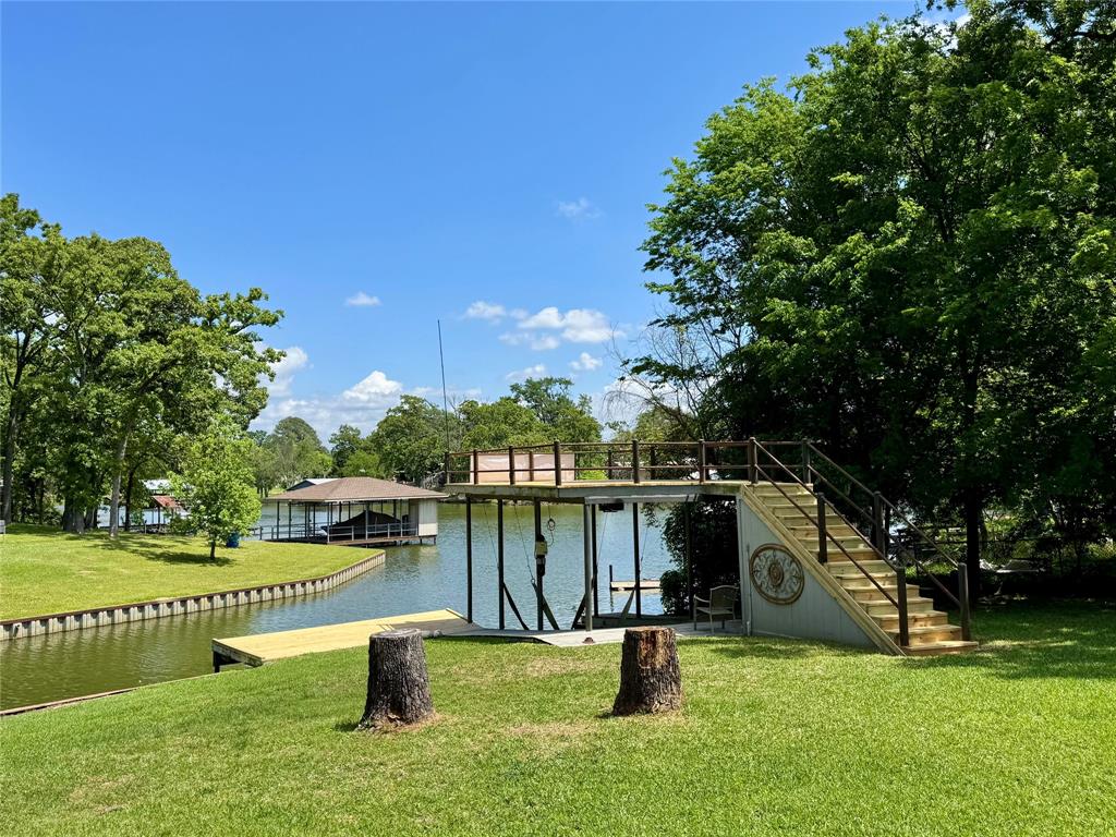 Great AirBnB opportunity. Lakefront Living at Its Best. Peace, Privacy & Plenty of Perks. Welcome to your dream retreat on the water! Nestled in a quiet neighborhood, this beautifully maintained 3 bedroom, 2 bathroom home offers the perfect balance of relaxation and functionality on a stunning waterfront property. Enjoy breathtaking lake views from your covered porches surrounded by lush landscaping and mature shade trees. Spend your mornings fishing from your private dock, complete with a boat lift and a charming fish cleaning house featuring its own half bath. The boat dock is currently receiving a refresh with new timber and will be ready for all your summer fun. The home features many new updates including new roofing on all structures, as well as exterior paint. Whether you're casting a line or cruising the lake, this is outdoor living at its finest. Inside, the home boasts a fresh and charming feel with an updated interior. The primary bath and bedroom are a relaxing retreat. The spacious laundry room includes room for a freezer, and thoughtful touches throughout the home make everyday living a breeze. You won't believe the view from the huge picture windows! There's no shortage of storage or space for hobbies, with an oversized 4.5 car garage, separate storage shed, and dedicated RV parking equipped with sewer, water, and 30-amp service. Gardeners will love the roses, peach trees and thriving blackberries, while entertainers and nature lovers alike will appreciate the serene setting. This is more than just a house—it’s a lifestyle. Schedule your private tour today and discover everything this lakefront gem has to offer. While this home is not located in a POA, for an additional cost of $10,000, Property ID 262137 can be purchased in the neighboring POA with access to the boat ramp and included amenities and has a fee of $75 per year. Buyer or buyer's agent to verify all info.