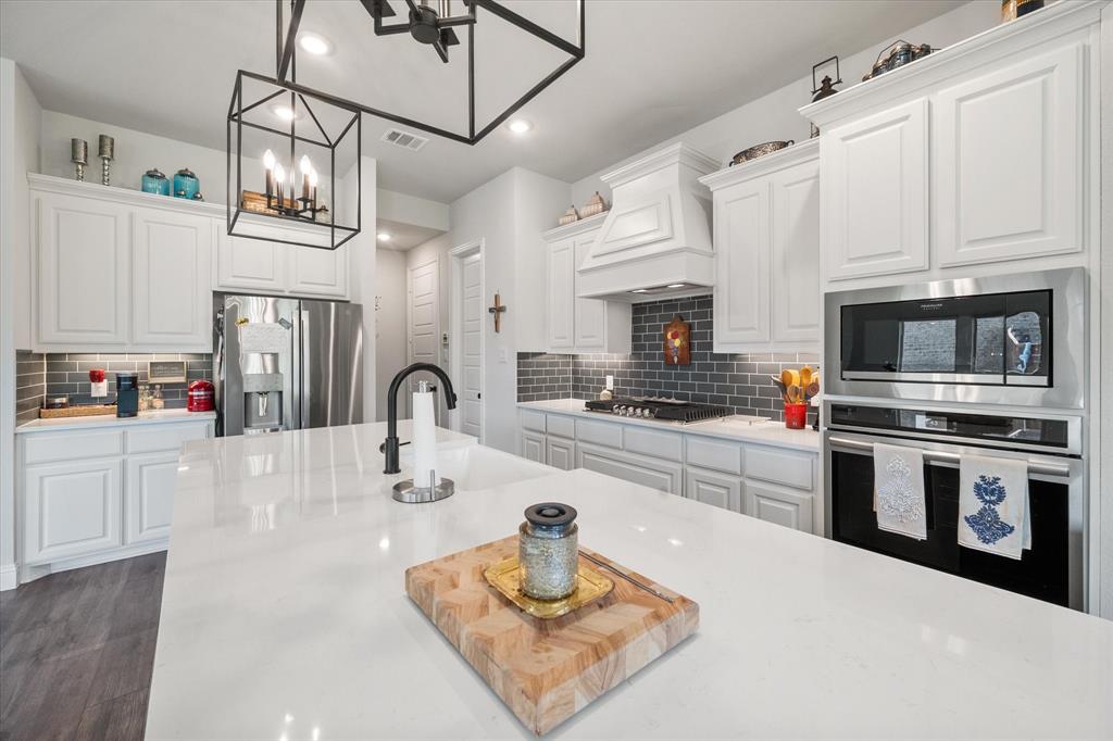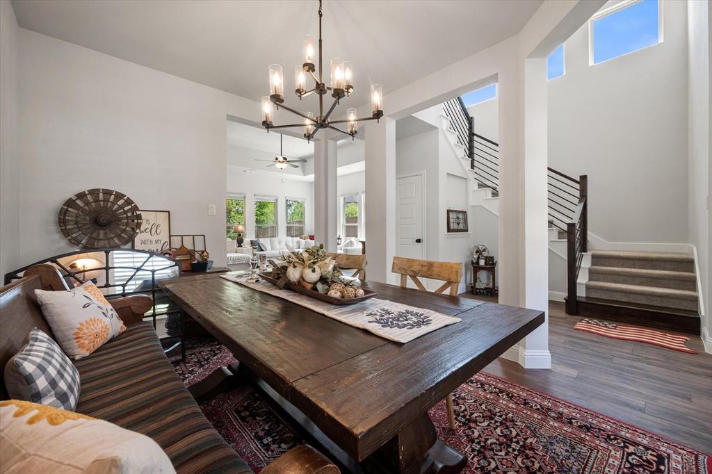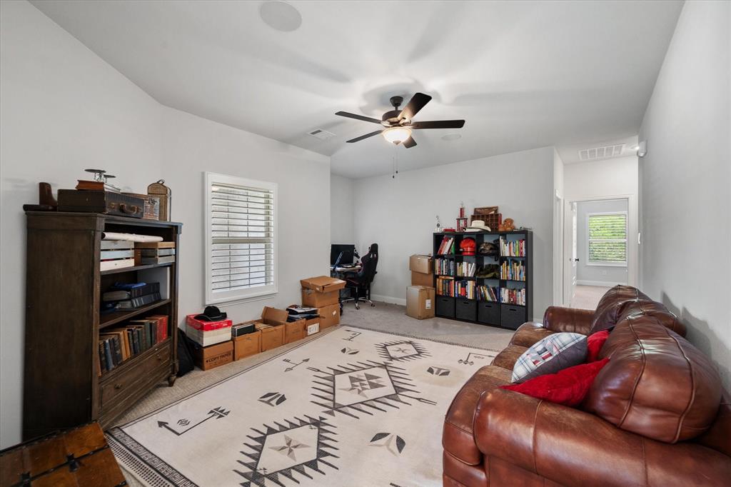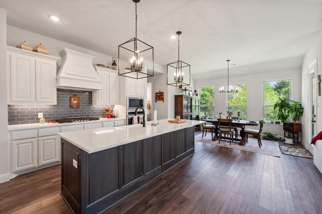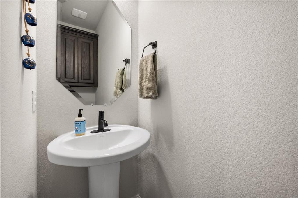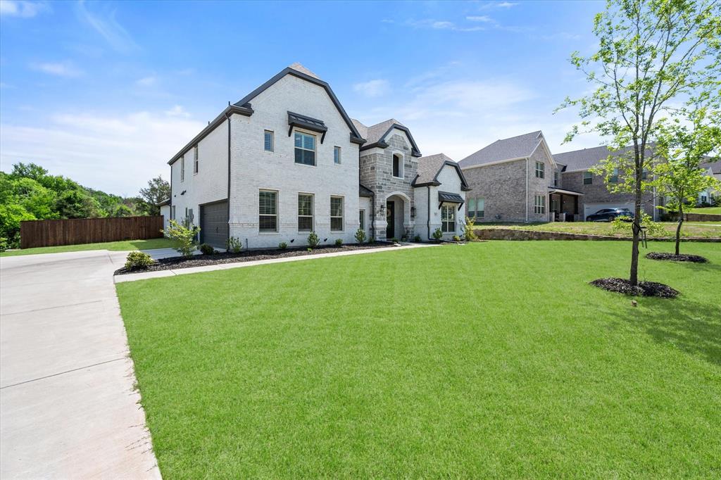 This stunning two-story home in Sunnyvale offers 3000 sq ft of luxurious living space, perfect for a growing family. Featuring 4 spacious bedrooms, 3 full bathrooms, and 1 half bath, this home is designed for comfort and convenience. The heart of the home is the gorgeous kitchen, complete with a 5-burner gas cooktop, large island, farmhouse sink, and charming decorative lighting. The open-concept layout seamlessly flows into the living room with a cozy fireplace, making it ideal for both everyday living and entertaining. A formal dining area adds an elegant touch to the space. The primary ensuite is a true retreat, with a garden tub, separate shower, dual sinks, and a large walk-in closet. A study off the front entry provides a quiet space for work or relaxation, an additional office space can be found just off the primary bedroom. Upstairs, you'll find a spacious game room, perfect for family fun or movie nights.Three additional bedrooms each with ensuite bathrooms, two bedrooms feature a jack-and-jill bath. The home boasts large bedrooms, tall ceilings, and ample natural light throughout. Additional conveniences include a laundry room with a sink for added functionality. Situated in a serene subdivision, this home backs up to green space and is located on a quiet cul-de-sac, offering both privacy and tranquility. Enjoy outdoor living with covered porches and patio, a fenced backyard, as well as access to a subdivision walking trail. This home has it all—style, space, and functionality for a growing family! This home is a must-see!
