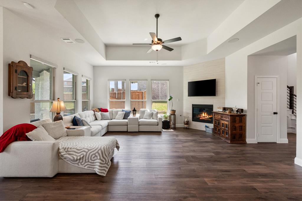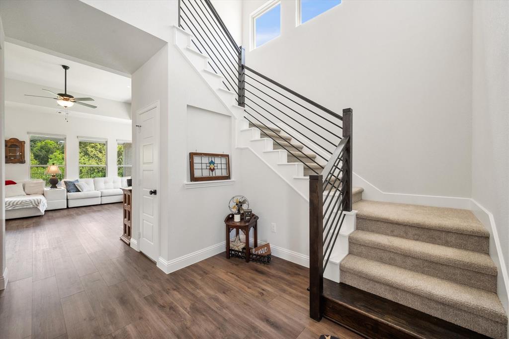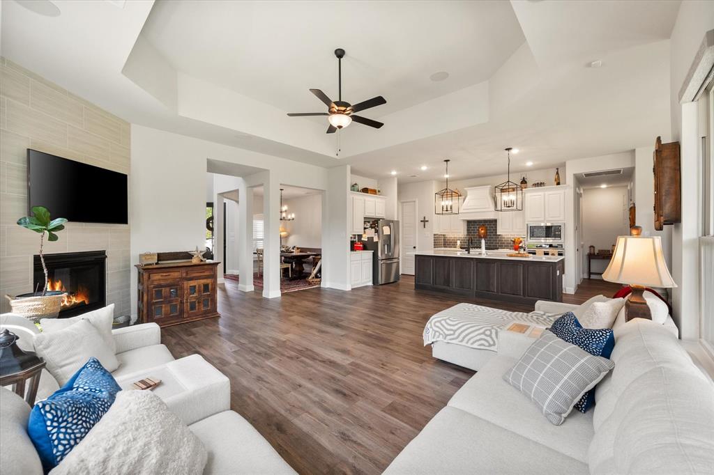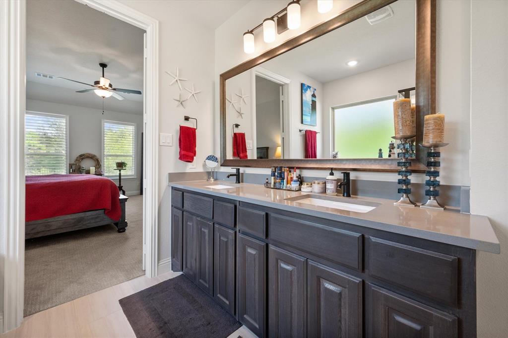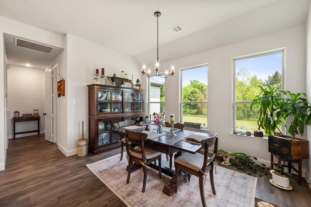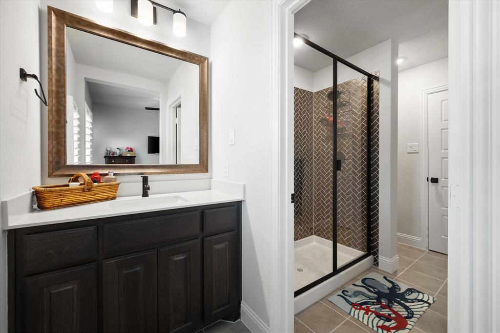 This stunning two-story home in Sunnyvale offers 3000 sq ft of luxurious living space, perfect for a growing family. Featuring 4 spacious bedrooms, 3 full bathrooms, and 1 half bath, this home is designed for comfort and convenience. The heart of the home is the gorgeous kitchen, complete with a 5-burner gas cooktop, large island, farmhouse sink, and charming decorative lighting. The open-concept layout seamlessly flows into the living room with a cozy fireplace, making it ideal for both everyday living and entertaining. A formal dining area adds an elegant touch to the space. The primary ensuite is a true retreat, with a garden tub, separate shower, dual sinks, and a large walk-in closet. A study off the front entry provides a quiet space for work or relaxation, an additional office space can be found just off the primary bedroom. Upstairs, you'll find a spacious game room, perfect for family fun or movie nights.Three additional bedrooms each with ensuite bathrooms, two bedrooms feature a jack-and-jill bath. The home boasts large bedrooms, tall ceilings, and ample natural light throughout. Additional conveniences include a laundry room with a sink for added functionality. Situated in a serene subdivision, this home backs up to green space and is located on a quiet cul-de-sac, offering both privacy and tranquility. Enjoy outdoor living with covered porches and patio, a fenced backyard, as well as access to a subdivision walking trail. This home has it all—style, space, and functionality for a growing family! This home is a must-see!