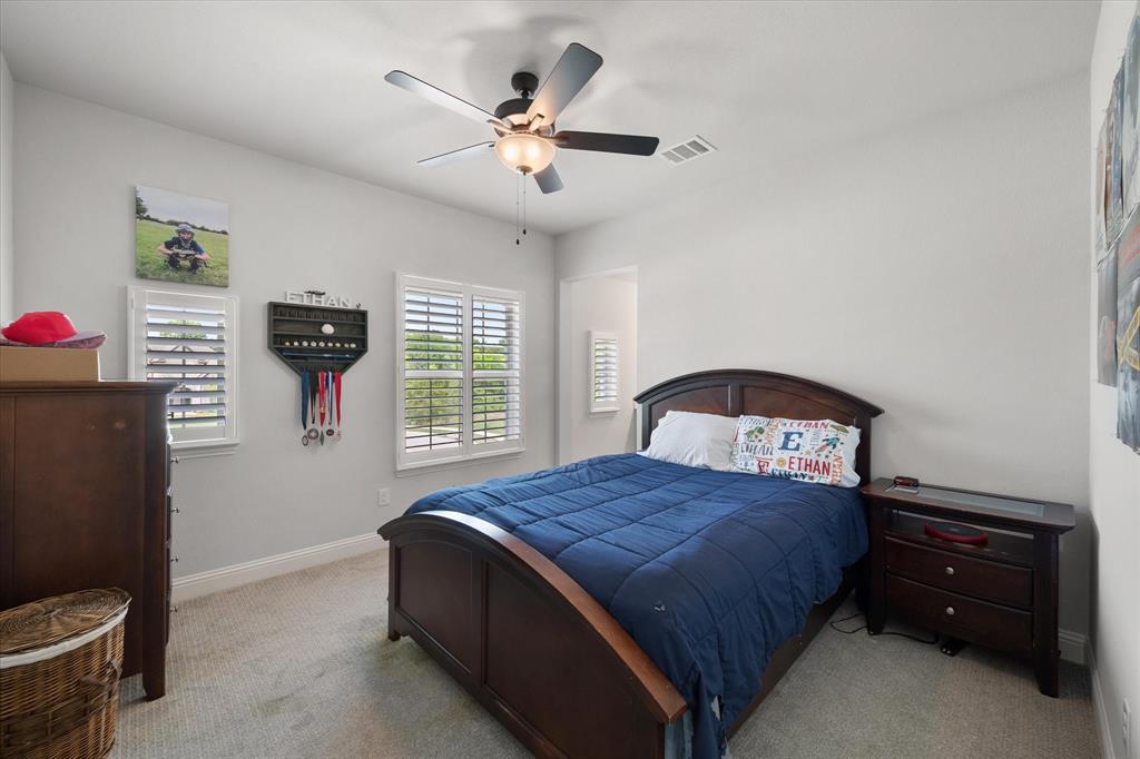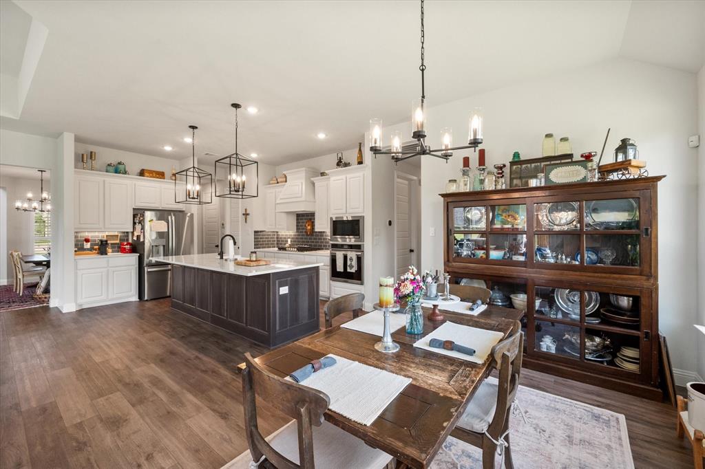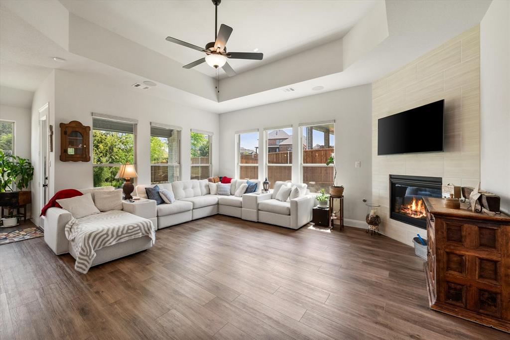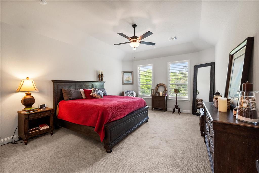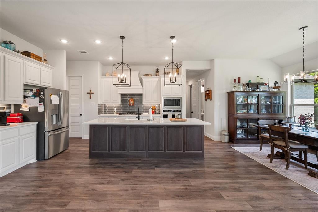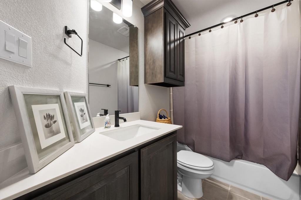 This stunning two-story home in Sunnyvale offers 3000 sq ft of luxurious living space, perfect for a growing family. Featuring 4 spacious bedrooms, 3 full bathrooms, and 1 half bath, this home is designed for comfort and convenience. The heart of the home is the gorgeous kitchen, complete with a 5-burner gas cooktop, large island, farmhouse sink, and charming decorative lighting. The open-concept layout seamlessly flows into the living room with a cozy fireplace, making it ideal for both everyday living and entertaining. A formal dining area adds an elegant touch to the space. The primary ensuite is a true retreat, with a garden tub, separate shower, dual sinks, and a large walk-in closet. A study off the front entry provides a quiet space for work or relaxation, an additional office space can be found just off the primary bedroom. Upstairs, you'll find a spacious game room, perfect for family fun or movie nights.Three additional bedrooms each with ensuite bathrooms, two bedrooms feature a jack-and-jill bath. The home boasts large bedrooms, tall ceilings, and ample natural light throughout. Additional conveniences include a laundry room with a sink for added functionality. Situated in a serene subdivision, this home backs up to green space and is located on a quiet cul-de-sac, offering both privacy and tranquility. Enjoy outdoor living with covered porches and patio, a fenced backyard, as well as access to a subdivision walking trail. This home has it all—style, space, and functionality for a growing family! This home is a must-see!