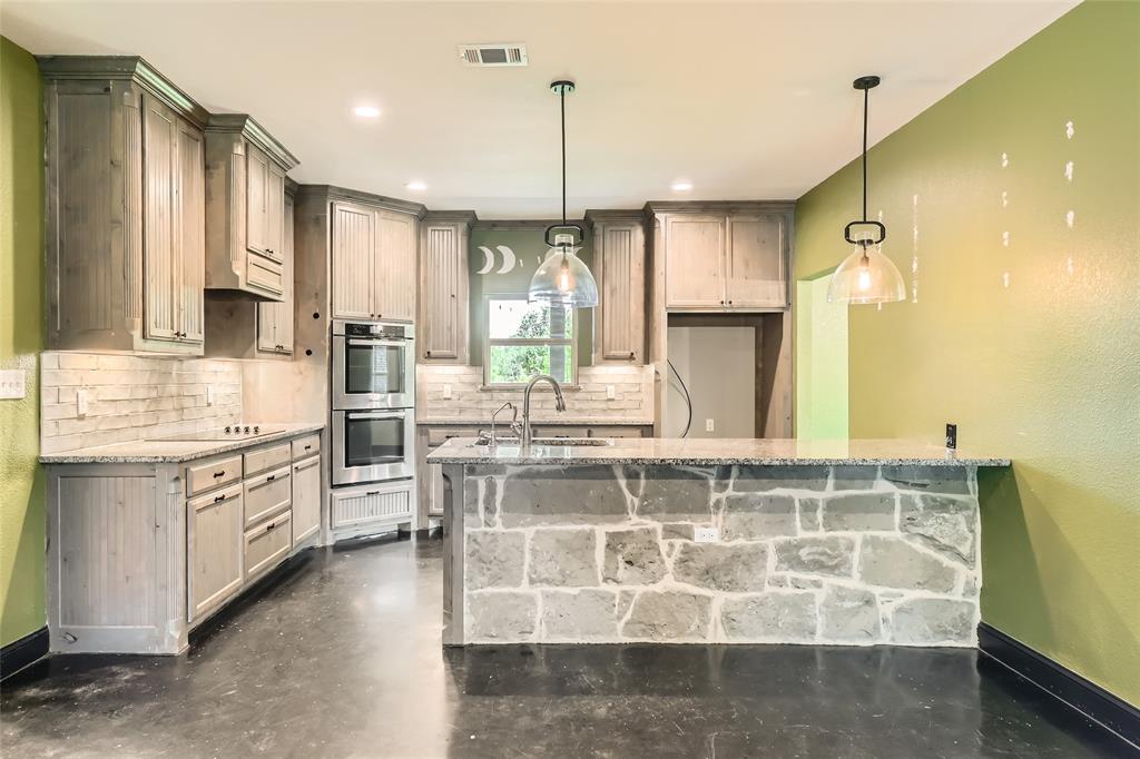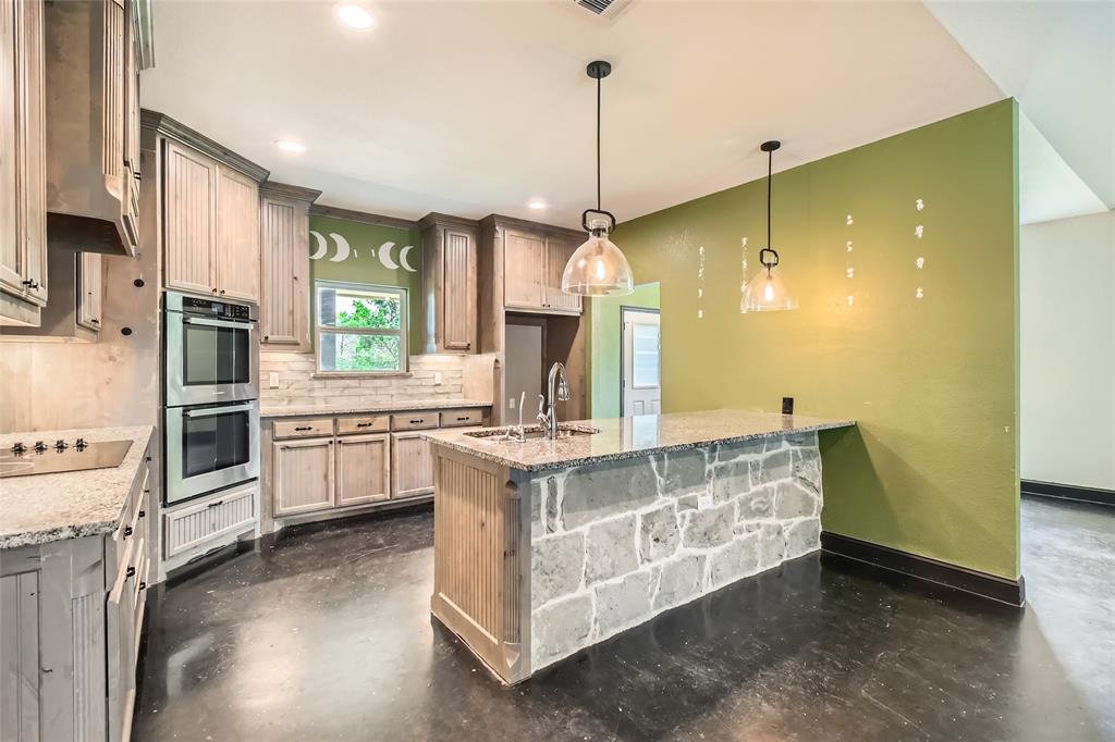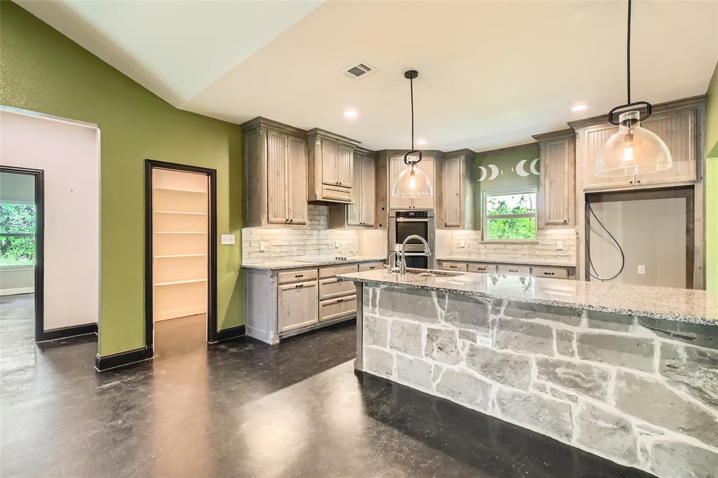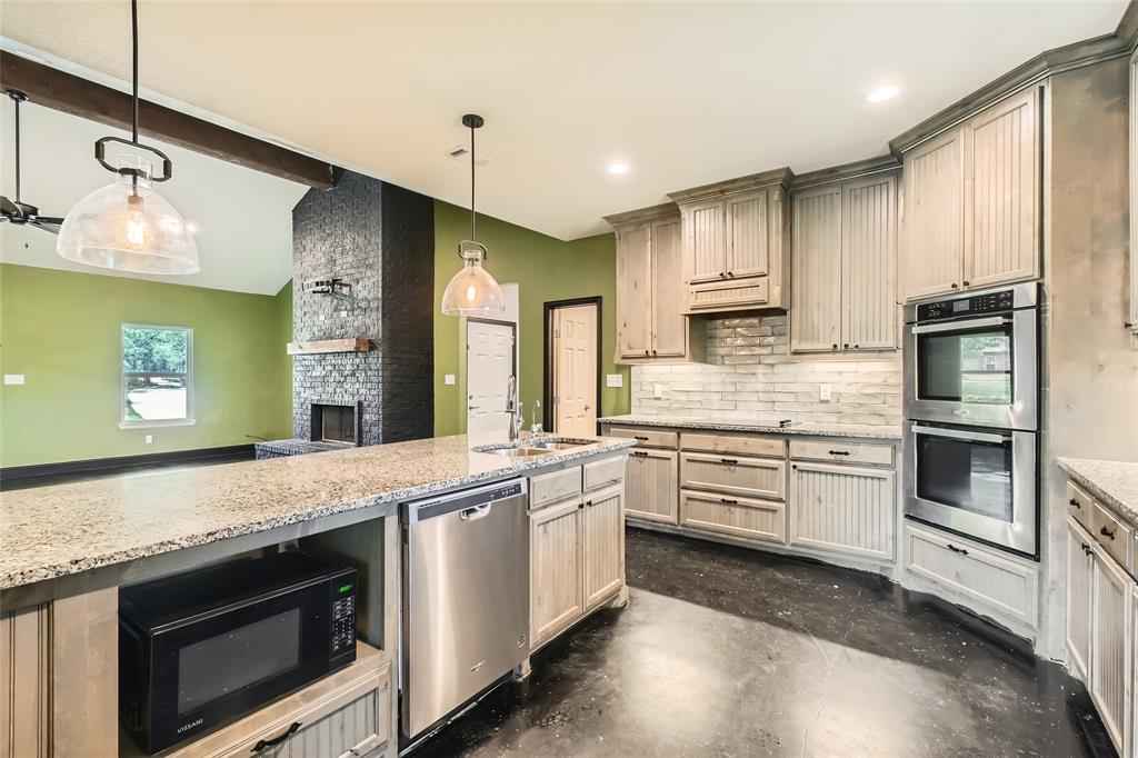Step into the expansive great room where a sleek, modern fireplace anchors the space and provides cozy ambiance with views that extend into the open dining areas. The heart of the home—an absolute showstopper—is the gourmet kitchen. A chef’s dream, it features double ovens, granite countertops, an abundance of cabinetry for storage, and a walk-in pantry to keep everything organized and accessible.