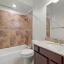 This spacious Navarro Model is waiting for you! The large great room invites you with custom built-ins, a tray ceiling, recessed lighting, crown molding, ceiling fan, while overlooking a greenbelt and peaceful east-facing covered patio. Plenty of room for entertaining, with a bonus room off the great room - perfect for an office, hobby room or gaming room - with space enough for a pool table. Kitchen Island has been refreshed with light paint. The chef's kitchen is appointed with a GE Profile 5-burner gas cooktop, GE Profile oven and microwave, stainless dishwasher, granite countertops, custom backsplash, solar tube, decorative lighting, a generous walk in pantry and a butler's pantry by the formal dining room. Enjoy the convenience of pull out shelves, a low profile cooktop vent and recycle drawer. Relax in your primary bedroom retreat, with ensuite bath featuring a ceiling fan, extra large curbless shower, soaking tub, dual vanities and large (14 x 8) walk in closet, with direct access to the laundry room. Your guests will feel welcome in the second bedroom with their own ensuite bathroom, which has been refreshed with new paint in both the bedroom and bath. The laundry room is appointed with generous cabinetry for storage, a sink, and potential space for a second fridge. Decorator touches include custom tile work, plantation shutters, decorative lighting and entertainment cabinetry great room. Special attention to detail with radiant barrier in the attic, irrigation around the foundation, refreshing ceiling fans and a gas bbq grill stub at the 25 x 11 back patio. The roof was replaced in 2020 and the home's exterior was painted in 2023. Robson Ranch is a 55+ Active Adult Community with Golf, Tennis, Two Swimming Pools, a Fitness Center & much more. It's time to start your next adventure! * All information is deemed reliable but is not guaranteed and should be independently verified *
