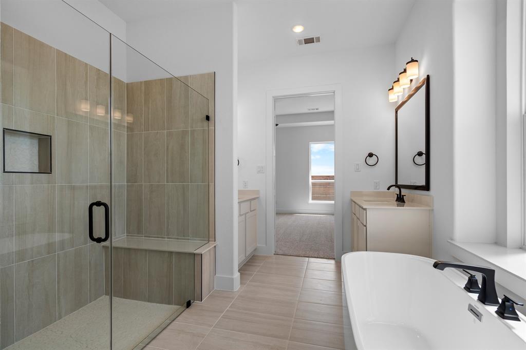 ~ AVAILABLE FOR MOVE IN NOW & $25,000 TOWARDS BUYER'S CLOSING COSTS ~ Welcome to The Clement Floor Plan, built by St. Vincent Homes in the wonderful resort-style community of Solterra in Mesquite, TX. Enter through the stunning front door and enjoy the open floor plan concept, 10 foot ceilings, all with an abundance of natural light. The chef's kitchen features gas appliances, ample storage, walk-in pantry, plus quartz countertops enhanced by elegant tile backsplash. The primary suite offers a peaceful retreat, complete with a large walk-in closet, a garden tub, separate shower, and dual sinks. Enjoy luxurious living with a large dining space, a separate utility room, mud room, a beautiful sliding glass door in the living room, and an office. Head upstairs and discover an oversized game room plus 3 additional bedrooms and a bathroom. The community of Solterra Texas offers unparalleled amenities: the Headquarters Amenity Center for gatherings, the custom Lookout Tree House Park by Animal Planets Treehouse Masters, three swimming pools with a sand beach, a 25-acre stocked fishing lake for kayaking and fishing, 15 miles of scenic bike and hiking trails, a state-of-the-art fitness facility, pickleball courts, innovative dog parks for furry friends, and a grand event ballroom with floor-to-ceiling windows! Located in the highly regarded Mesquite ISD, this home offers the perfect blend of luxury, comfort, and an active lifestyle for the whole family!