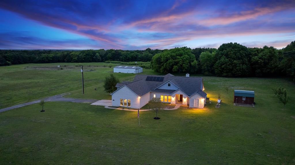 An enchanting 15-Acres with stunning panoramic views of Natural Pastures, Woodlands, Nature, and Daily Retreat. This Custom-Built Country Home features Large Windows that provide abundant Natural Light, Spacious Gourmet Kitchen, Granite Counters, Deep Sinks, Stainless Steel Appliances, Large Gas Range with Custom Stainless Vent-A-Hood, Heated Wood Floors Throughout, Master Bedroom with separate His & Hers Walk-In Closets, Separate Sinks, and Private Sunroom. A Fully Extended Covered Patio with Fan, Arbor & Ramps. The landscaped grounds contain 12+ Acres of Pastures, 2+ Acres of Woodlands, Deep Pond, Large Barn, Fully Paid Extended Solar Energy System, Rain Water Retrieval System for Gardening, and Bonus Walk-Up Loft above the Garage. This Texas Home is situated for privacy yet conveniently located minutes from Highway-121, Bonham & Lake Bonham, 45-Minutes to central Downtown McKinney, 25-Minutes to Lake Texoma and Durant, Oklahoma. Make this 15 Acres of Absolute Serenity your Permanent, Retirement, or Vacation Home. Schedule a showing today!