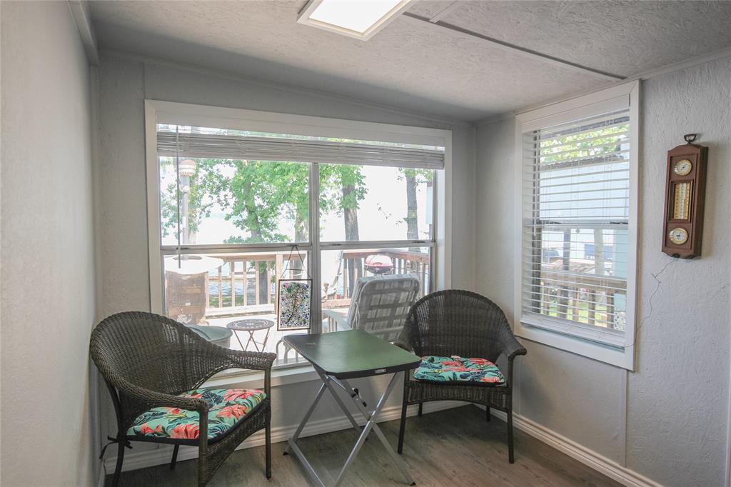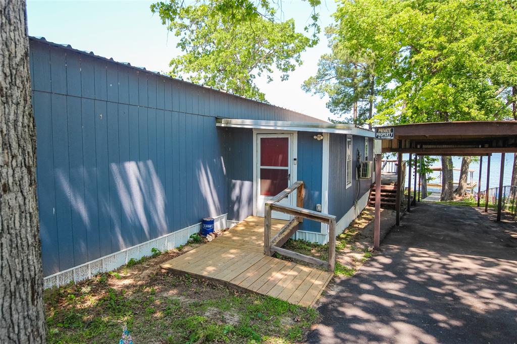 Escape to your own slice of lakeside paradise with this charming 2-bedroom, 1-bath manufactured home nestled on the peaceful shores of Lake Palestine. Located in the Westwood Beach subdivision, this property offers exclusive access to three private boat ramps, fishing, a community swimming pool, and a welcoming community center—everything you need for the perfect lake lifestyle. Step inside to a welcoming hallway that leads to a cozy sitting area bathed in natural light. The open-concept layout continues into a spacious living room that seamlessly flows into the kitchen, making entertaining a breeze. The kitchen features a breakfast bar, additional dining space, an electric range, over-the-range microwave, and gorgeous blue cabinetry that adds a pop of personality. Both bedrooms are generously sized with their own closets, and the nearby bathroom features a walk-in shower and laundry hookups—ideal for a stackable washer and dryer. Outside, enjoy sun-soaked afternoons on the back patio, or take a peaceful stroll down the walkway leading to the boathouse and lake. A 20x30 shed with AC provides the perfect space for a workshop, extra storage, or creative escape. Plus, a negotiable hot tub adds a touch of luxury. Whether you're looking for a relaxing vacation home, a retirement retreat, or a place to unplug from the hustle and bustle, this waterfront gem is ready to welcome you home. The property is move-in ready!