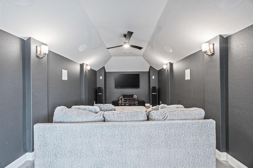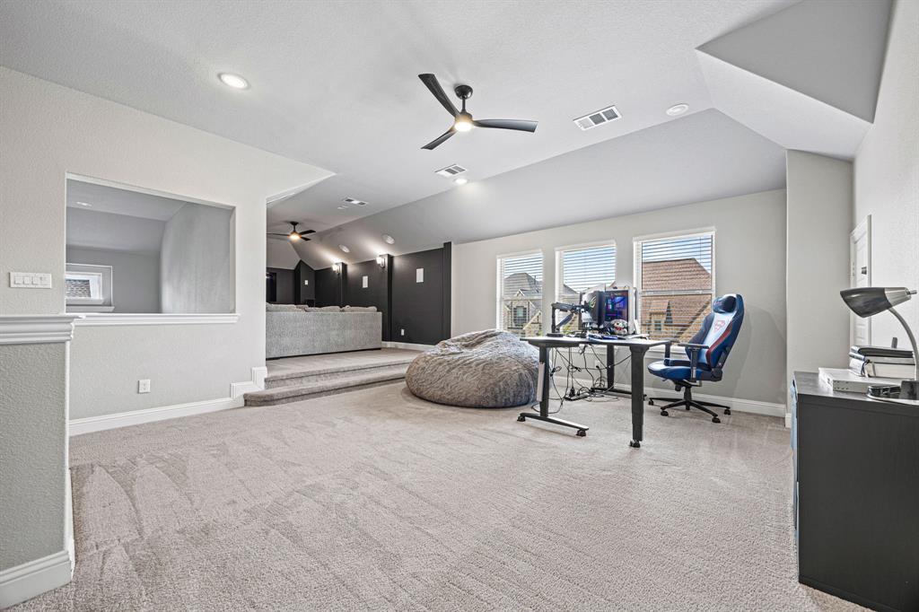 With 5 generously sized bedrooms and 4 full bathrooms, including a private primary suite with a spa-like bath, soaking tub, and expansive walk-in closet, there’s plenty of room for everyone. A dedicated office with French doors offers a quiet space to work or study, and the upstairs features both a game room and a media room, ideal for movie nights or game day gatherings. Secondary bedrooms are thoughtfully placed for added privacy and versatility.