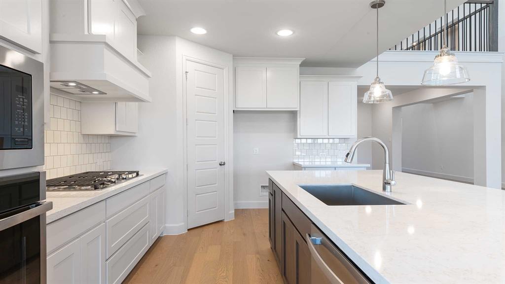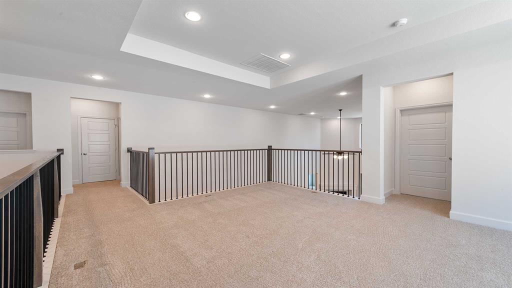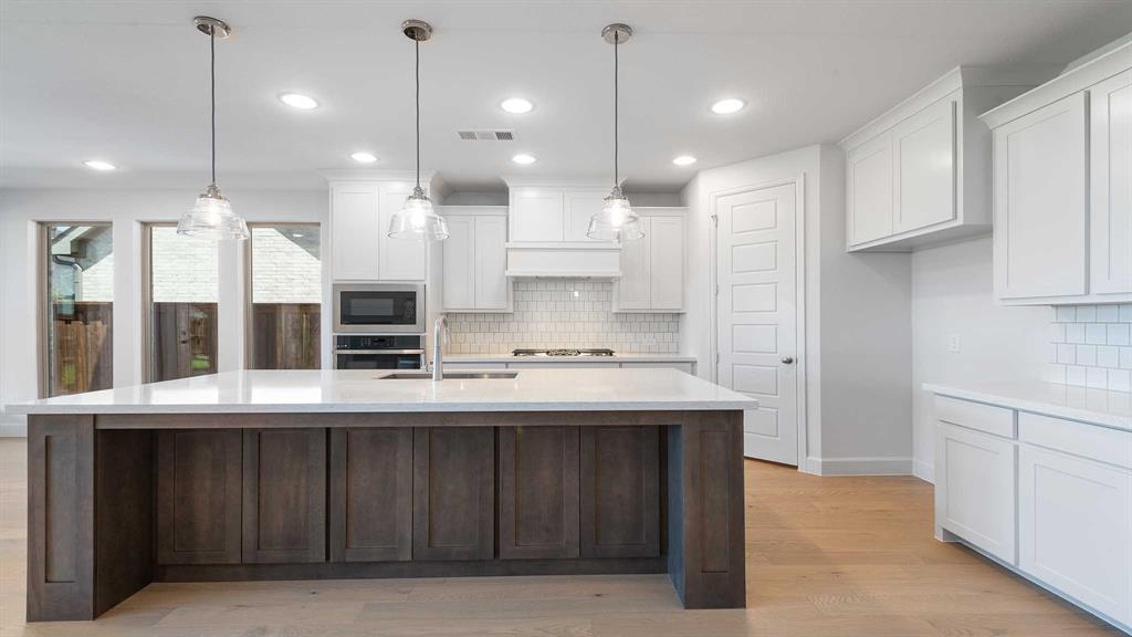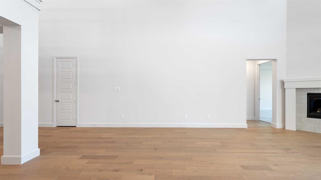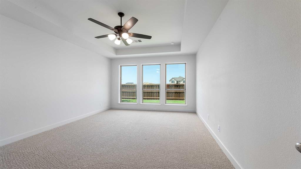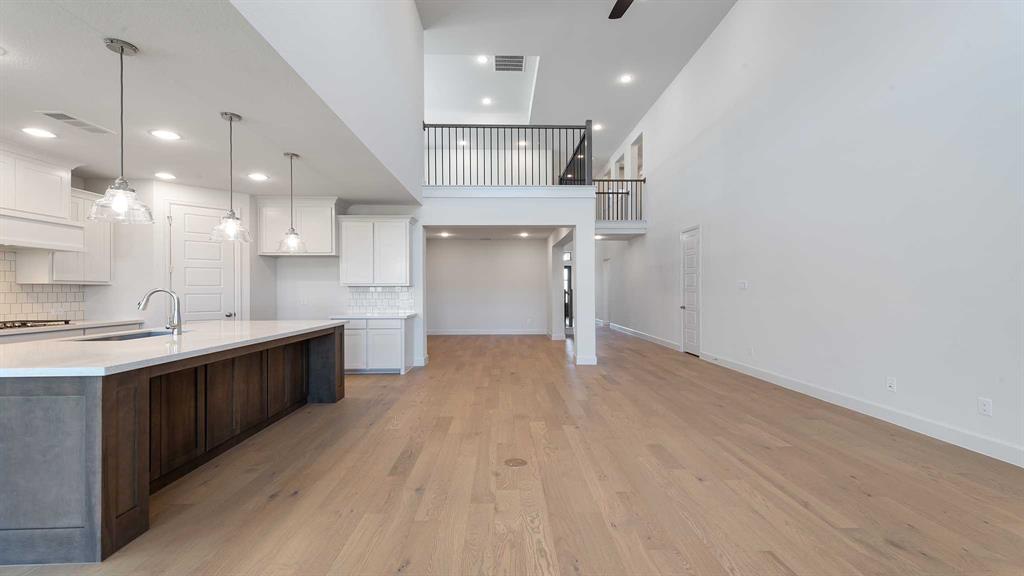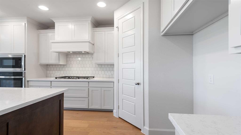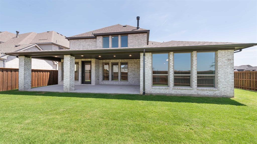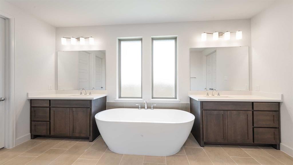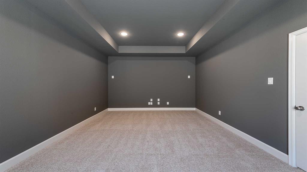 Home office with double doors frame the entry. Hardwood floors throughout living areas. The two-story entry extends past the dining room to the kitchen and family room. Island kitchen offers built-in seating space, 5-burner gas cooktop and a corner walk-in pantry. Formal dining room. Two-story family room with 19-foot ceiling, wood mantel fireplace and a wall of windows. Morning area just off the kitchen offers a beautiful view of the backyard. Primary suite with three large windows. Primary bathroom features a French door entry, dual vanities, freestanding tub, separate glass enclosed shower and two walk-in closets. Guest suite with a full bathroom and a walk-in closet on first level. Second floor hosts a large game room, theatre room, an additional guest suite and secondary bedrooms with a Hollywood bathroom. Additional storage space, half bathroom, linen closet and a utility room completes this generous design. Extended covered backyard patio. Three-car garage.