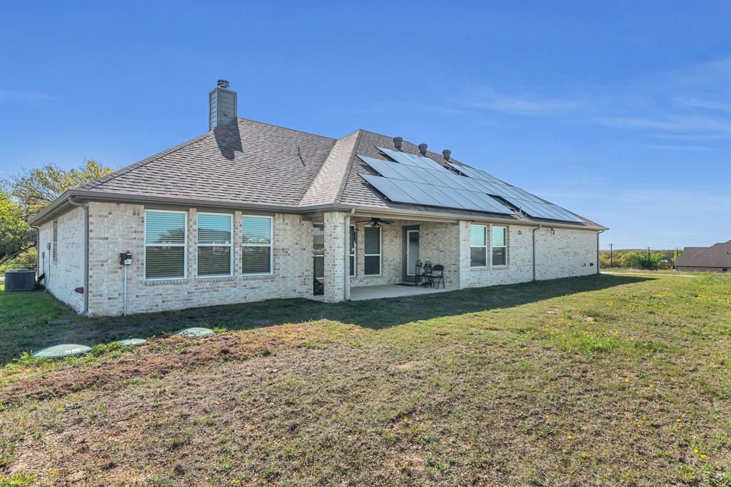 This exceptional property includes a state of the art solar energy system, which will be paid off by the seller at closing and conveys a 25 year transferrable warranty. Experience the ease of virtually no electric bill while enjoying the benefits of clean, renewable energy. A refined, eco-conscious feature that enhances both value and lifestyle. Welcome to this stunning, move in ready home built in 2022 by Kenmark Homes, offering modern comfort, quality craftmanship, and timeless design. Nestled on a spacious 1 acre lot, this property features 4 bedrooms, 3 full bathrooms, and a 3 car garage, providing ample room for family living and entertaining. Step inside to find beautiful hardwood floors in the entry, living area and halls; creating a warm and inviting atmosphere. The open concept floor plan flows effortlessly into a gourmet kitchen equipped with premium appliances, a large breakfast bar, granite countertops, custom cabinetry and plenty of storage; ideal for both everyday cooking and hosting gatherings. The primary suite offers a peaceful retreat with a spacious layout, walk in closet, and a luxurious ensuite bath featuring dual vanities, a soaking tub and a walk in shower. The additional bedrooms are generously sized with great closet space and access to well appointed full bathrooms. Enjoy the tranquility of country style living with the convenience of a modern, energy efficient home. The expansive lot provides endless possibilities; room for a pool, garden or outdoor entertaining area. With a 3 car garage, there's no shortage of storage or space for hobbies, tools or toys. Located in a desirable area. Don't miss this incredible opportunity, schedule your private tour today. Free Electricty 110% residual.