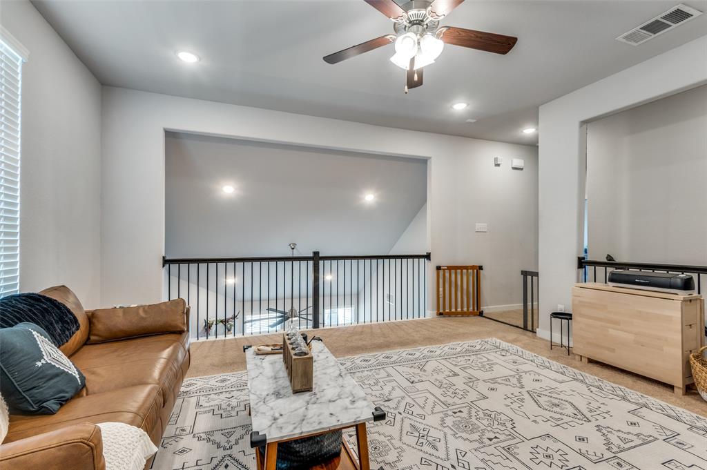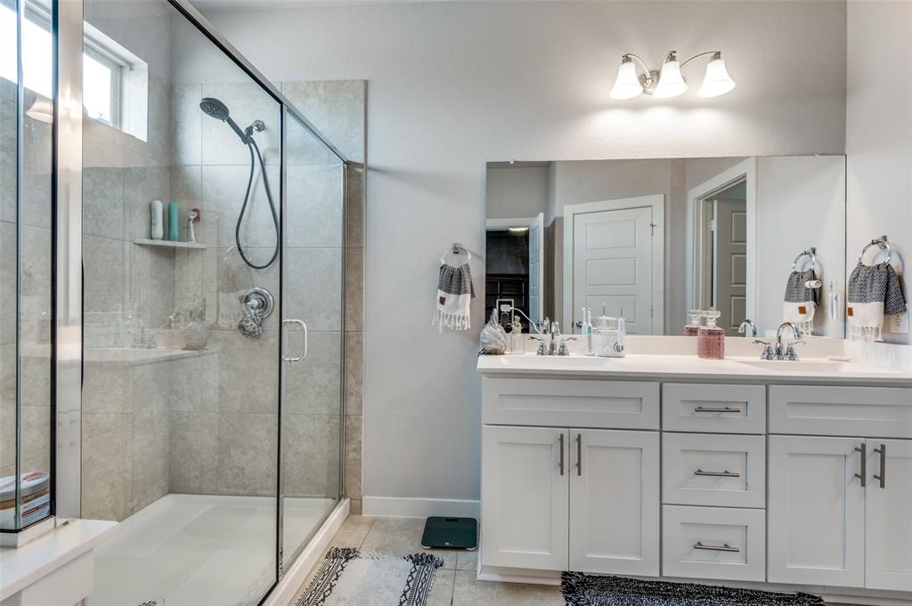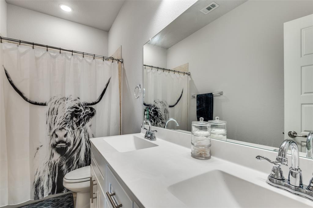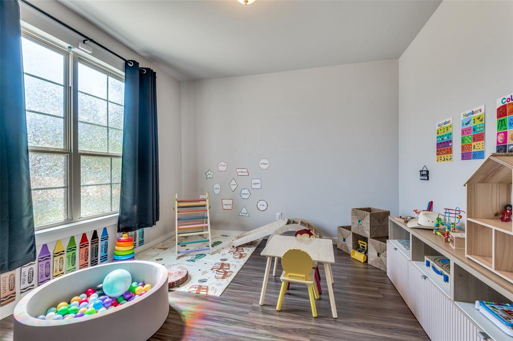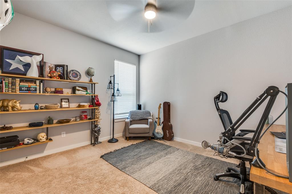 Main level includes a private home office, guest bedroom with full bath, and a generously sized primary suite with dual vanities and walk-in shower. The entryway includes a custom built-in mudroom bench for added convenience and storage. Upstairs offers a versatile game room and additional living space. Enjoy outdoor living year-round with a custom covered patio, built-in surround sound, gas firepit, artificial turf, and pool featuring a Catch-a-kid pool cover for safety. Garage includes built-in shelving, epoxy floors, and 240V access for an EV charger. Prime location with easy access to I-20 and just minutes from Haltom High School.
