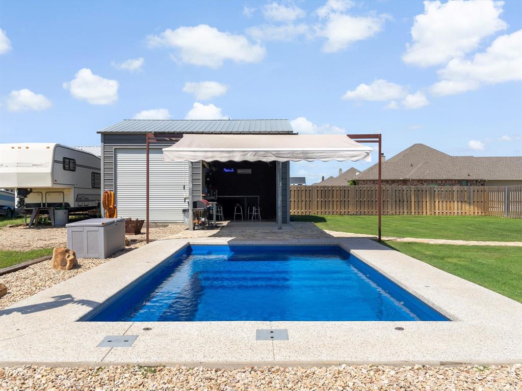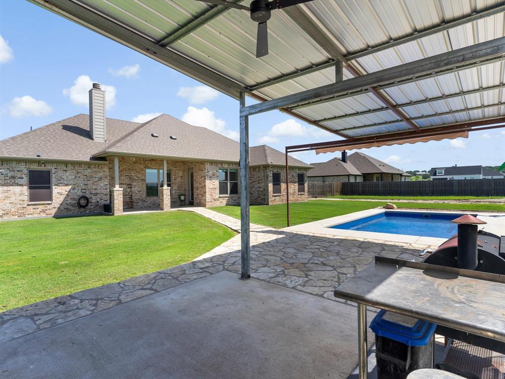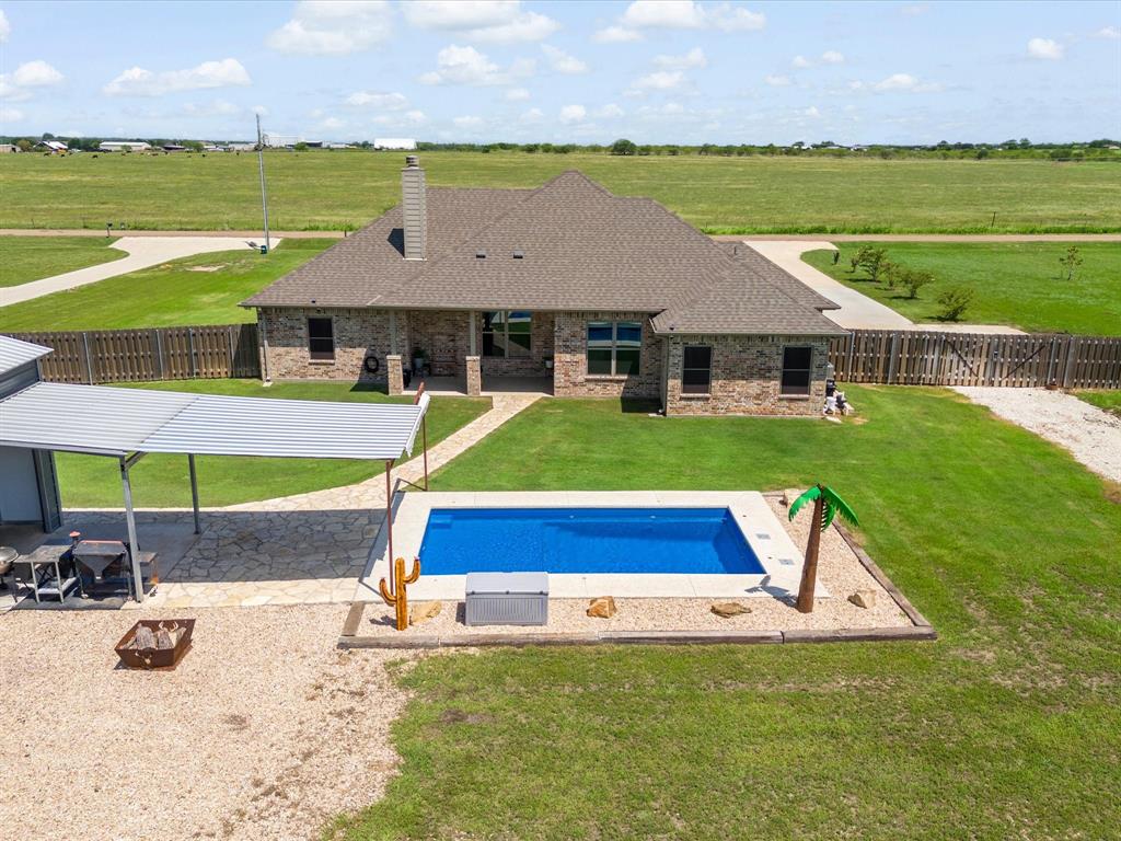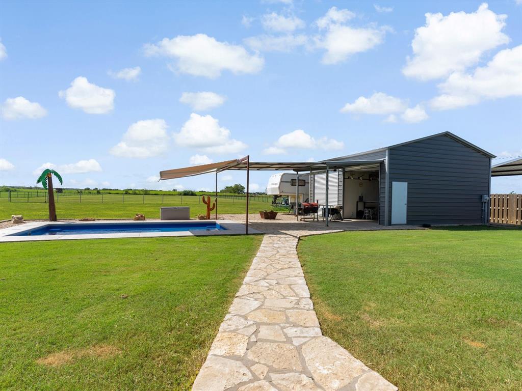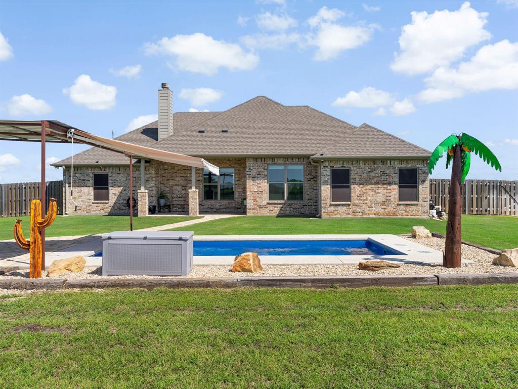 *OPEN HOUSE SATURDAY JULY 26TH FROM 1 - 3 PM* This amazing custom home on over 2 acres has so much to offer... a pool, workshop, man cave, covered pavilion, and cross fenced pasture for animals! Experience the tranquility of country living just minutes to the city. As you pull up to the home, you will be impressed with the brick and stone exterior, custom landscaping and plenty of parking for vehicles. Entering inside, you will find an open floor plan with gourmet kitchen overlooking the spacious living area. This kitchen is perfect for entertaining, offering a large island with bar seating, leathered granite countertops, deep one bowl sink, stainless steel appliances and an abundance of cabinetry. Beautiful living area features a wood burning stone fireplace with a view to the backyard. The oversized primary suite is a true sanctuary and offers a luxurious bath with dual sinks, granite countertops, garden tub, separate shower, and nicely sized walk-in closet with direct access leading to the laundry room. The secondary bedrooms are split for privacy and have access to a full bathroom. This home has all the outdoor goodies... a covered patio, pool with roll out awning for shade, workshop that has both a storage area and a separate lounge with mini-split AC system. The main backyard is fenced for smaller animals and cross fenced with plenty of land for future livestock. This is such a great property... come and see it today! Seller believes square footage to be 1,980 not including the man cave.