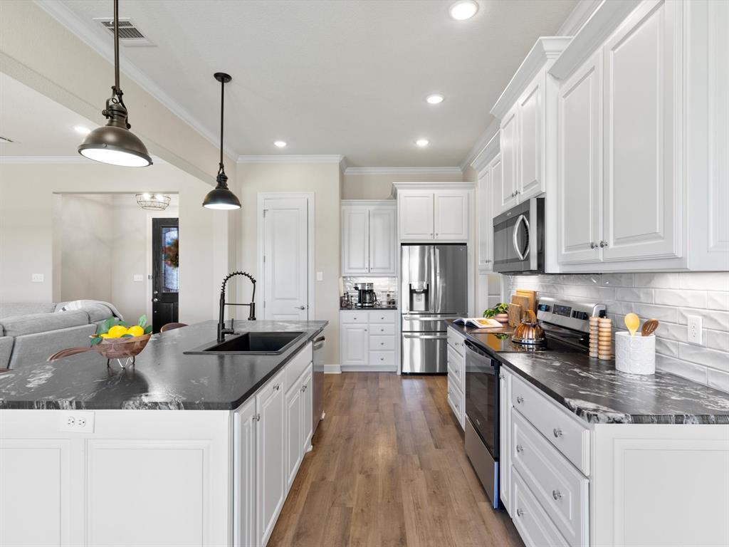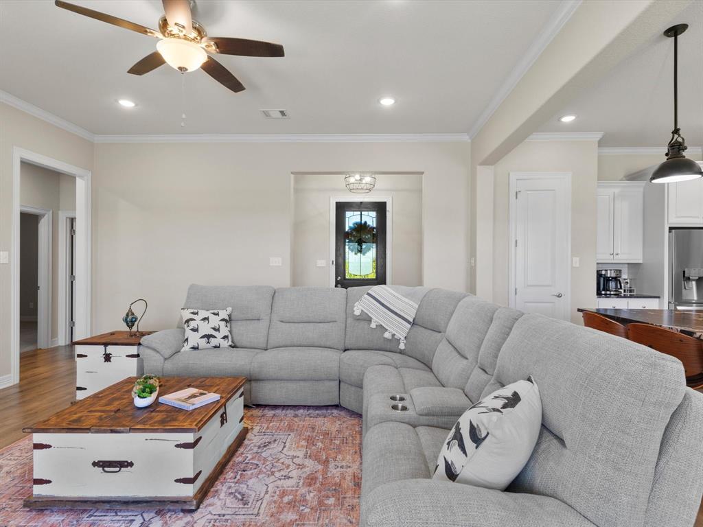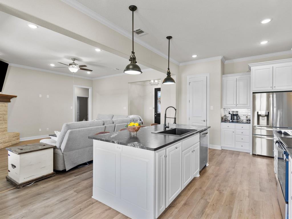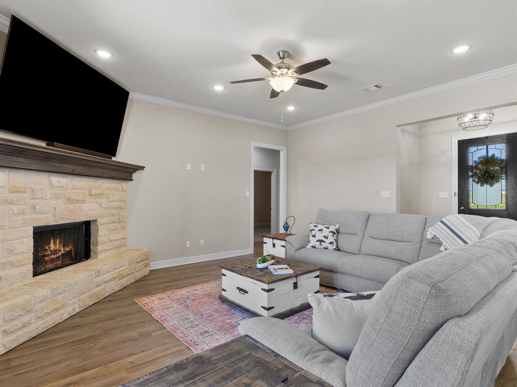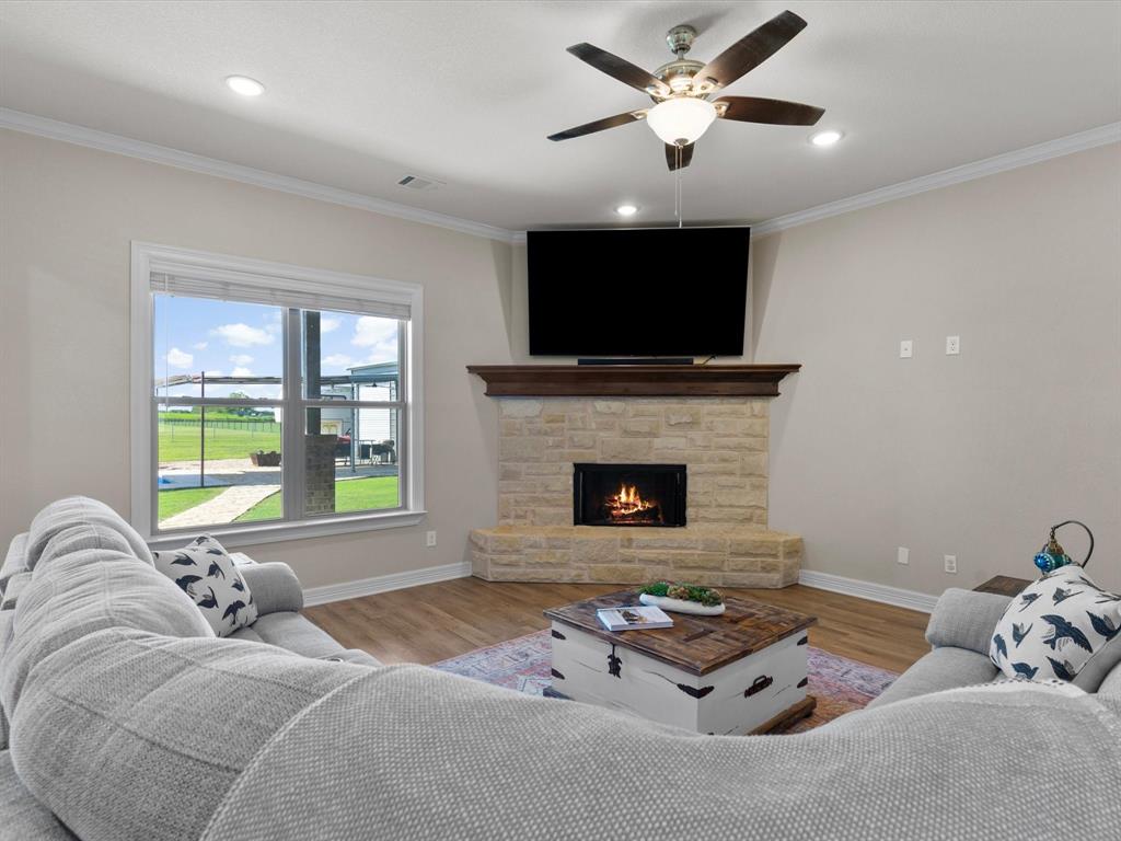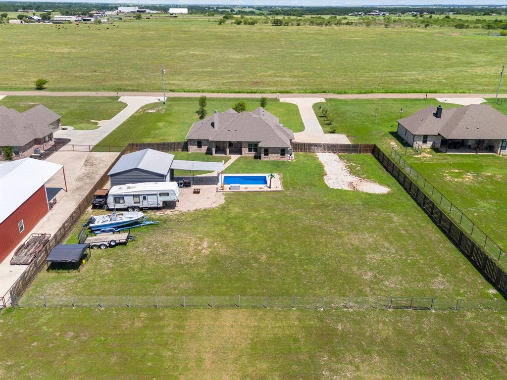 *OPEN HOUSE SATURDAY JULY 26TH FROM 1 - 3 PM* This amazing custom home on over 2 acres has so much to offer... a pool, workshop, man cave, covered pavilion, and cross fenced pasture for animals! Experience the tranquility of country living just minutes to the city. As you pull up to the home, you will be impressed with the brick and stone exterior, custom landscaping and plenty of parking for vehicles. Entering inside, you will find an open floor plan with gourmet kitchen overlooking the spacious living area. This kitchen is perfect for entertaining, offering a large island with bar seating, leathered granite countertops, deep one bowl sink, stainless steel appliances and an abundance of cabinetry. Beautiful living area features a wood burning stone fireplace with a view to the backyard. The oversized primary suite is a true sanctuary and offers a luxurious bath with dual sinks, granite countertops, garden tub, separate shower, and nicely sized walk-in closet with direct access leading to the laundry room. The secondary bedrooms are split for privacy and have access to a full bathroom. This home has all the outdoor goodies... a covered patio, pool with roll out awning for shade, workshop that has both a storage area and a separate lounge with mini-split AC system. The main backyard is fenced for smaller animals and cross fenced with plenty of land for future livestock. This is such a great property... come and see it today! Seller believes square footage to be 1,980 not including the man cave.