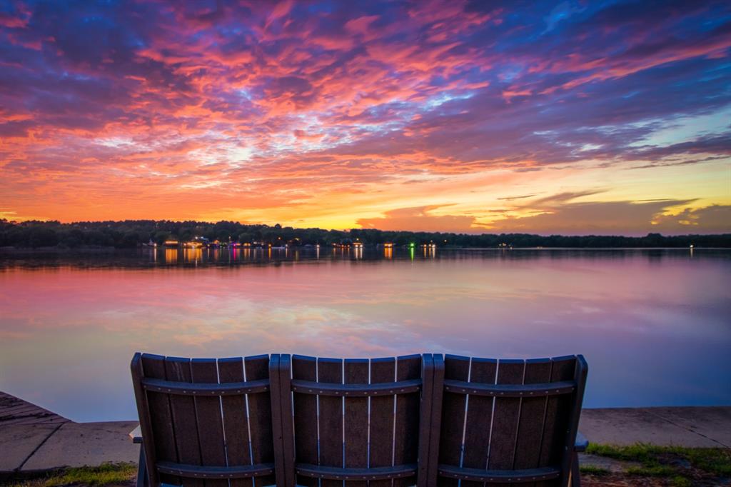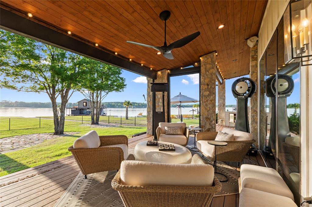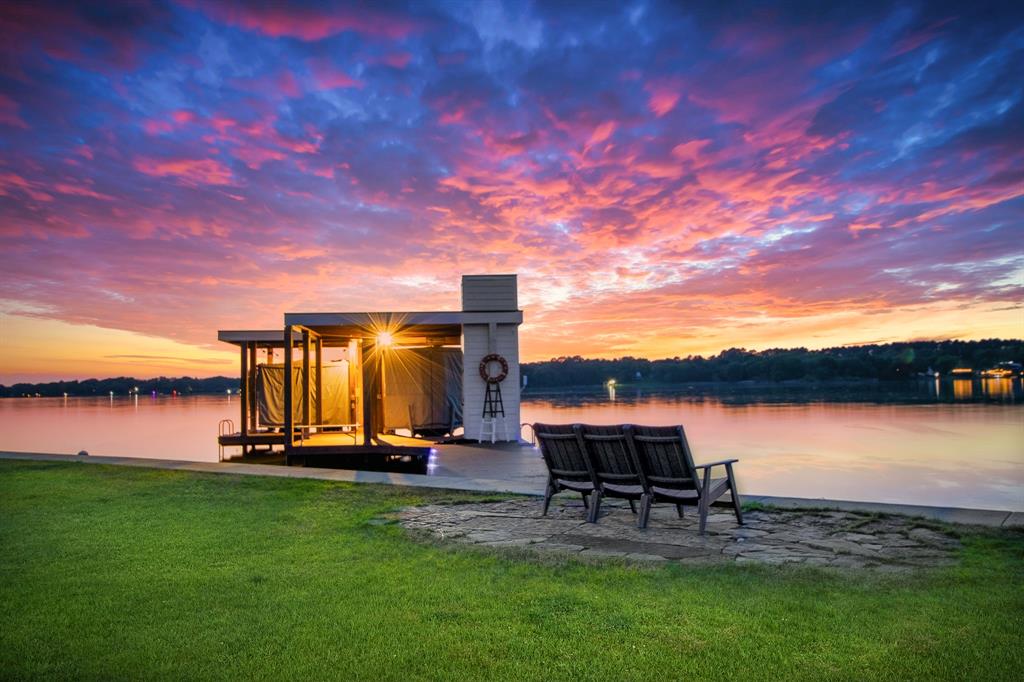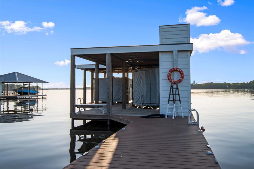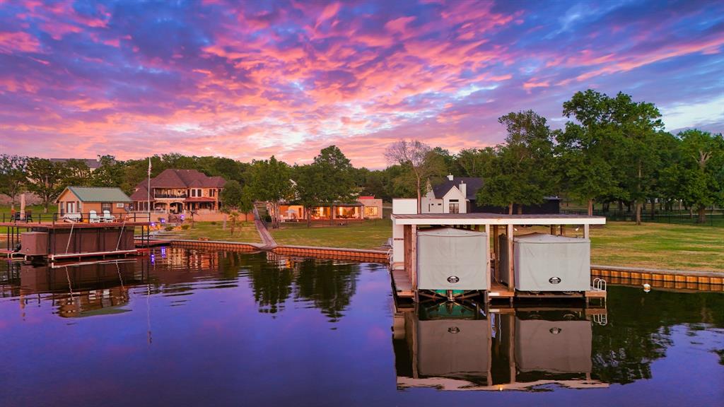 Welcome to your dream lakefront escape in The Bluffs, a prestigious gated community on Cedar Creek Lake. Situated on a beautifully landscaped ¾ acre lot, this modern retreat blends natural materials like stone, wood, and iron to create an inviting, luxurious atmosphere. Inside, the home is bathed in natural light thanks to soaring wood beamed ceilings and a dramatic wall of windows framing picturesque lake views. The chef’s kitchen is a true showstopper, featuring a professional Thermador propane gas range, island seating, farmhouse sink, built-in ice maker, and a striking glass door wine cellar, perfect for entertaining. Genuine hardwood floors flow throughout, leading to a first floor lakeside primary suite with wood beam ceilings and spa like ensuite bath offering dual vanities, a walk in shower, and a relaxing soaker tub. Three more additional guest bedrooms, two with built in bunk beds for added flexibility. Outdoor living is just as impressive, with multiple entertainment areas designed for true lake life. A large covered composite deck with automatic screens provides the ideal setting to enjoy the view, mosquito free. The wrought iron fenced yard is perfect for kids and pets, while the private boathouse includes automatic lifts and covers for both a boat and personal watercraft, making lake access effortless. Residents of The Bluffs enjoy a waterside clubhouse, community firepit, and picnic areas. Located in a prime spot on the lake once home to a waterski school, this area is beloved for its smooth waters, fishing, and recreational fun. Sold furnished with a few exclusions. Watercraft available separately. Additional boat slip in community marina available for $55,000.00.