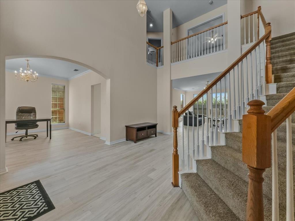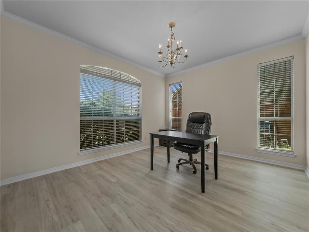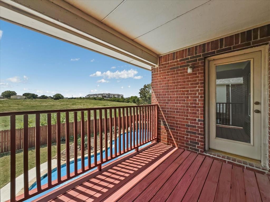 Nestled in the desirable Liberty Creek neighborhood just minutes from George Bush Turnpike, this beautiful two-story brick home offers 4 bedrooms, 2.5 baths, and 3,097 sq ft of well-designed living space. The spacious first-floor primary suite features a cozy fireplace, jetted tub, dual vanities, walk-in closet, and private access to the backyard. Upstairs, you'll find three additional bedrooms and a large game room with a walk-out balcony overlooking peaceful country views.