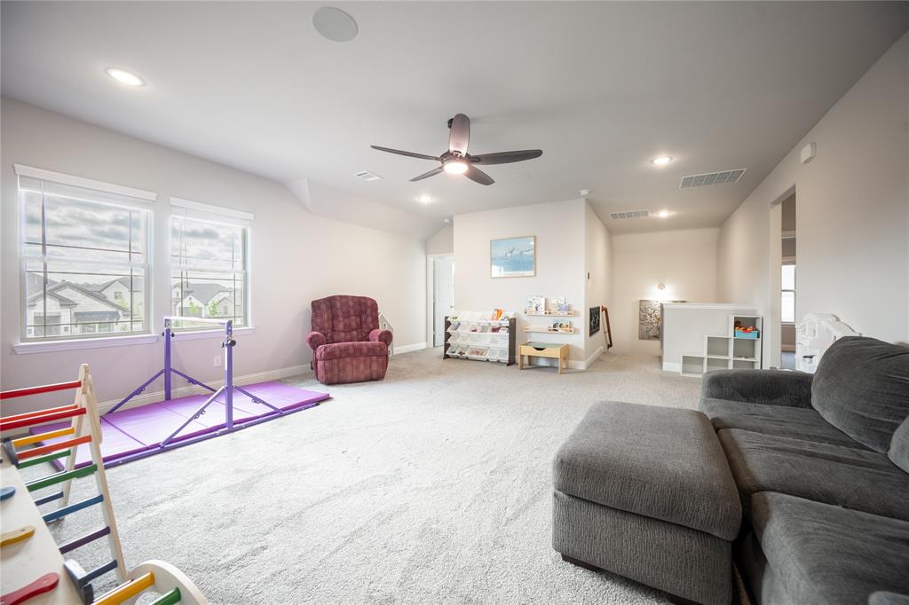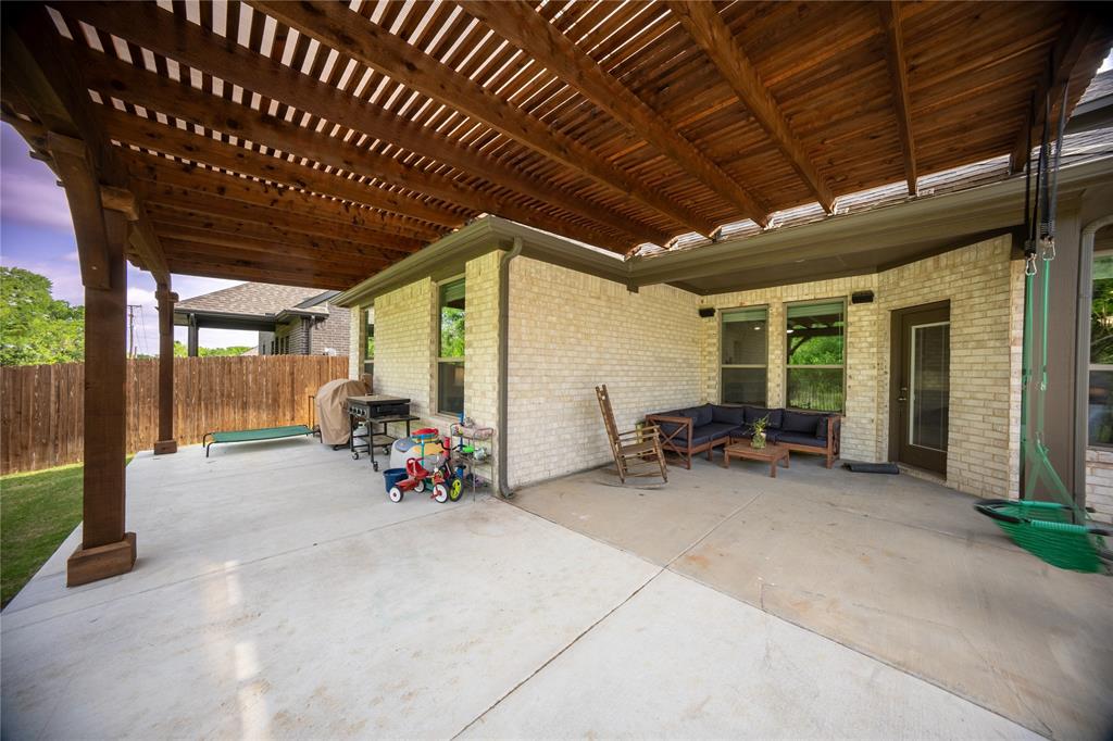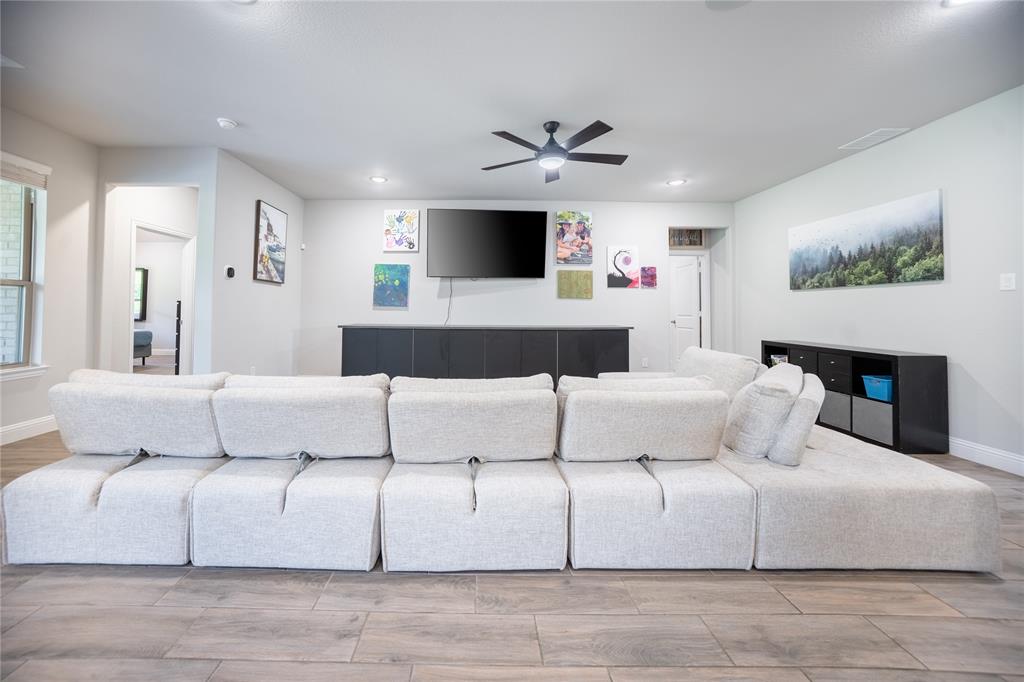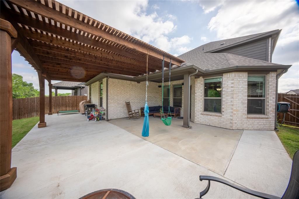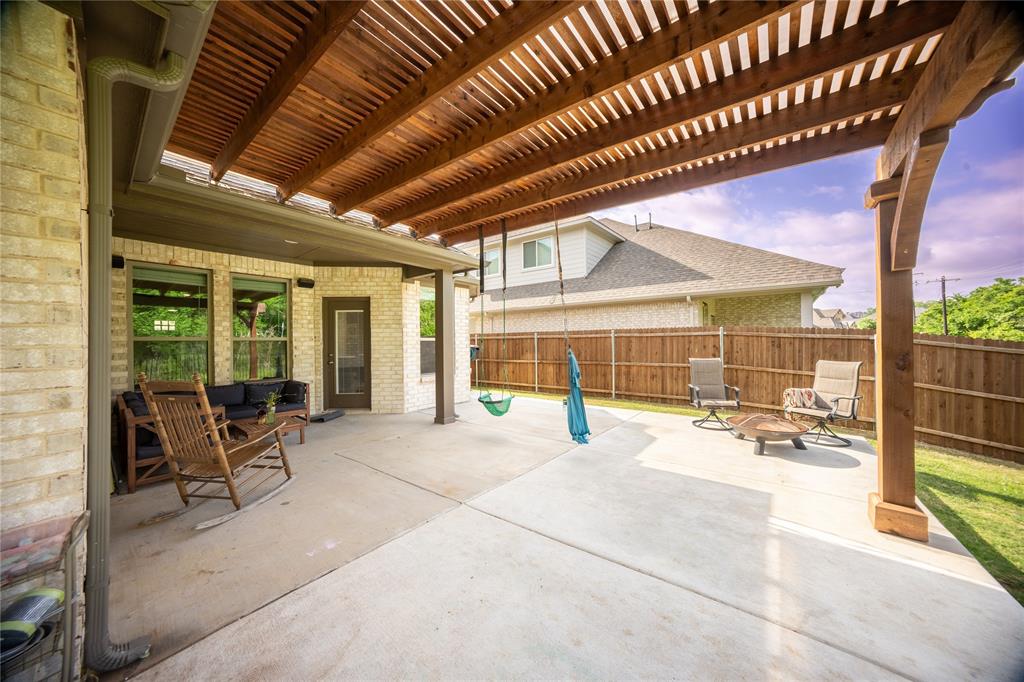 Don’t sweat today’s rates ~ This home is offering rate buy down assistance! Thoughtfully designed custom build backing up directly to a lush greenbelt, this home offers rare privacy and scenic backyard views—creating a peaceful retreat just moments from the heart of nature. The open-concept floor plan welcomes you with warm, wood-look tile flooring that combines modern elegance with low-maintenance living. Built-in surround sound speakers enhance the ambiance throughout the main living areas, game room, patio, and even the garage—perfect for both relaxing nights and lively entertaining. The chef-inspired kitchen is a true centerpiece, featuring stainless steel appliances, granite countertops, and abundant cabinetry, all designed with both style and functionality in mind. Recessed lighting and modern fixtures add a bright, contemporary touch throughout the home. Upstairs, a spacious game room offers versatile space ideal for a media setup, hobby area, or additional entertaining zone—customized to suit your lifestyle. The generous primary suite is a serene sanctuary, complete with a large walk-in closet and a spa-like ensuite featuring an oversized shower. The laundry room, conveniently connected to the primary closet, includes built-in cabinetry and hanging space for added practicality and organization. Step outside to your private backyard oasis. A spacious patio, framed by a charming pergola, creates the perfect setting for effortless outdoor living—whether you're hosting weekend gatherings, grilling with family, or simply enjoying a quiet moment in the shade with a good book. Perfectly positioned just moments from Bailey Lake Park’s scenic pond and walking trail, and near Chisenhall Park’s extensive hiking and biking paths, this home is a dream for nature lovers and active lifestyles alike. This pristine residence delivers the perfect blend of modern design, everyday comfort, and natural serenity.