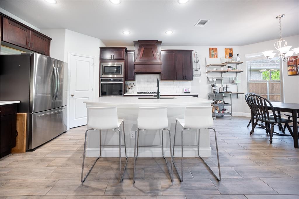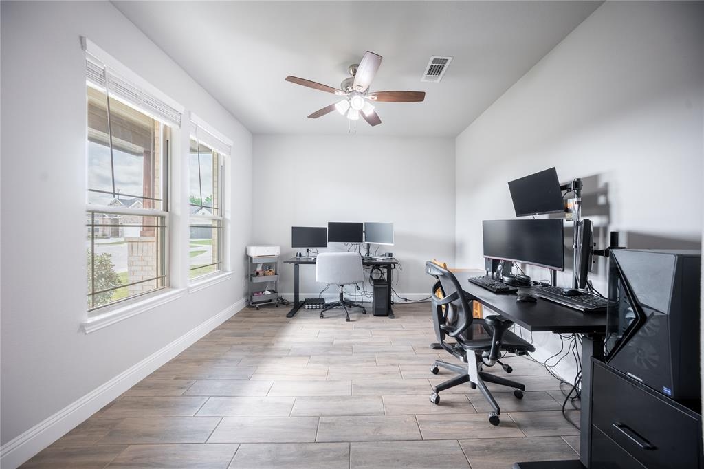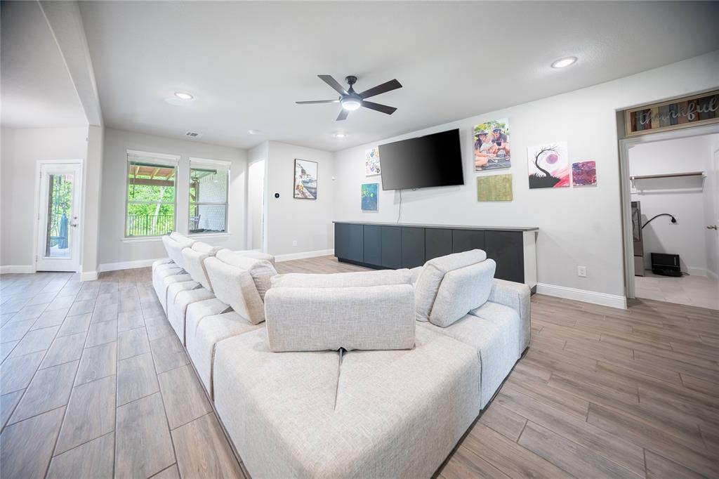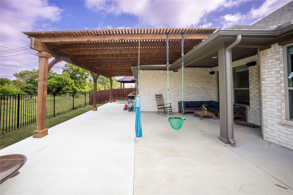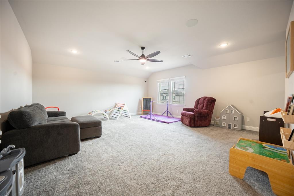 Don’t sweat today’s rates ~ This home is offering rate buy down assistance! Thoughtfully designed custom build backing up directly to a lush greenbelt, this home offers rare privacy and scenic backyard views—creating a peaceful retreat just moments from the heart of nature. The open-concept floor plan welcomes you with warm, wood-look tile flooring that combines modern elegance with low-maintenance living. Built-in surround sound speakers enhance the ambiance throughout the main living areas, game room, patio, and even the garage—perfect for both relaxing nights and lively entertaining. The chef-inspired kitchen is a true centerpiece, featuring stainless steel appliances, granite countertops, and abundant cabinetry, all designed with both style and functionality in mind. Recessed lighting and modern fixtures add a bright, contemporary touch throughout the home. Upstairs, a spacious game room offers versatile space ideal for a media setup, hobby area, or additional entertaining zone—customized to suit your lifestyle. The generous primary suite is a serene sanctuary, complete with a large walk-in closet and a spa-like ensuite featuring an oversized shower. The laundry room, conveniently connected to the primary closet, includes built-in cabinetry and hanging space for added practicality and organization. Step outside to your private backyard oasis. A spacious patio, framed by a charming pergola, creates the perfect setting for effortless outdoor living—whether you're hosting weekend gatherings, grilling with family, or simply enjoying a quiet moment in the shade with a good book. Perfectly positioned just moments from Bailey Lake Park’s scenic pond and walking trail, and near Chisenhall Park’s extensive hiking and biking paths, this home is a dream for nature lovers and active lifestyles alike. This pristine residence delivers the perfect blend of modern design, everyday comfort, and natural serenity.