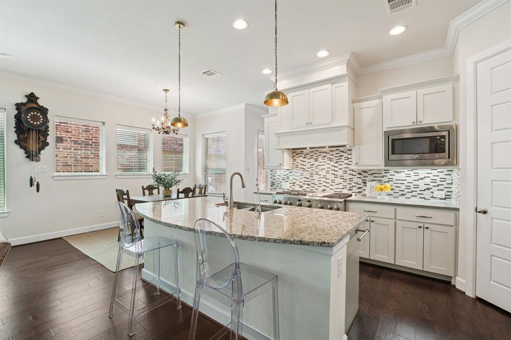 Nestled in a tranquil, gated Villas of Lake Highlands, this beautifully upgraded 4-bedroom, 3.5-bath home offers 2,602 sq ft of refined living. Minutes from White Rock Lake, scenic trails, and vibrant dining, it's zoned to top-rated Lake Highlands schools in Richardson ISD. An open-concept layout welcomes you with soaring ceilings, hardwood floors, and abundant natural light. The chef’s kitchen boasts granite counters, stainless steel appliances—including double convection ovens and a 6-burner gas cooktop—plus a designer backsplash, oversized pantry, and generous cabinetry. Ideal for entertaining, the kitchen flows seamlessly into the living and dining areas. The serene backyard offers covered and open patio spaces. Upstairs includes a second living area, bonus room or gym, and spacious guest suites. The primary retreat features a spa-inspired bath and custom walk-in closet. Community amenities include a resort-style pool, dog park, fire pit, and more. Meticulously maintained and move-in ready.