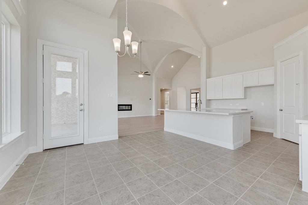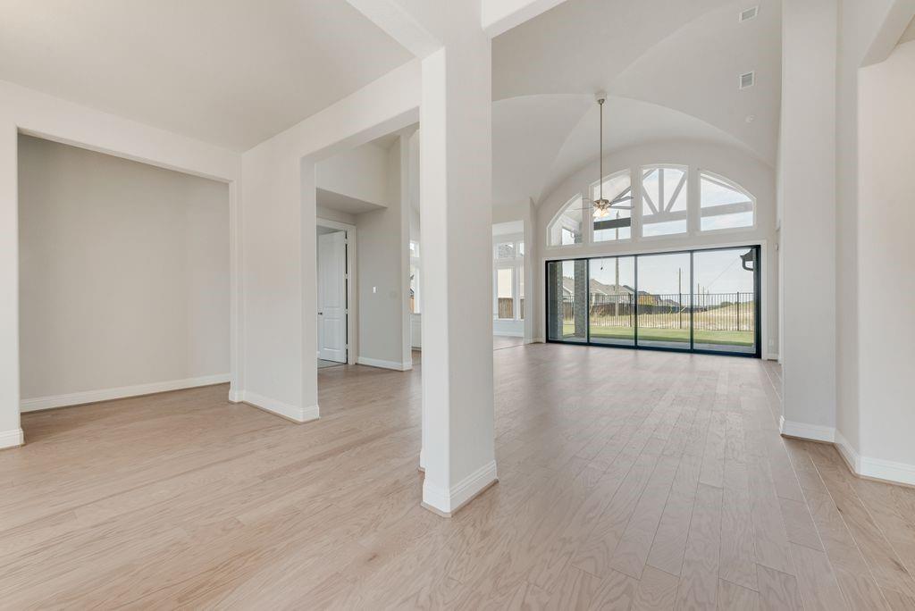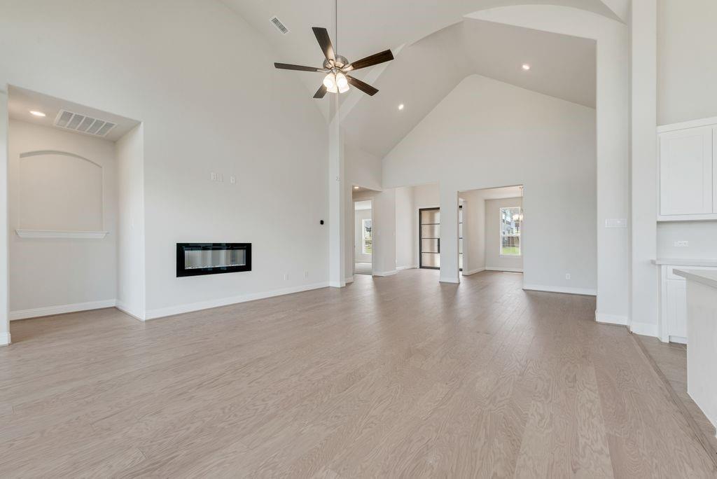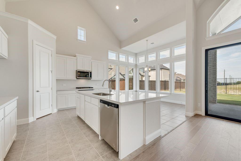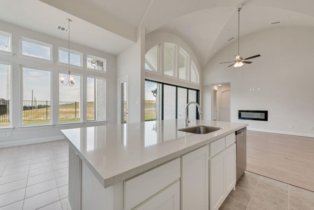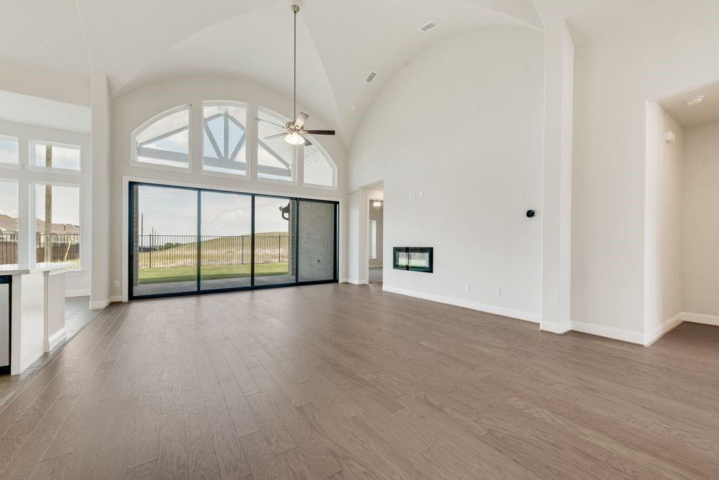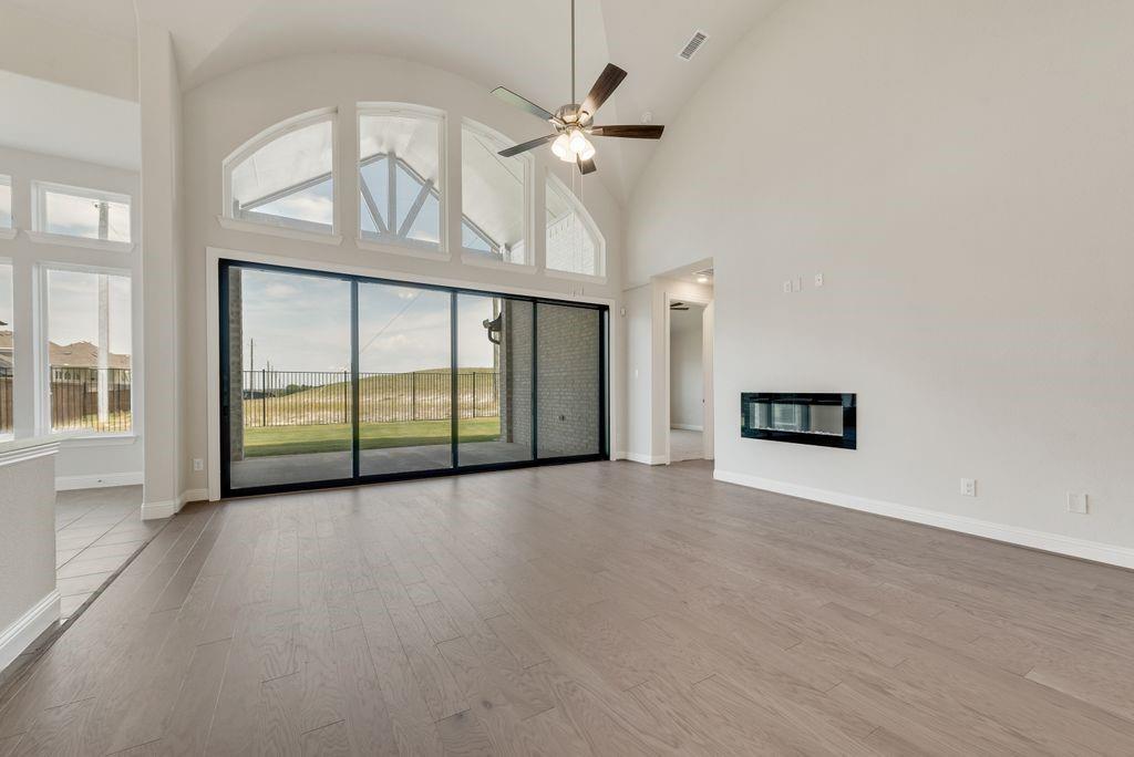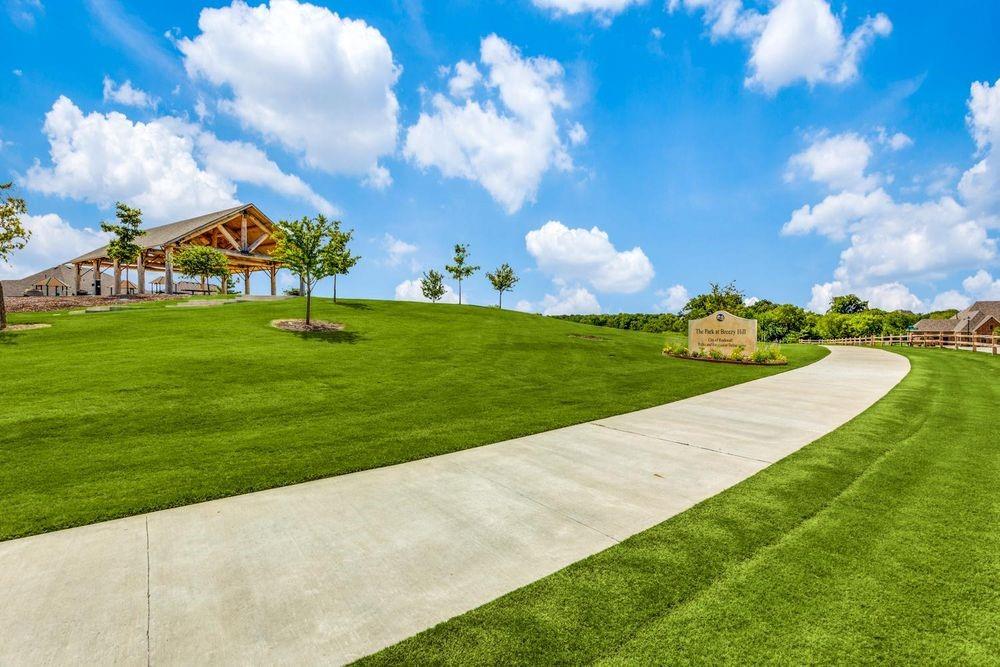 Experience luxury and comfort in this beautifully designed Grand Homes property located in the highly sought-after Breezy Hills community. Nestled against a scenic greenbelt and just steps from the trail system leading to the neighborhood pool and parks, this home offers the perfect blend of nature and convenience. Residents enjoy a family-friendly atmosphere with access to a community pool, playgrounds, and an extensive network of bike trails. The home is situated within the acclaimed Rockwall ISD, known for its top-rated schools. This elegant single-story residence features a striking double-door entry and an open-concept layout with three spacious bedrooms. The groin-vaulted family room is a standout, showcasing a sleek 48-inch linear modern fireplace and sliding glass doors that open to a covered back patio, ideal for outdoor entertaining. A private den or home office offers a quiet space for work or relaxation. The gourmet kitchen is both stylish and functional, featuring painted Shaker cabinetry, stainless steel appliances including a gas cooktop, Omegastone slab countertops, a full bowl sink, a built-in spice rack, a hidden trash drawer, and a generous center island perfect for gathering. The primary suite is a true retreat, complete with a cathedral ceiling, a freestanding soaking tub, dual vanities with rectangular sinks, a tiled walk-in shower, and an expansive walk-in closet. Built with energy efficiency in mind, this new construction home includes R-38 insulation and double-insulated vinyl windows for enhanced comfort and savings. Don’t miss your opportunity to own a sophisticated and energy-conscious home in one of Rockwall’s premier communities.