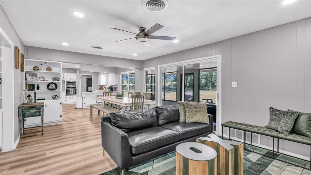 Fully renovated and income-producing, this stunning 4-bedroom, 3-bathroom home sits on 10 private acres in the heart of Weatherford and is currently operating as a successful Airbnb. Every detail has been thoughtfully updated—from the bathrooms and flooring to the fresh, modern finishes throughout—creating a warm, rejuvenating space ideal for full-time living or continued rental income. The home features spacious living areas, a cozy fireplace, a game room with a pool table, and a large patio overlooking peaceful garden and courtyard views. Each of the four bedrooms offers ample space and natural light, while the three fully updated bathrooms provide modern comfort and convenience. Outside, enjoy the seclusion and serenity of 10 unrestricted acres while still being just minutes from downtown Weatherford—an unbeatable blend of comfort, space, and investment potential.
