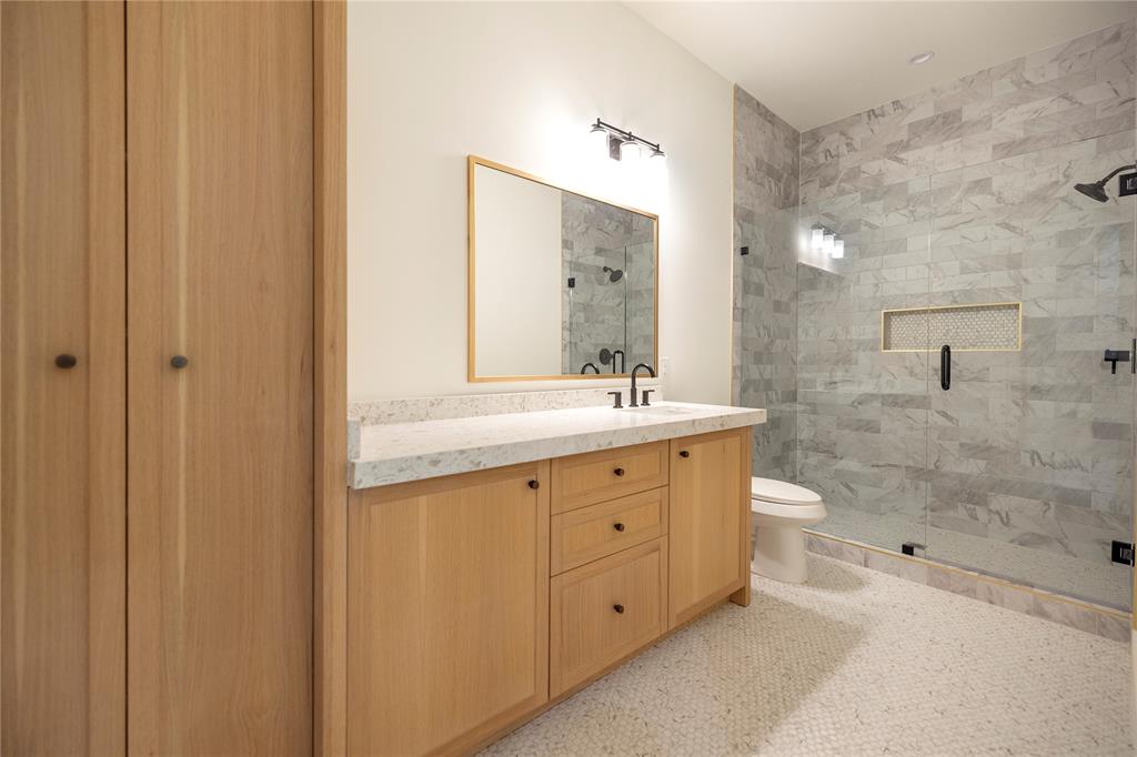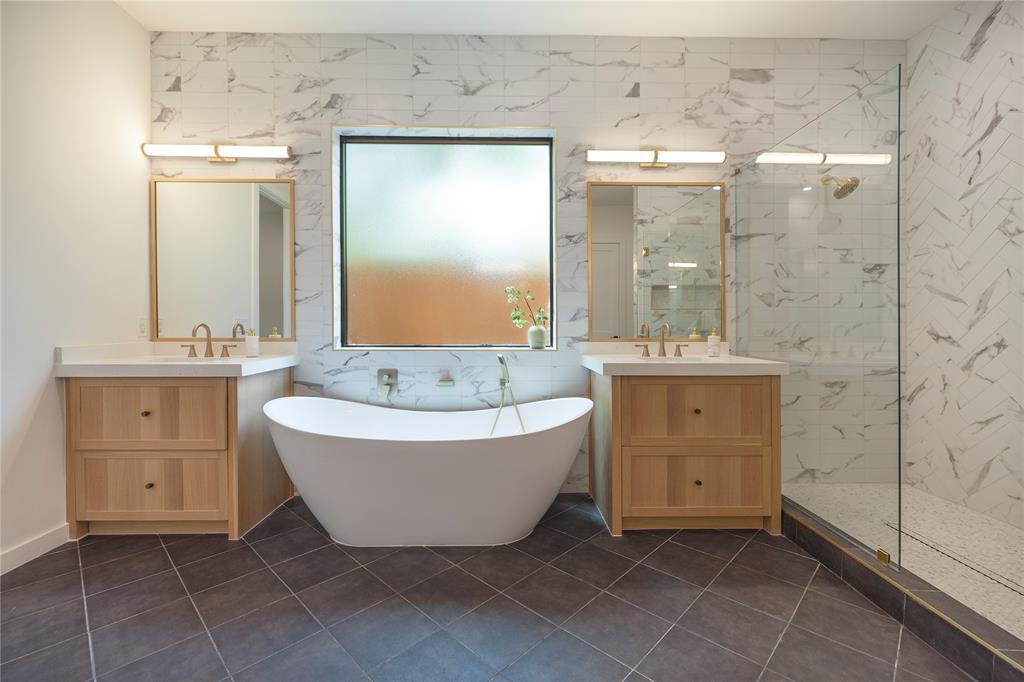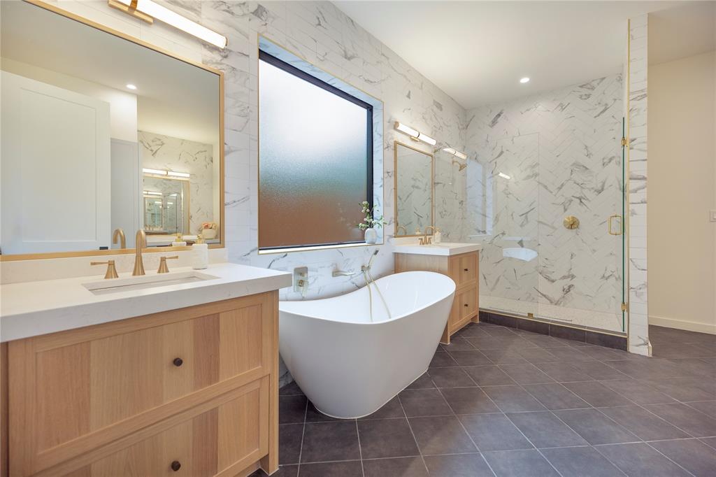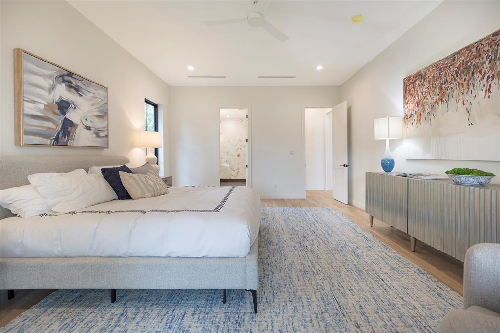 Welcome to modern luxury in the heart of Royal Hills! Situated on an expansive 80x128 lot, this brand-new construction home is a rare find, blending stunning design with thoughtful functionality. The striking white stucco exterior and clean architectural profile set the tone for the sophisticated interiors that follow. Step inside to a light-filled entry anchored by a beautifully crafted staircase and soaring ceilings. The main living area is open and airy, boasting 20-foot ceilings, oversized black-framed windows, and a statement fireplace that creates a perfect backdrop for both daily living and entertaining. At the heart of the home is a true chef’s kitchen—a showstopper featuring a massive 93-inch Satvario Quartz waterfall island, custom White Oak cabinetry by London & Bosh, soft-close drawers, Blum runners, and Plank English hardware. The premium appliance suite includes a Frigidaire fridge-freezer, 48” dual-fuel range with Italian-made burners, and dishwasher. A fully equipped catering kitchen with wine fridge, oven, pantry, and prep sink makes hosting effortless. Throughout the home, enjoy the elegance of 10-foot ceilings, wide-plank maple flooring, and designer tile.. The private downstairs primary suite offers direct patio access, a spa-inspired en-suite bath with dual vanities, soaking tub, walk-in shower, and a custom walk-in closet with built-in laundry hook-ups. A second downstairs bedroom with full bath offers flexibility for a guest room or office. Upstairs, you'll find three spacious bedrooms, with en-suite baths and walk-in closets, plus a unique, stylish game room with built-in London & Bosh cabinetry and generous storage, and a secondary laundry room. The large covered patio with fireplace is ready for outdoor entertaining, all within the privacy of an 8-foot fence. With no detail overlooked and designer finishes throughout, this home is the perfect blend of luxury, comfort, and modern living in one of the area’s most desirable neighborhoods.