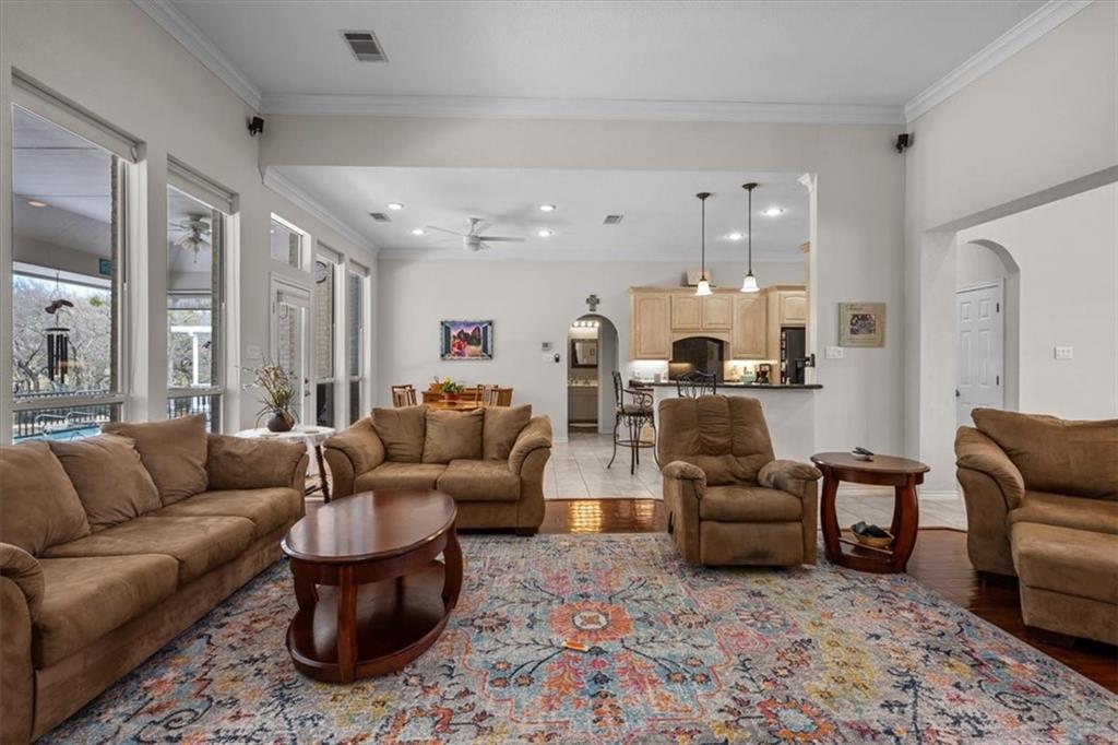Step outside onto the expansive 1,200-square-foot covered back porch, where panoramic golf course views create the perfect backdrop for morning coffee or evening gatherings.