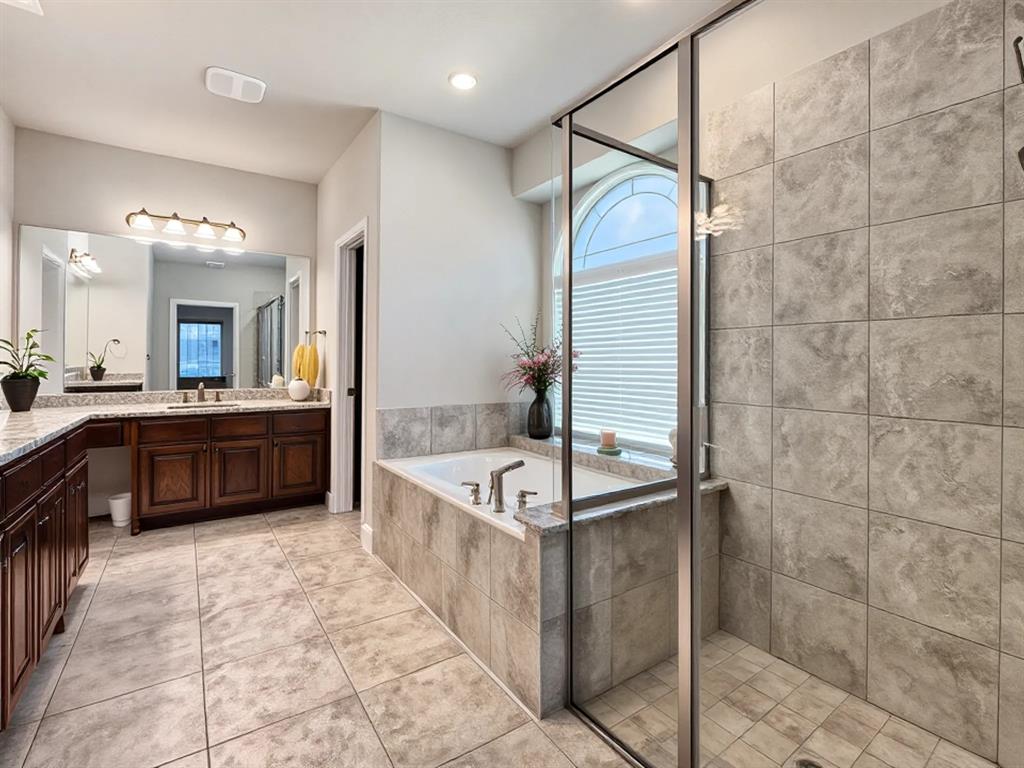 Welcome to this beautiful home in the highly acclaimed Prosper ISD. Boasting approximately 3300 square feet, this thoughtfully designed residence offers 4 spacious bedrooms, 3.5 baths, and multiple versatile living spaces perfect for everyday comfort and entertaining. The primary suite is located on the first floor and features a private en suite bath with a walk-in shower, soaking tub, and generous closet space. Two upstairs bedrooms are connected by a convenient Jack and Jill bathroom, while a fourth bedroom enjoys access to its own nearby full bath. The first floor also includes a dedicated home office and a media room for movie nights or game day gatherings. A large upstairs game room adds even more flexible space to fit your lifestyle. Step outside to a sizable backyard with a covered patio—ideal for relaxing or hosting guests. Built in 2021, this home offers modern finishes, open-concept living, and plenty of storage throughout. Enjoy all the amenities of this vibrant community, including two sparkling pools, a well-equipped workout room, tennis and basketball courts, scenic walking trails, playground and a catch-and-release fishing pond. With easy access to the Dallas North Tollway, you are never far from shopping, dining, and entertainment. This is an exceptional opportunity to live in a sought-after location with space, comfort, and convenience.