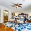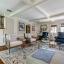 Nestled beneath a canopy of mature oaks, the home’s classic brick exterior and soaring stone chimney create an inviting first impression. Inside, expansive windows flood the living spaces with natural light, highlighting the warm wood tones and clean architectural lines that define its era. The thoughtfully designed layout includes spacious living and dining areas, perfect for both everyday comfort and entertaining.